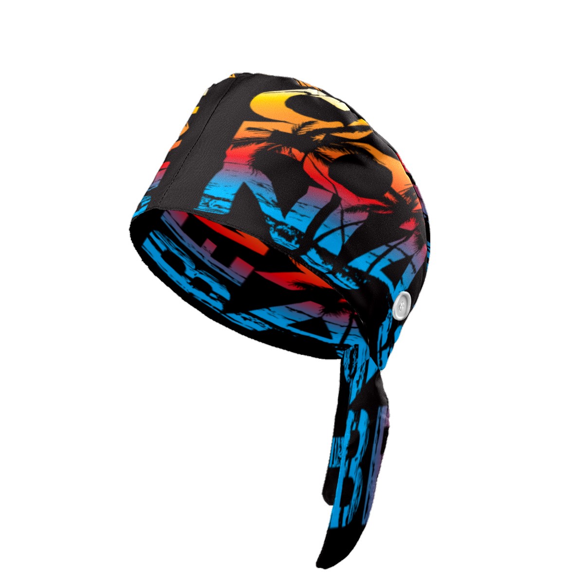 California Beach Coconut Tree Working Cap Button and Sweatband Adjustable Elastic Head Cover Hair Tie Back Work Hats for Women Men