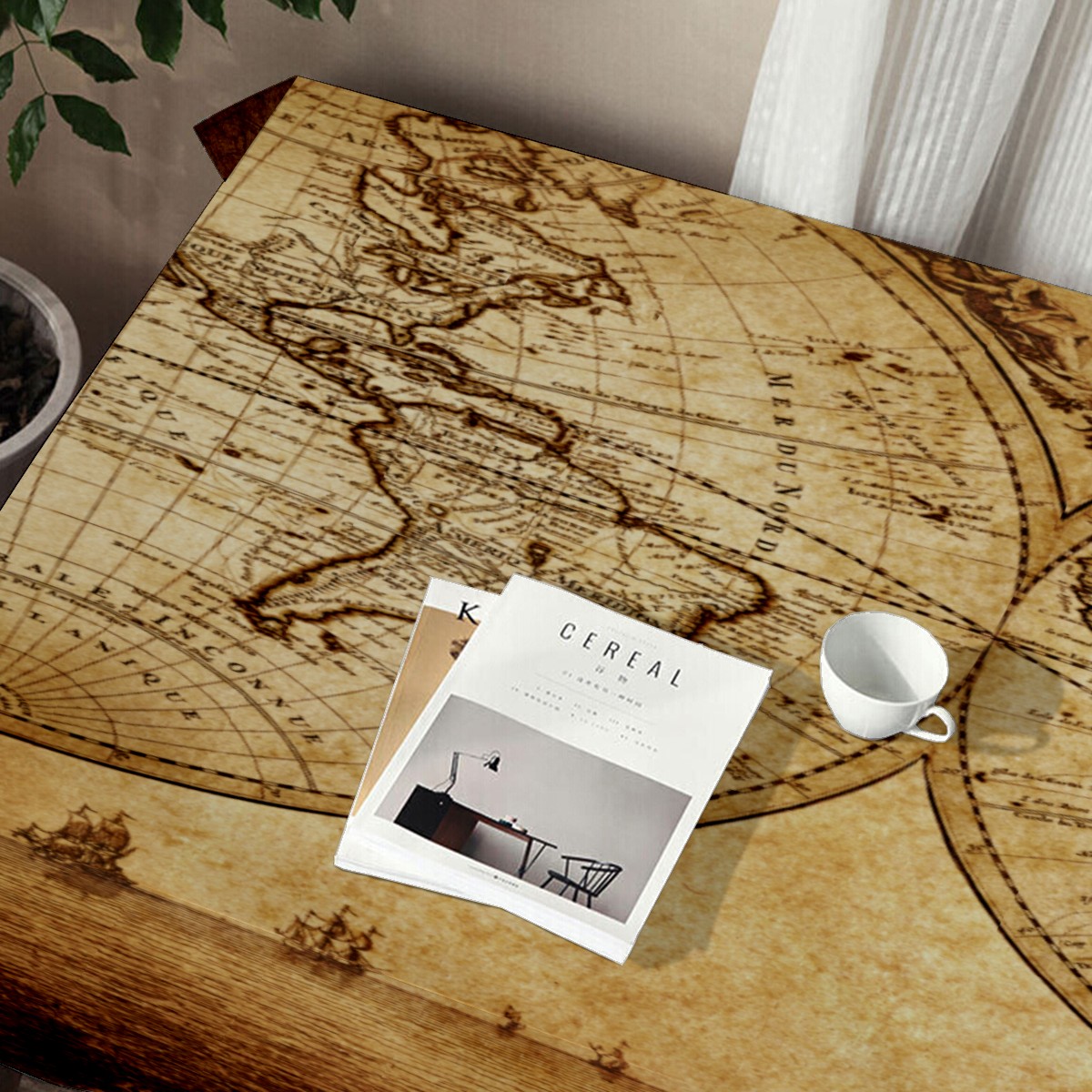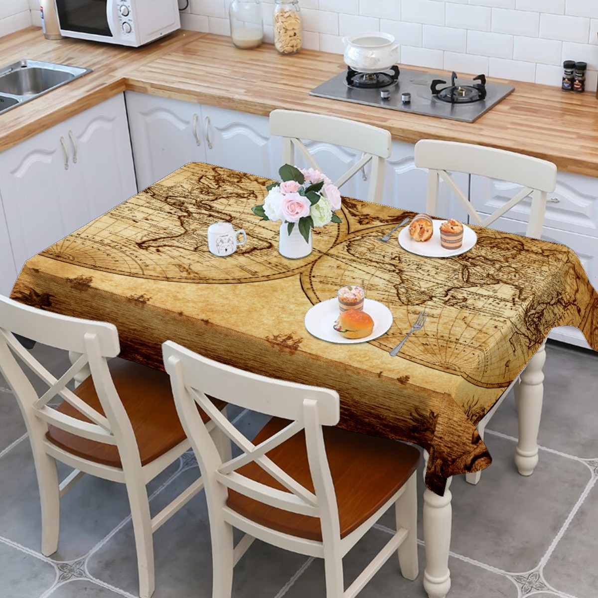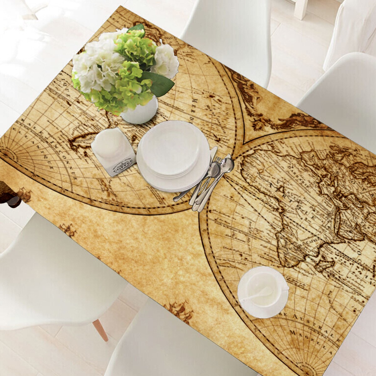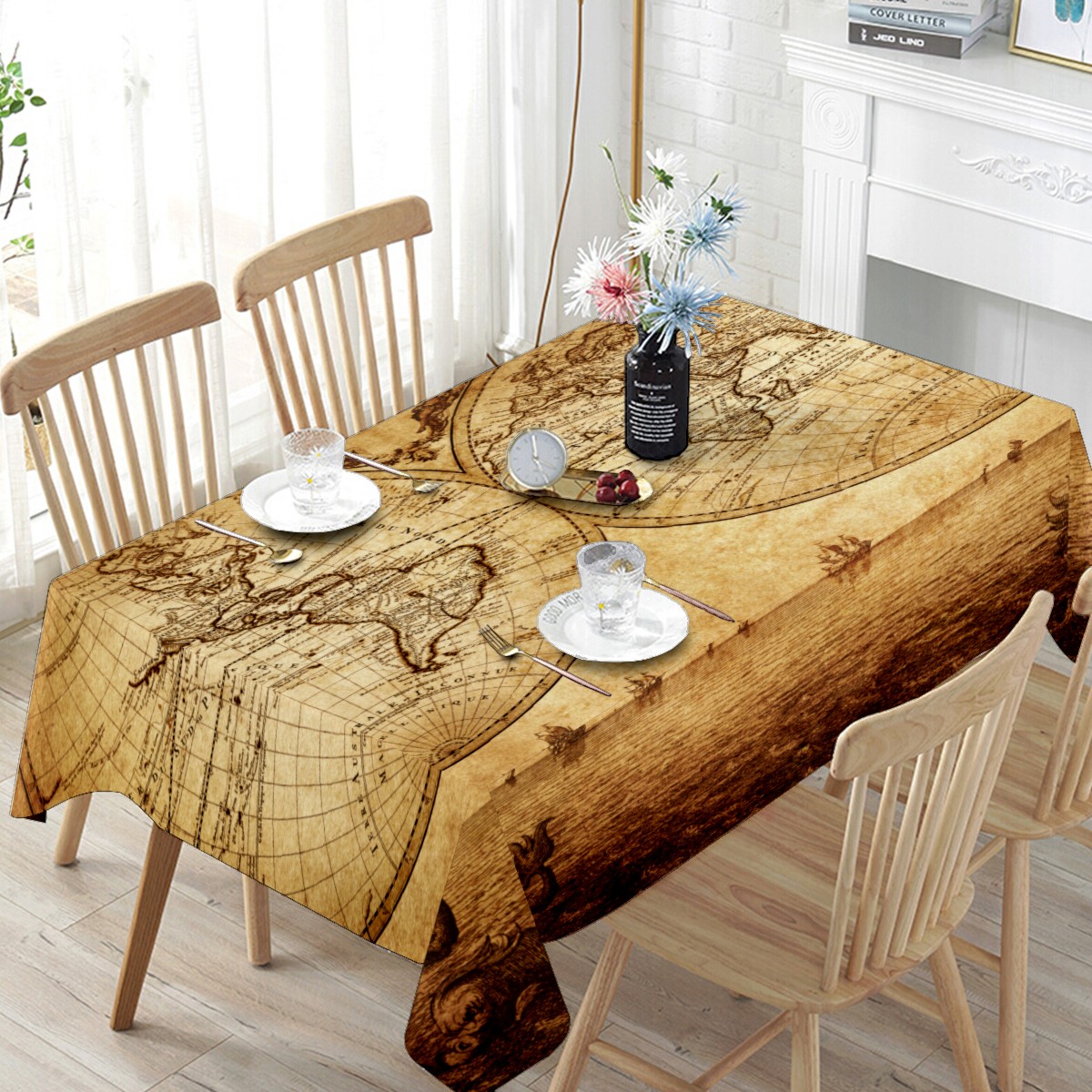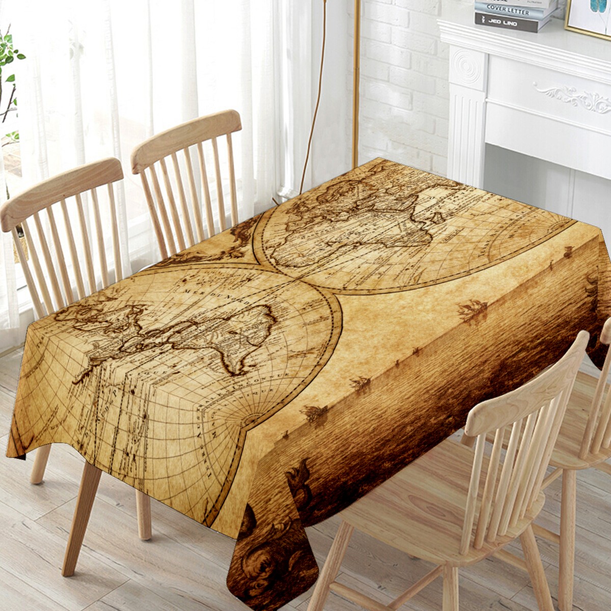 Rectangle Tablecloth Nautical Earth Vintage World Map Table Cloth 54x54in Table Cover for Kitchen Dining Table Party Home Decoration Washable Table Runner