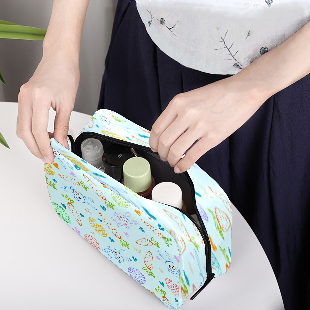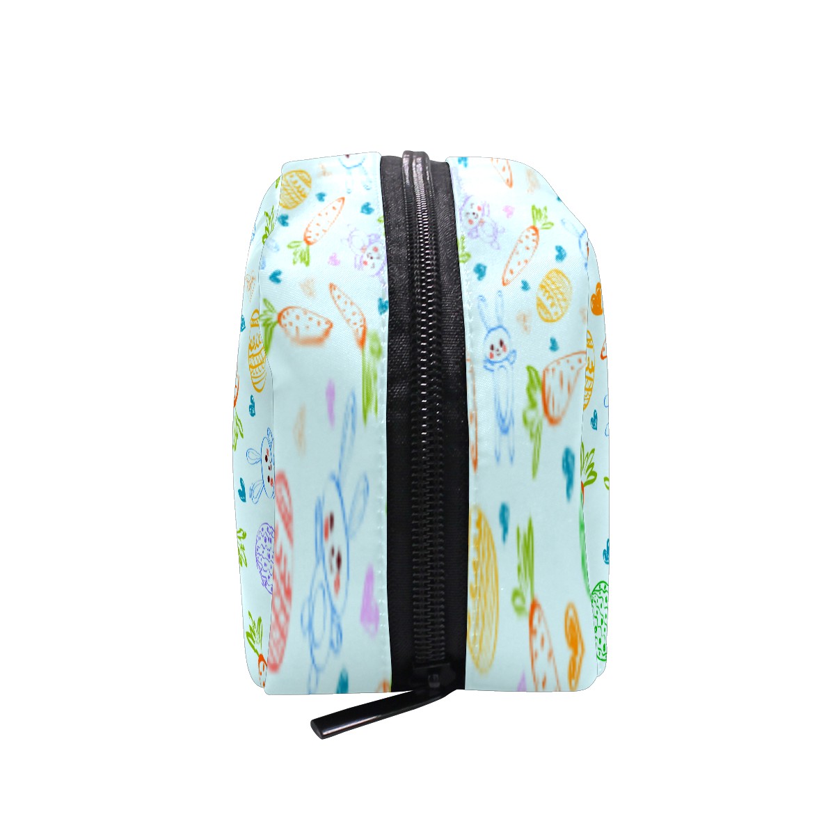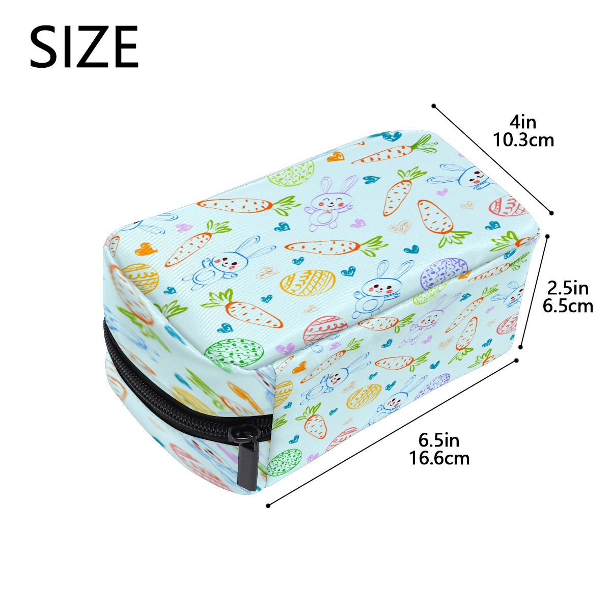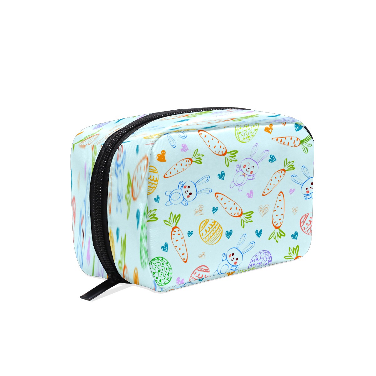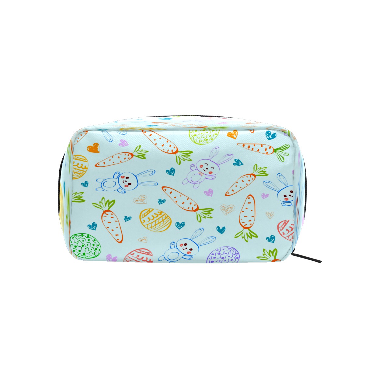 Cosmetic Bag for Women Girls Trave Makeup Bag Toiletry Case Pouch Accessories Organizer Happy Easter Cartoon Rabbit Carrot Heart Pattern