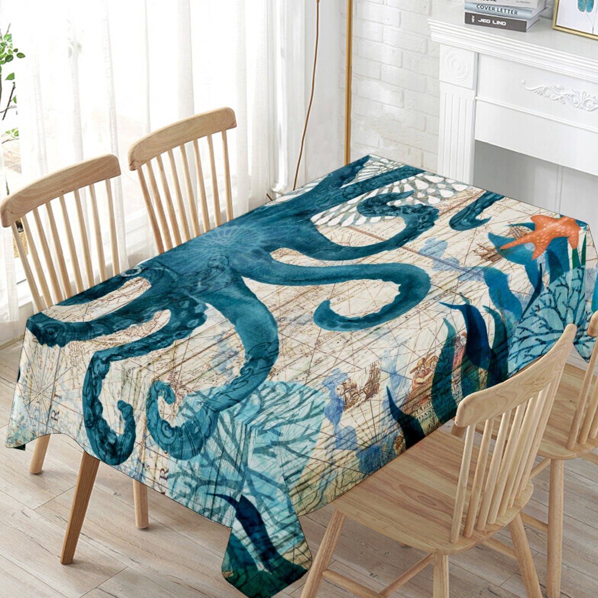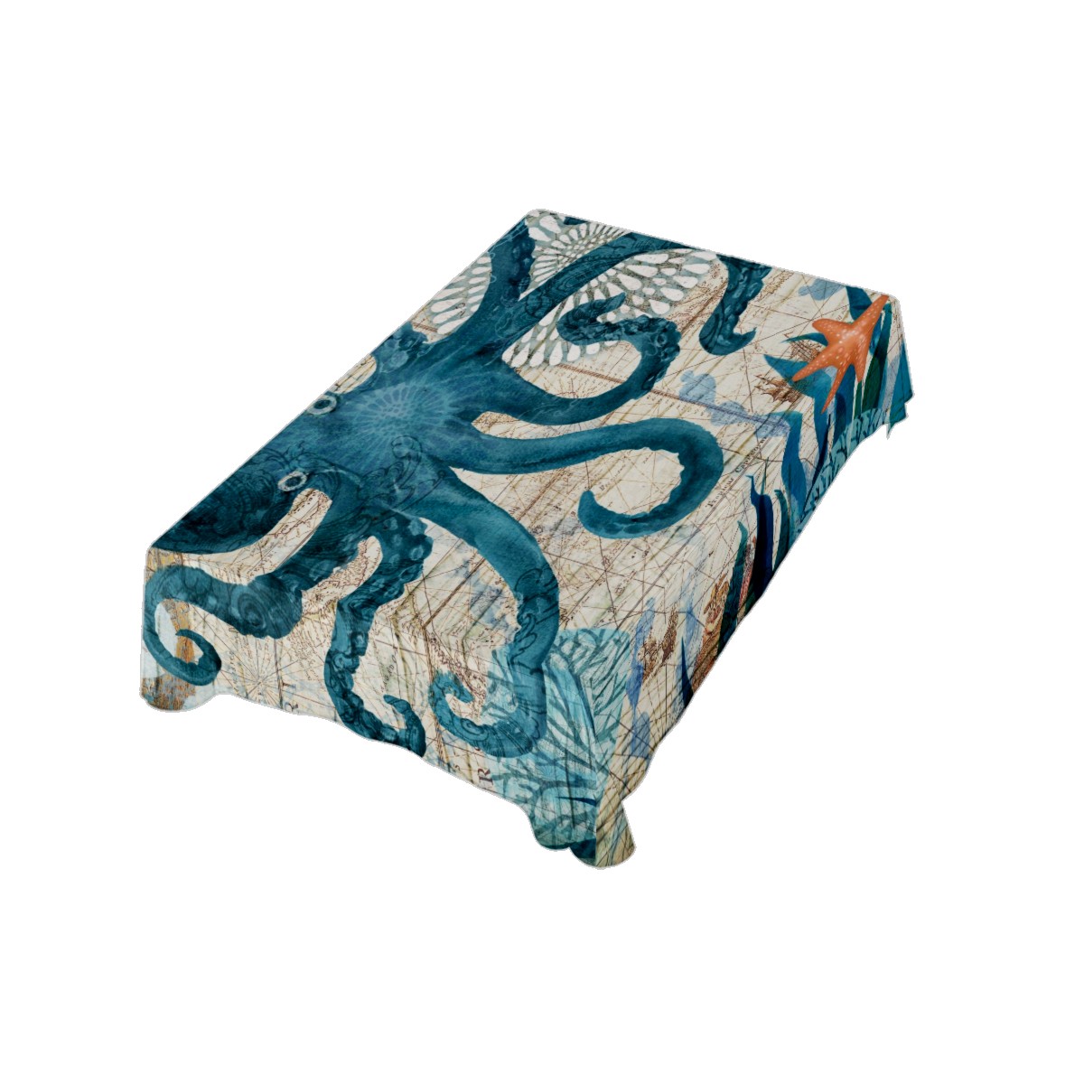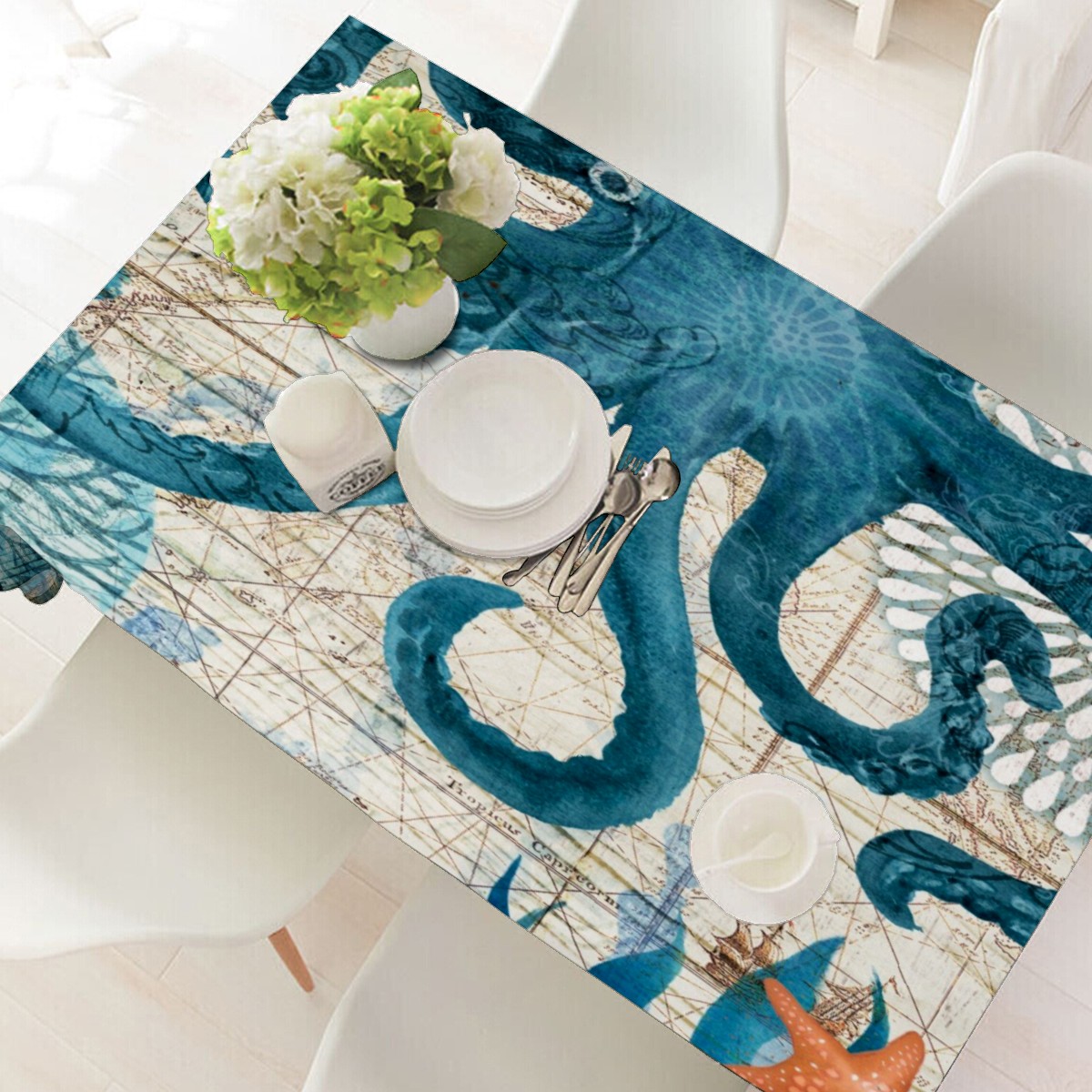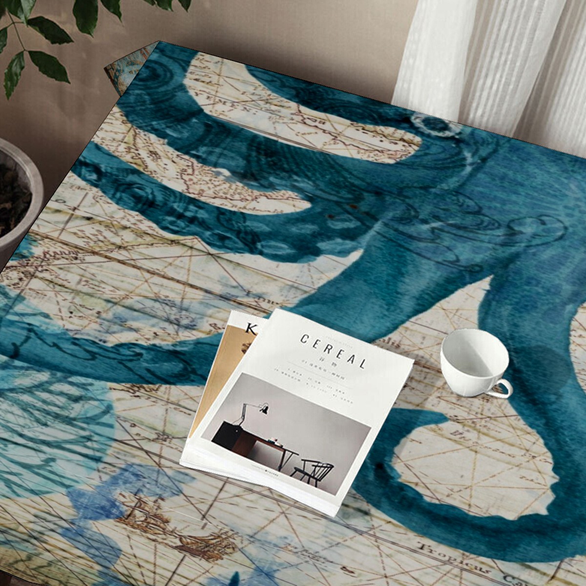 Rectangle Tablecloth Octopus Nautical Map Blue Ocean Table Cloth 54x54in Table Cover for Kitchen Dining Table Party Home Decoration Washable Table Runner
