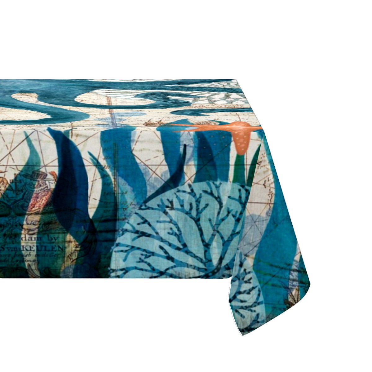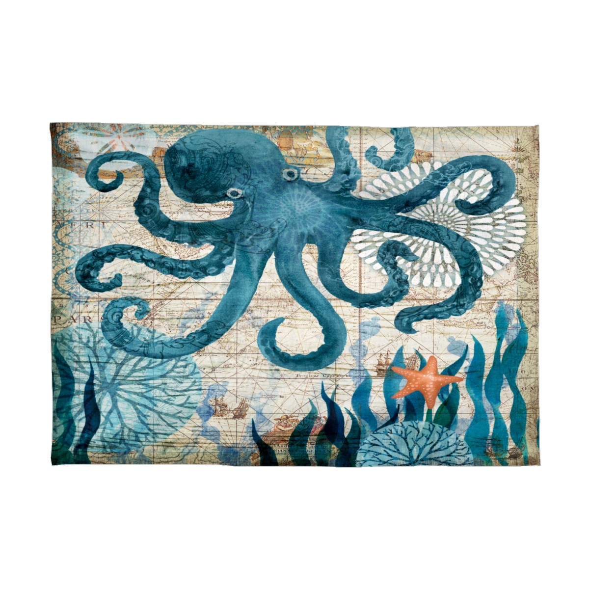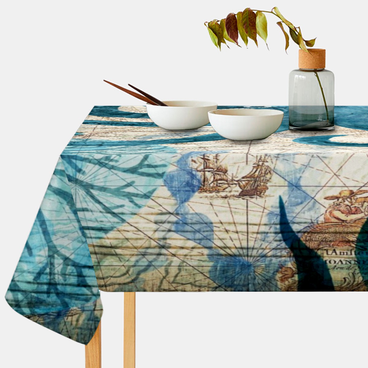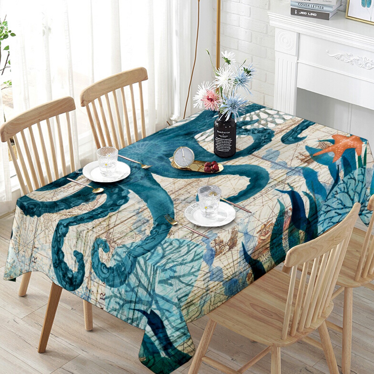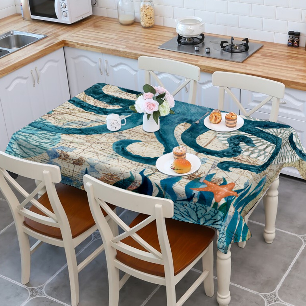 Rectangle Tablecloth Octopus Nautical Map Blue Ocean Table Cloth 54x54in Table Cover for Kitchen Dining Table Party Home Decoration Washable Table Runner