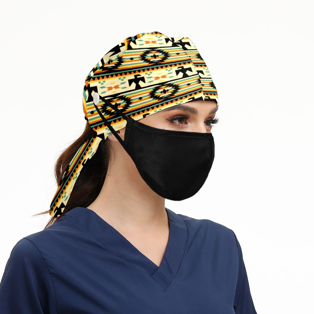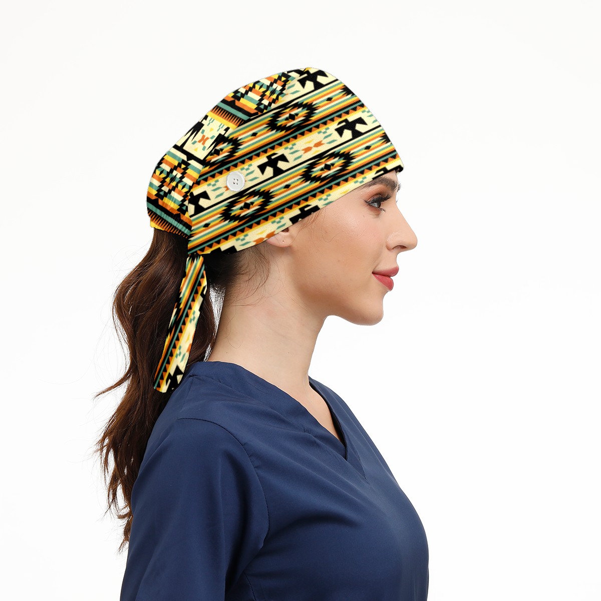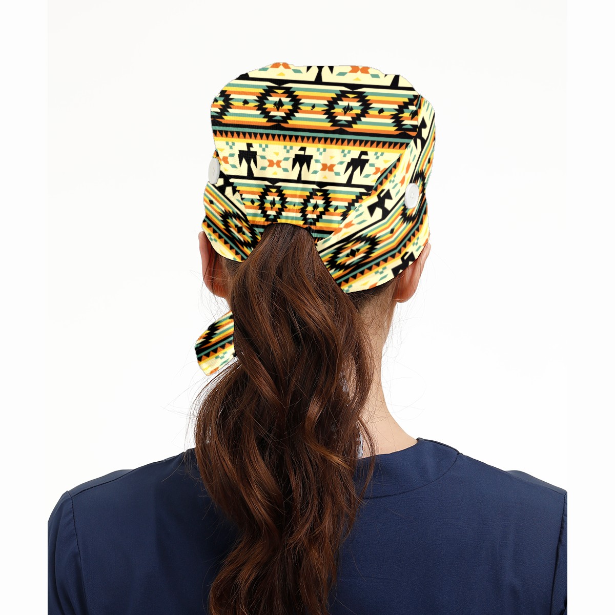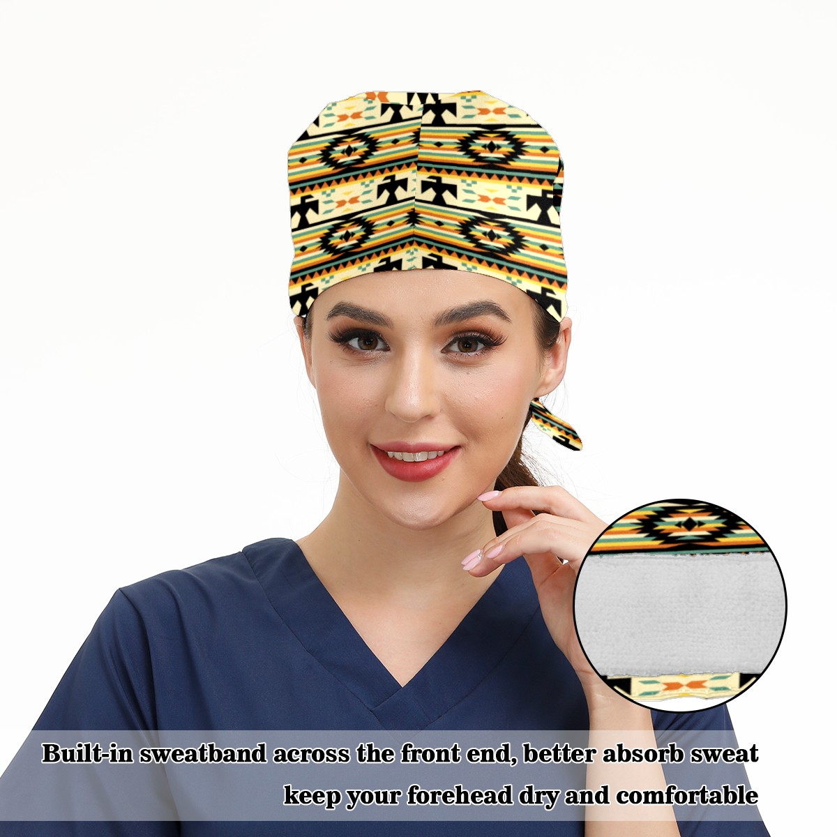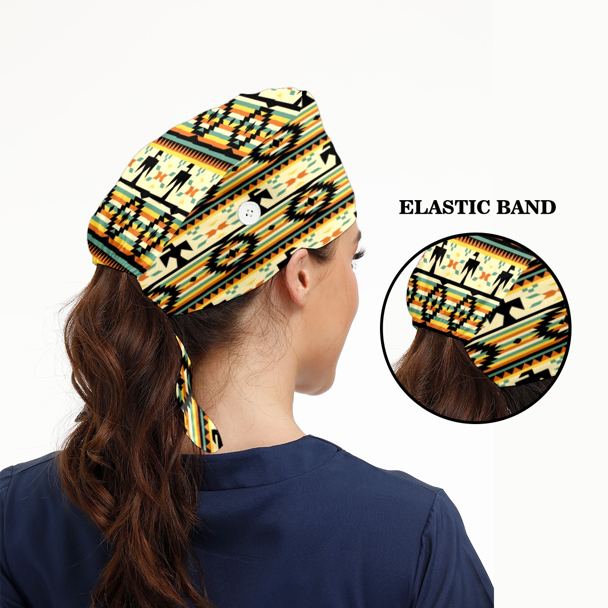 Native American Pattern Working Cap Button and Sweatband Adjustable Elastic Head Cover Hair Tie Back Work Hats for Women Men