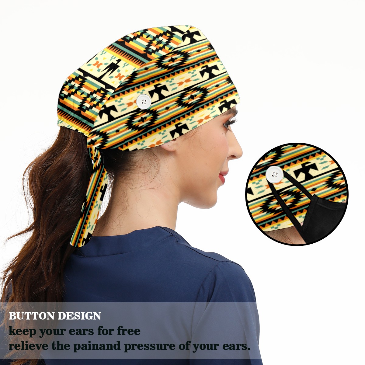 <p>Working cap with Sweatband and Button for Women Men</p><p>Material&nbsp;: 50% cotton+50% polyester</p><p>Size:&nbsp;One size fits most,&nbsp;suitable for both men and women.</p><p>Working Cap with Buttons Design:special&nbsp;design with buttons to protect ears for those who are wearing ma-sk. These new styles hats will allow you to put the straps around the buttons instead of your ears, make you feel more comfortable.</p><p>Sweat-absorbent towel cloth inside: Built-in&nbsp;100% cotton sweatband, keep the forehead clean after long time working.</p><p>Widely occasion: Widely used in beauty spa, house cleaning, cooking, sleeping, or for cos-play&nbsp;party.</p><p>Lovely pattern: lovely&nbsp;3D printed&nbsp;pattern,&nbsp;it's perfect for gift to you family&nbsp;and friends.</p>
