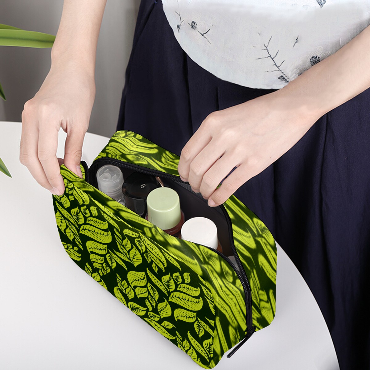 Cosmetic Bag for Women Girls Trave Makeup Bag Toiletry Case Pouch Accessories Organizer Green Leaves Exotic Plant Pattern