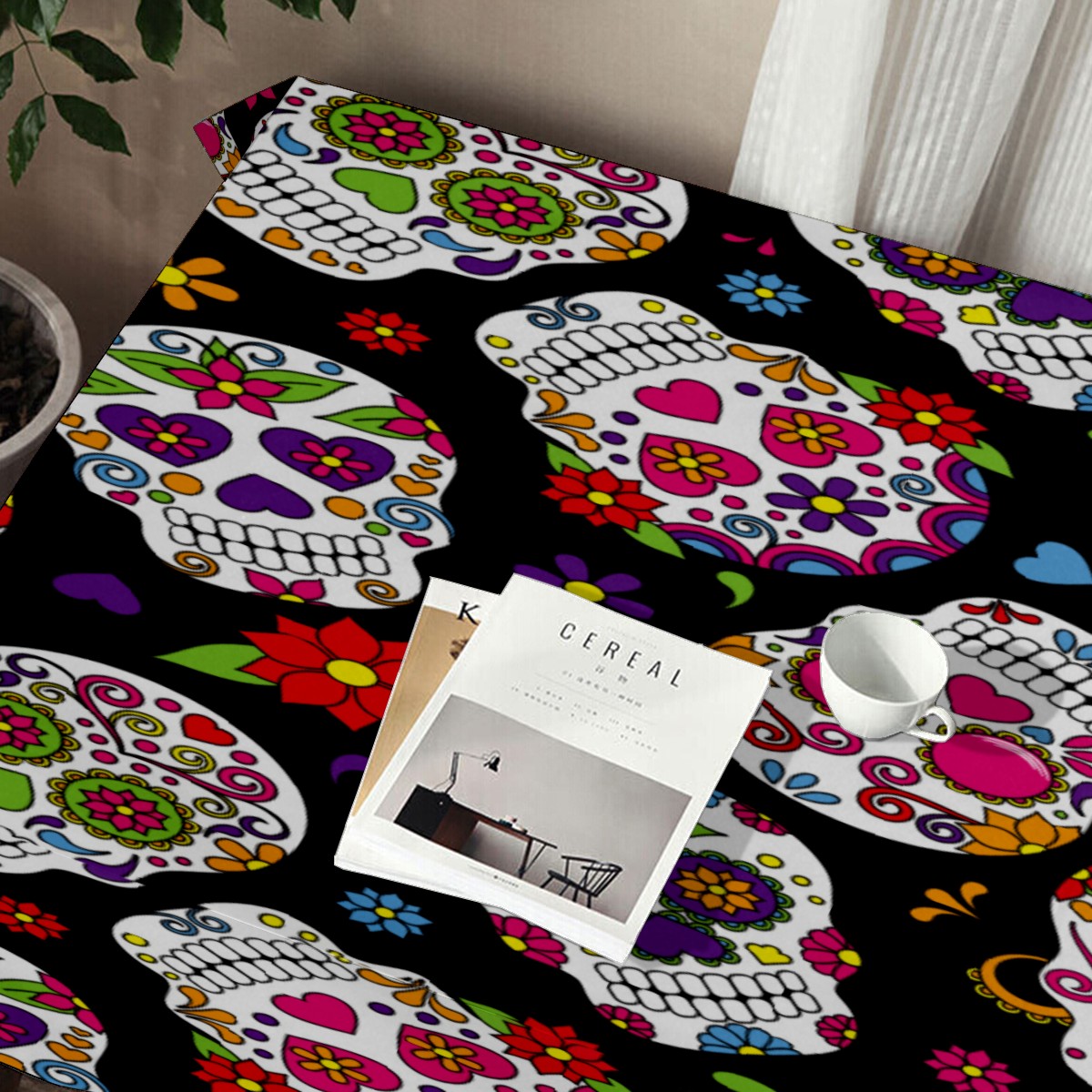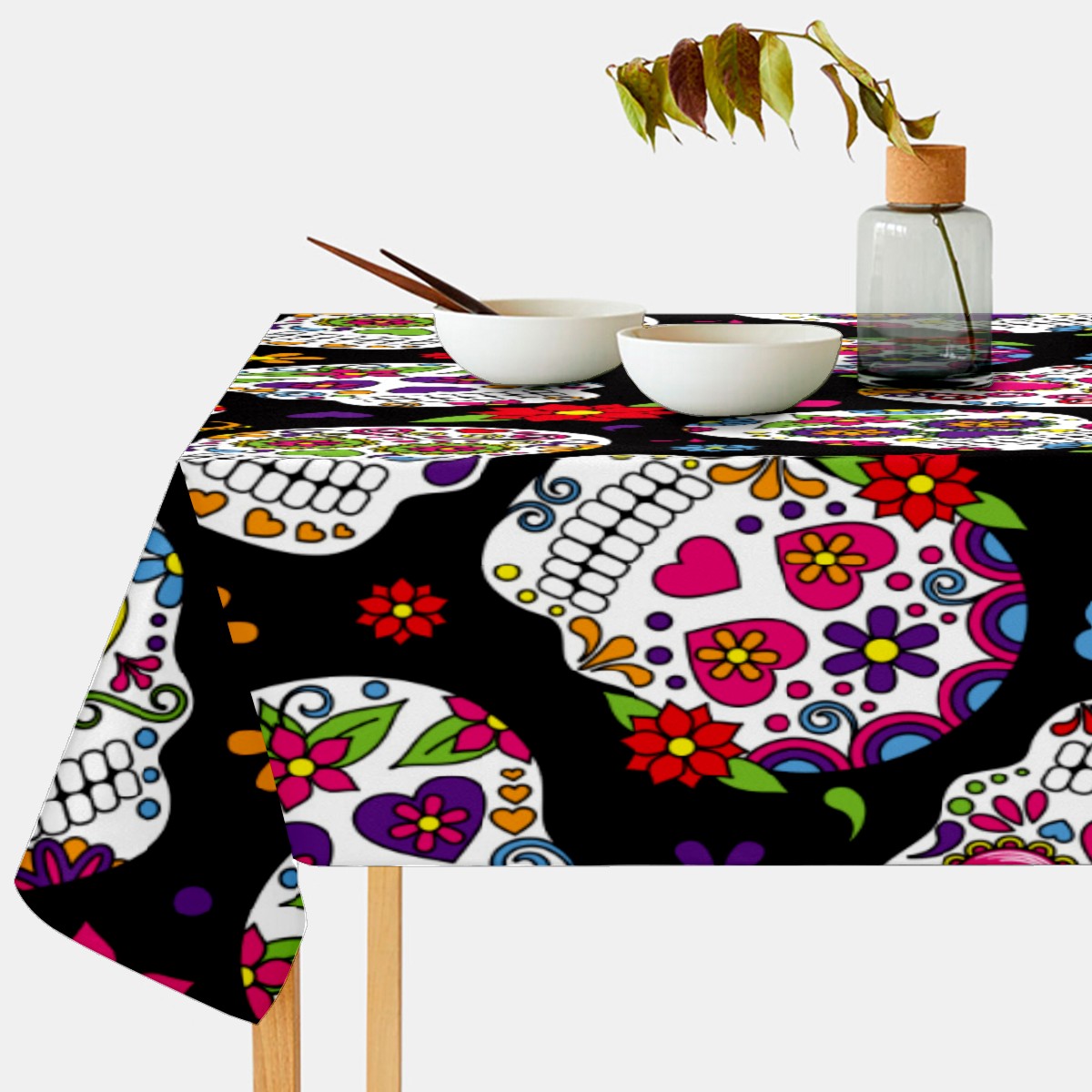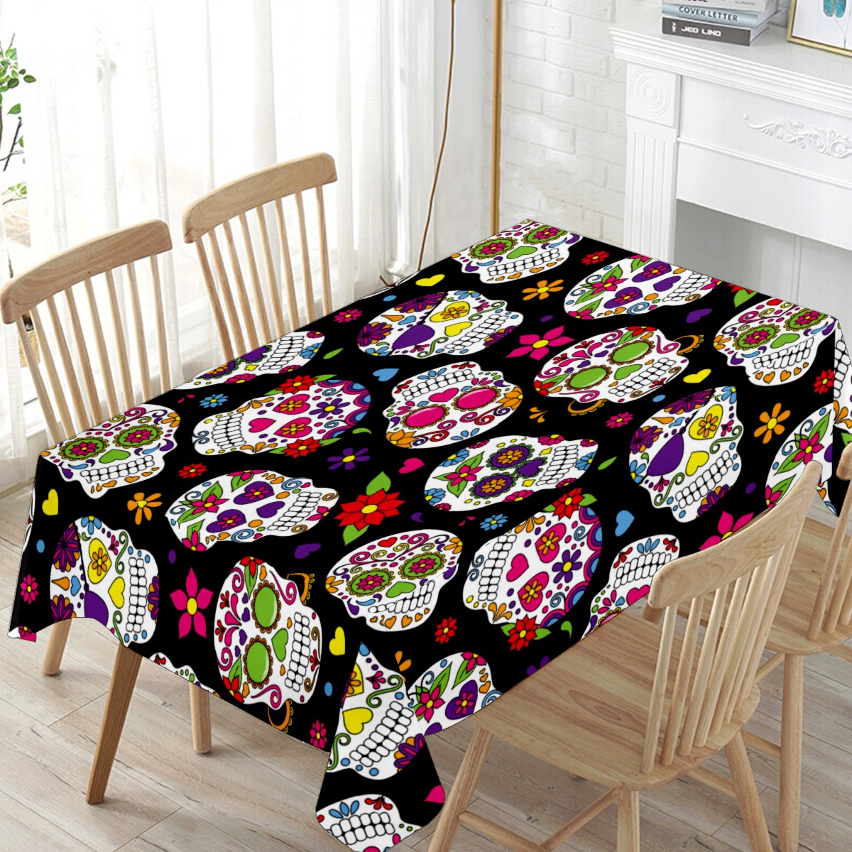 Rectangle Tablecloth Mexico Sugar Skull Floral Table Cloth 54x54in Table Cover for Kitchen Dining Table Party Home Decoration Washable Table Runner