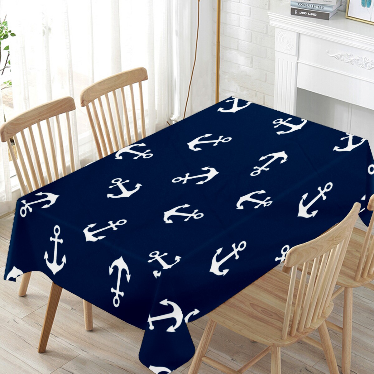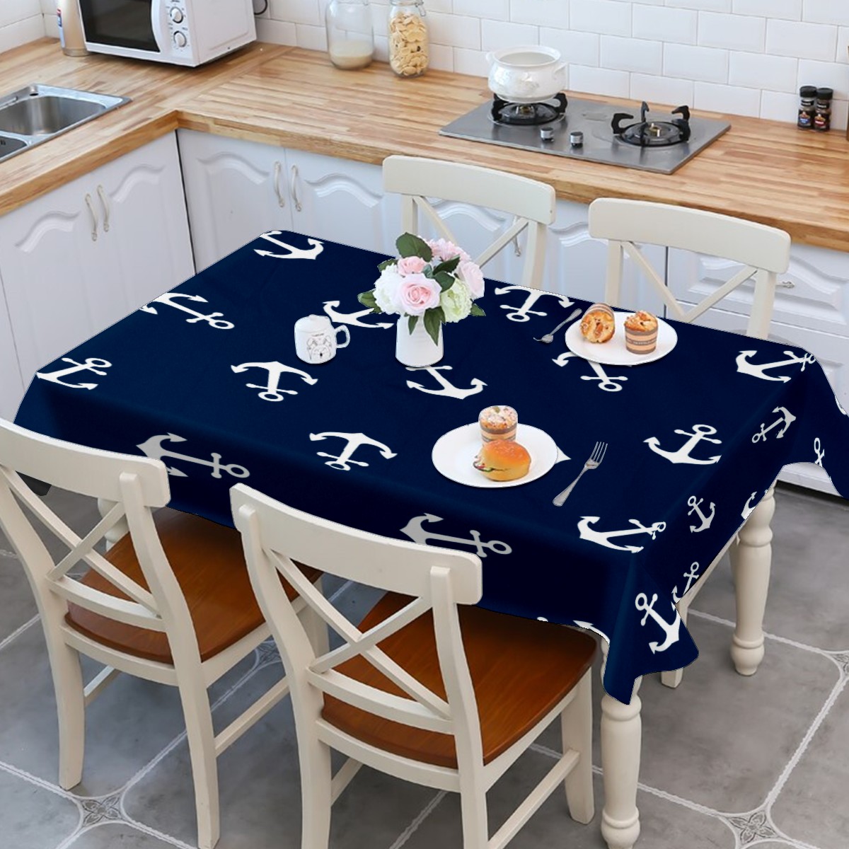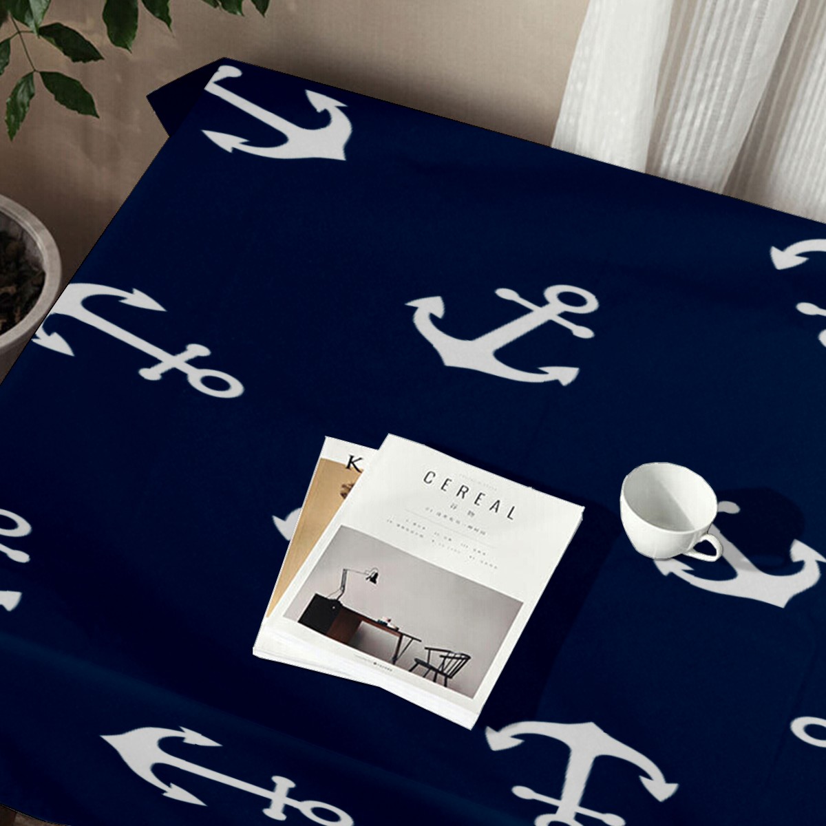 Rectangle Tablecloth Nautical Anchor Navy Blue Table Cloth 54x54in Table Cover for Kitchen Dining Table Party Home Decoration Washable Table Runner