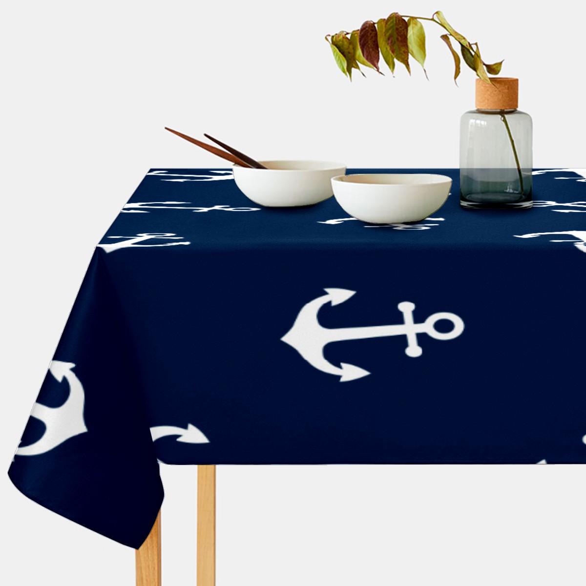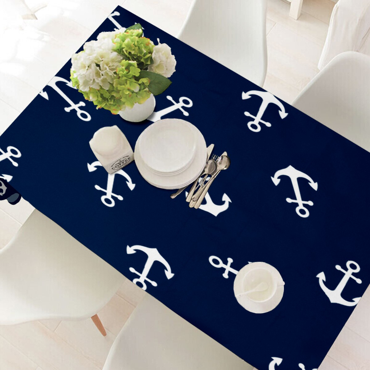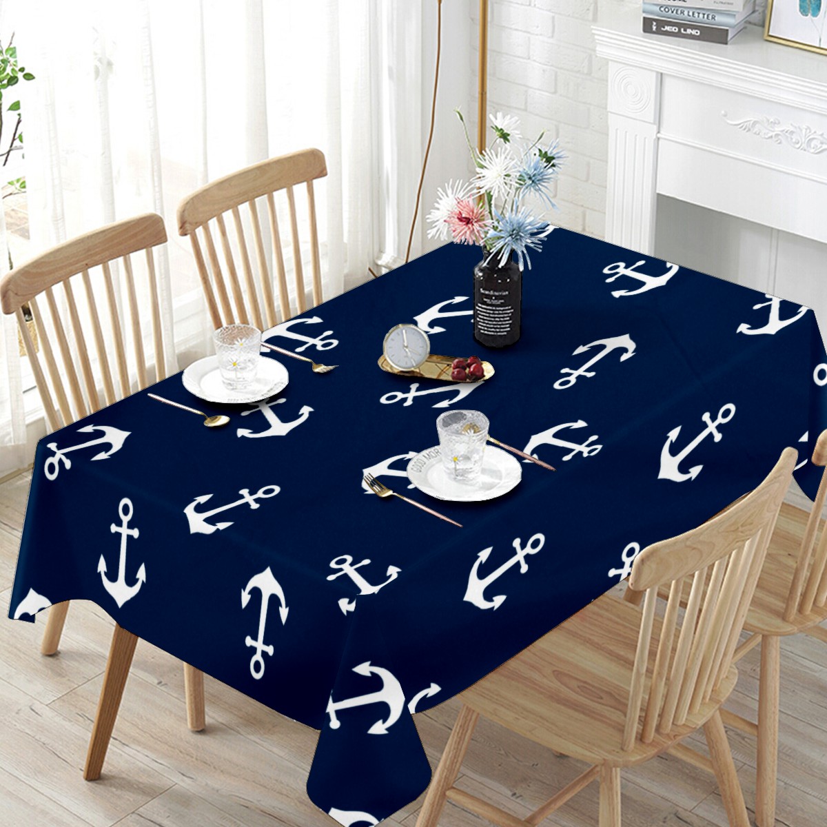 Rectangle Tablecloth Nautical Anchor Navy Blue Table Cloth 54x54in Table Cover for Kitchen Dining Table Party Home Decoration Washable Table Runner