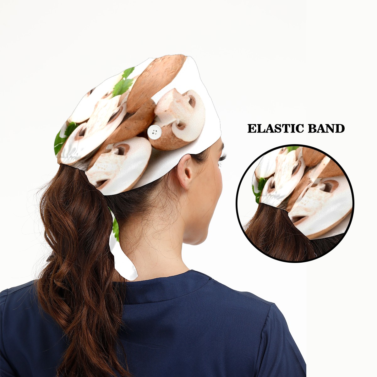 Fresh Wild Mushroom Working Cap Button and Sweatband Adjustable Elastic Head Cover Hair Tie Back Work Hats for Women Men