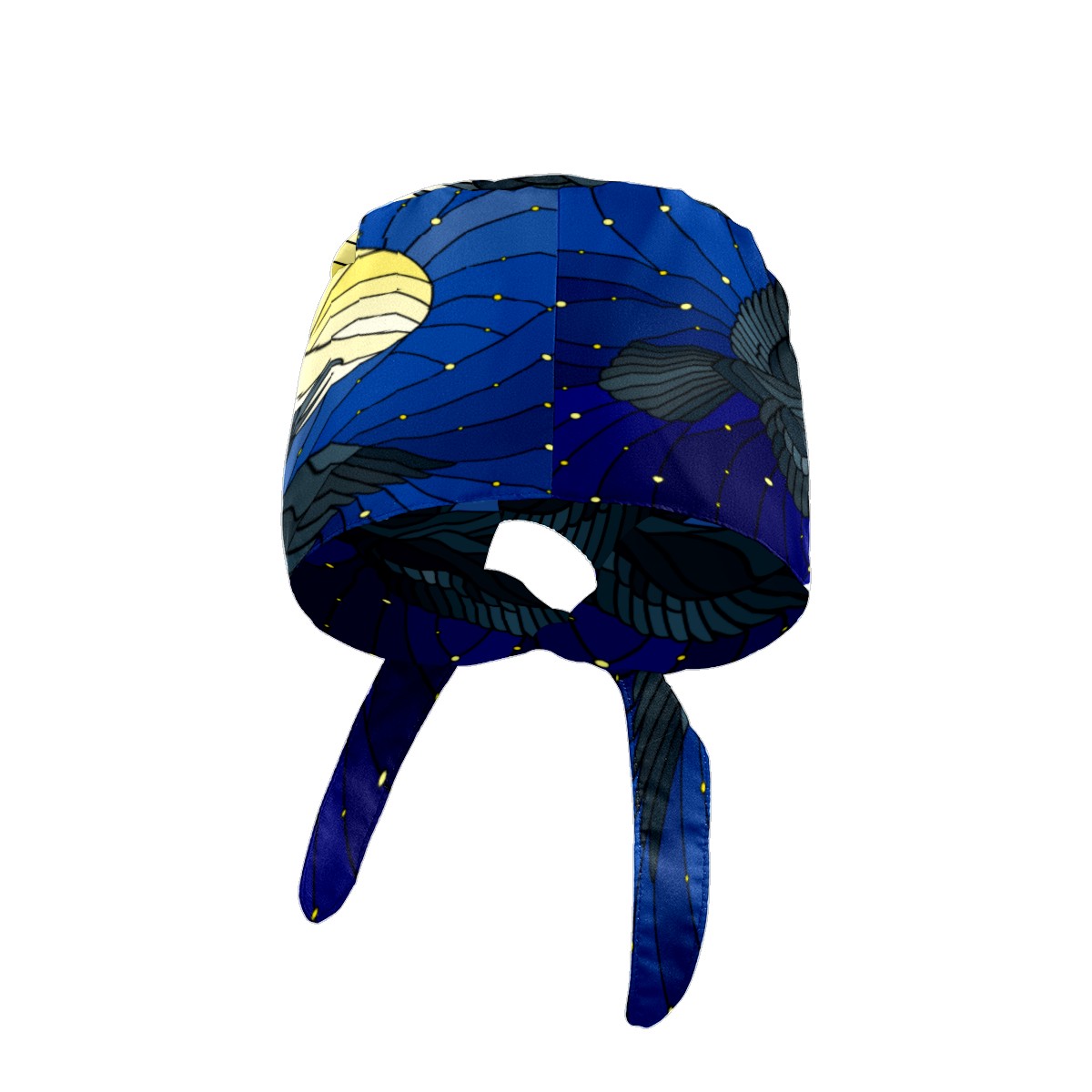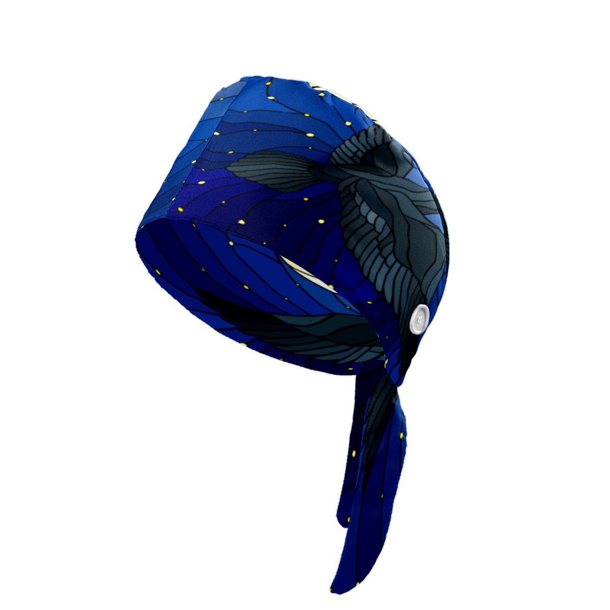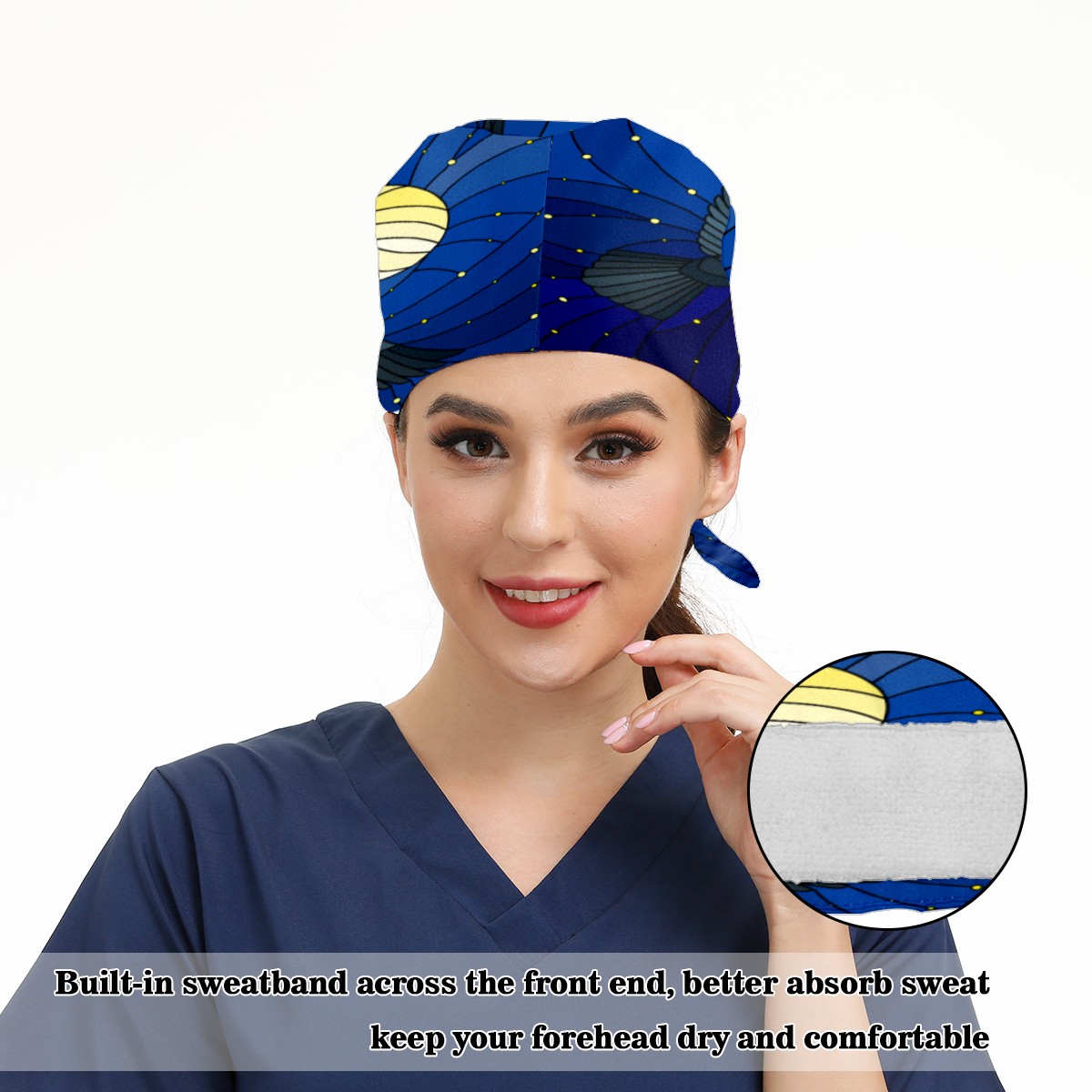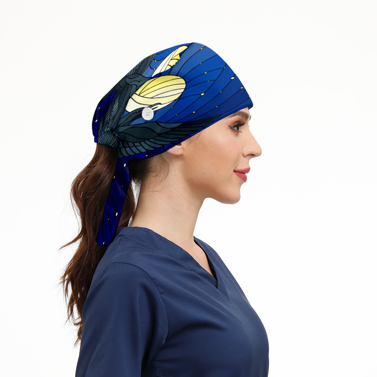 Stained Glass Crow Moon Blue Working Cap Button and Sweatband Adjustable Elastic Head Cover Hair Tie Back Work Hats for Women Men