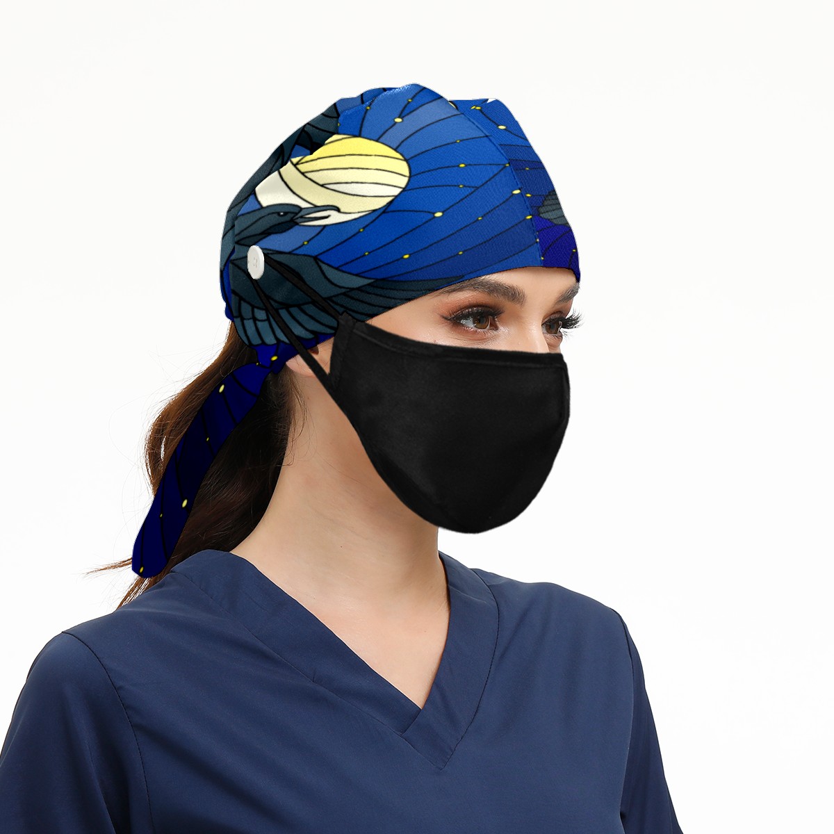 <p>Working cap with Sweatband and Button for Women Men</p><p>Material&nbsp;: 50% cotton+50% polyester</p><p>Size:&nbsp;One size fits most,&nbsp;suitable for both men and women.</p><p>Working Cap with Buttons Design:special&nbsp;design with buttons to protect ears for those who are wearing ma-sk. These new styles hats will allow you to put the straps around the buttons instead of your ears, make you feel more comfortable.</p><p>Sweat-absorbent towel cloth inside: Built-in&nbsp;100% cotton sweatband, keep the forehead clean after long time working.</p><p>Widely occasion: Widely used in beauty spa, house cleaning, cooking, sleeping, or for cos-play&nbsp;party.</p><p>Lovely pattern: lovely&nbsp;3D printed&nbsp;pattern,&nbsp;it's perfect for gift to you family&nbsp;and friends.</p>