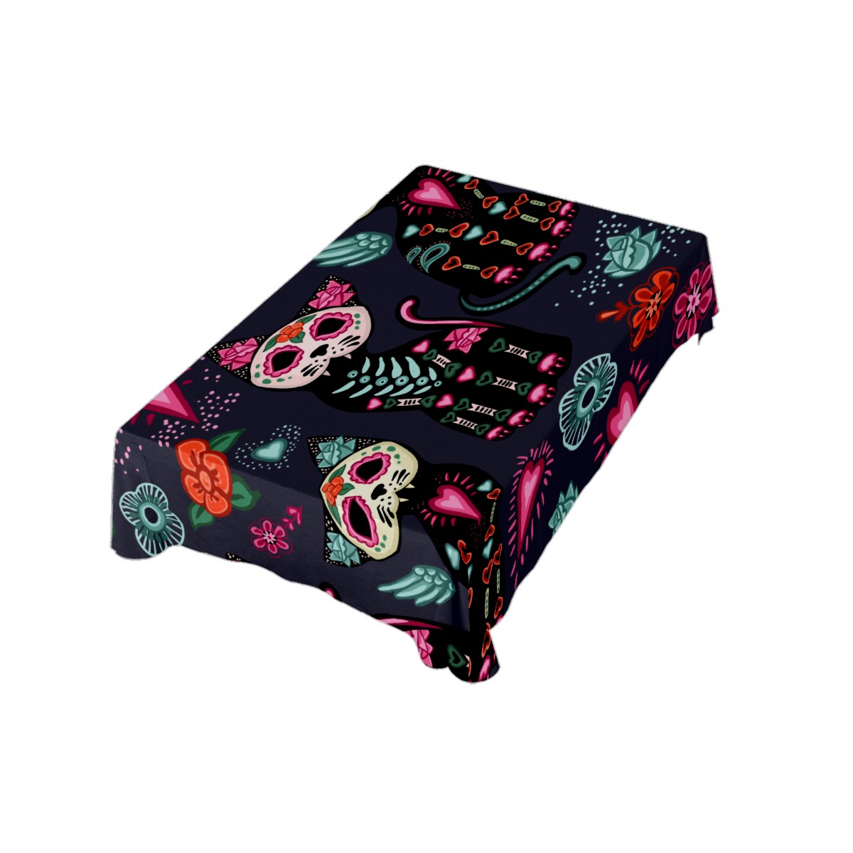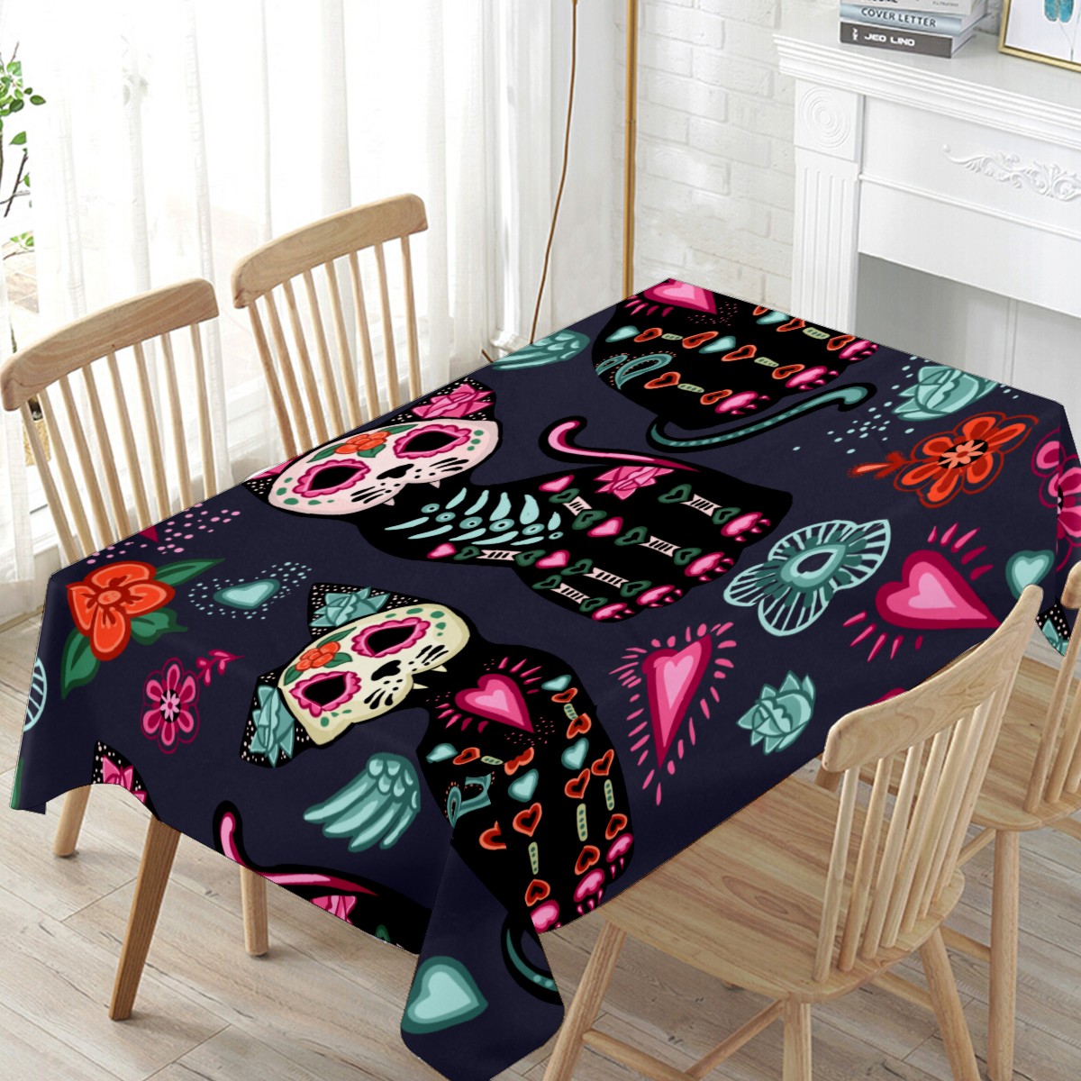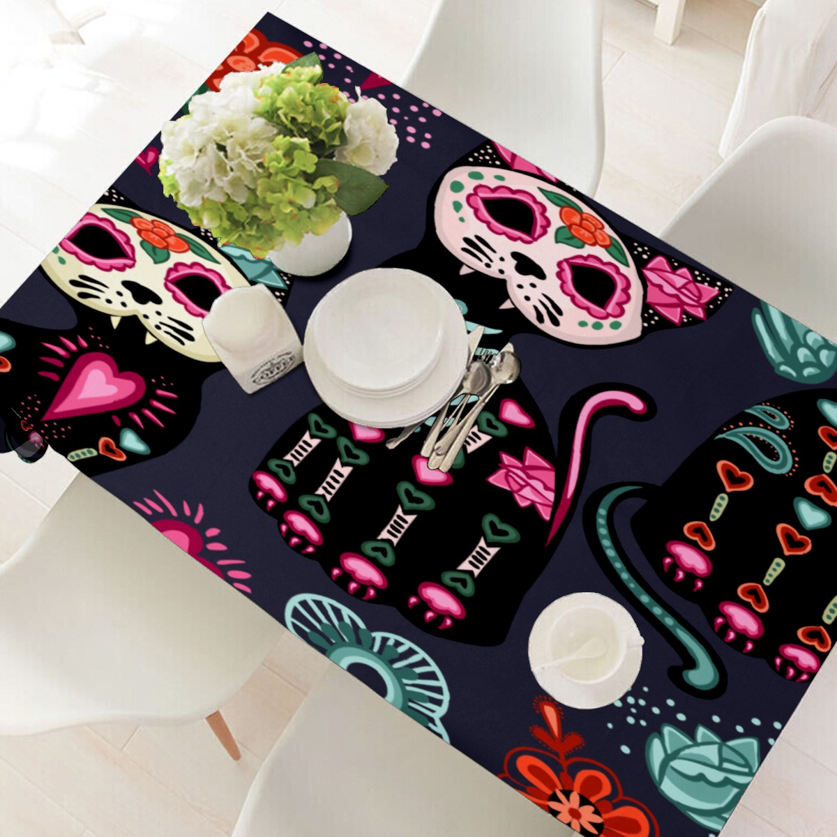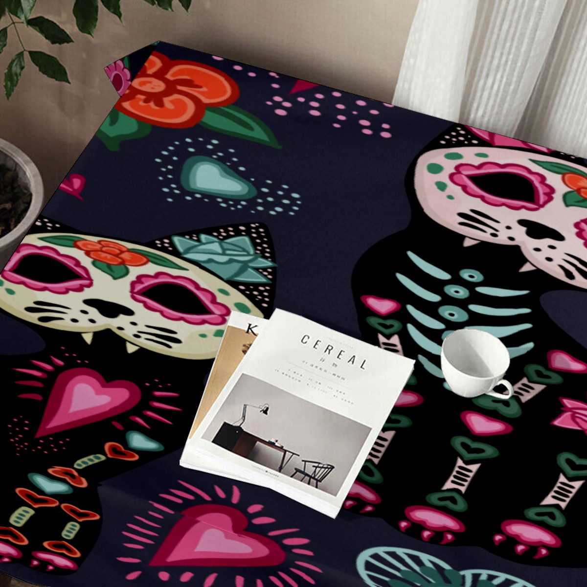 Rectangle Tablecloth Mexico Sugar Skull Cat Day Of Dead Table Cloth 54x54in Table Cover for Kitchen Dining Table Party Home Decoration Washable Table Runner