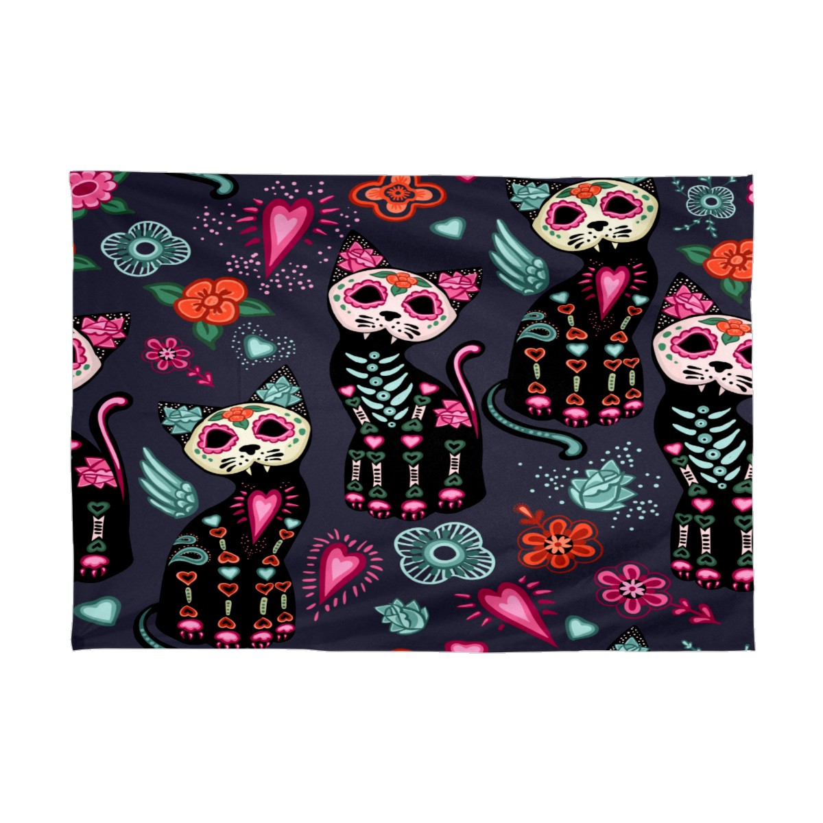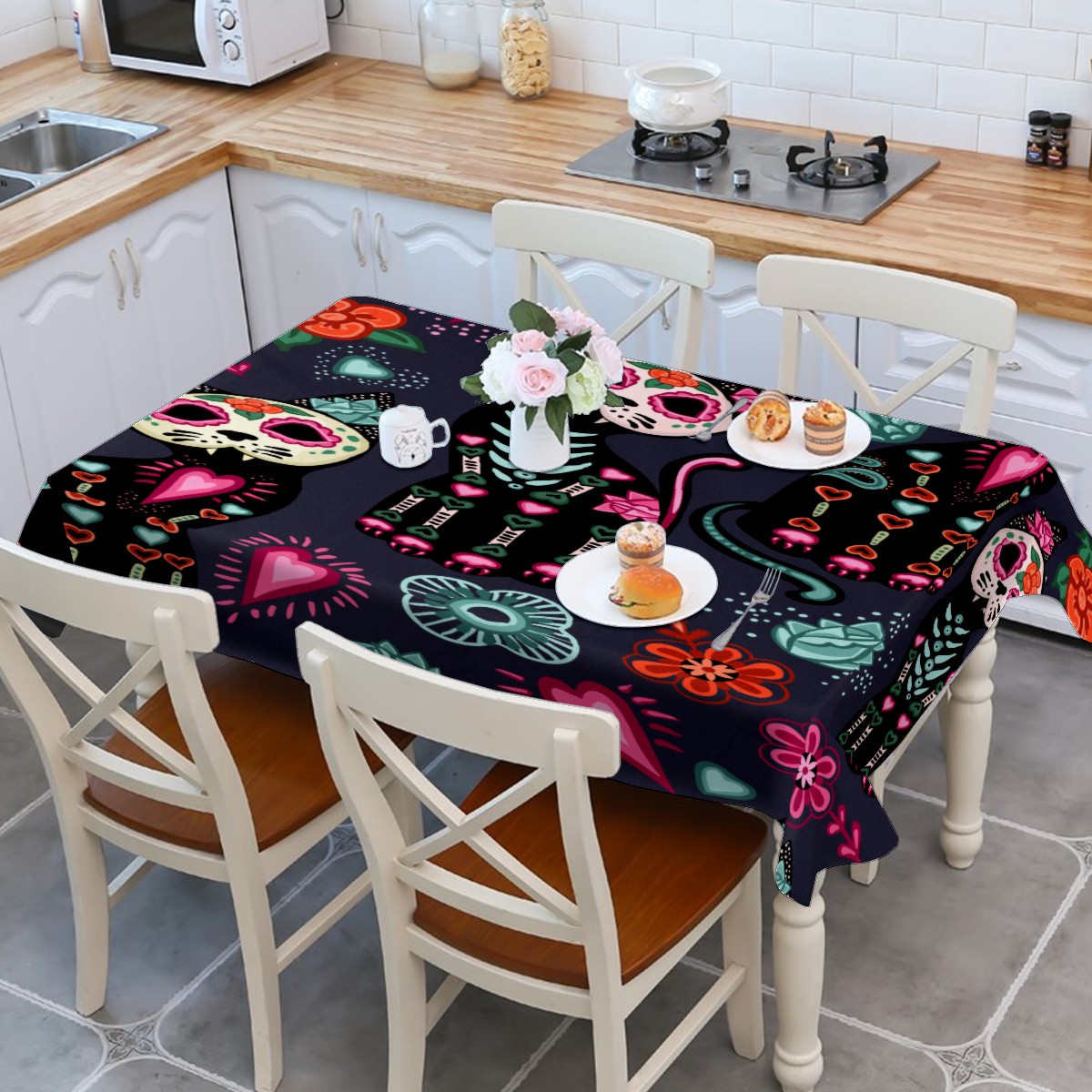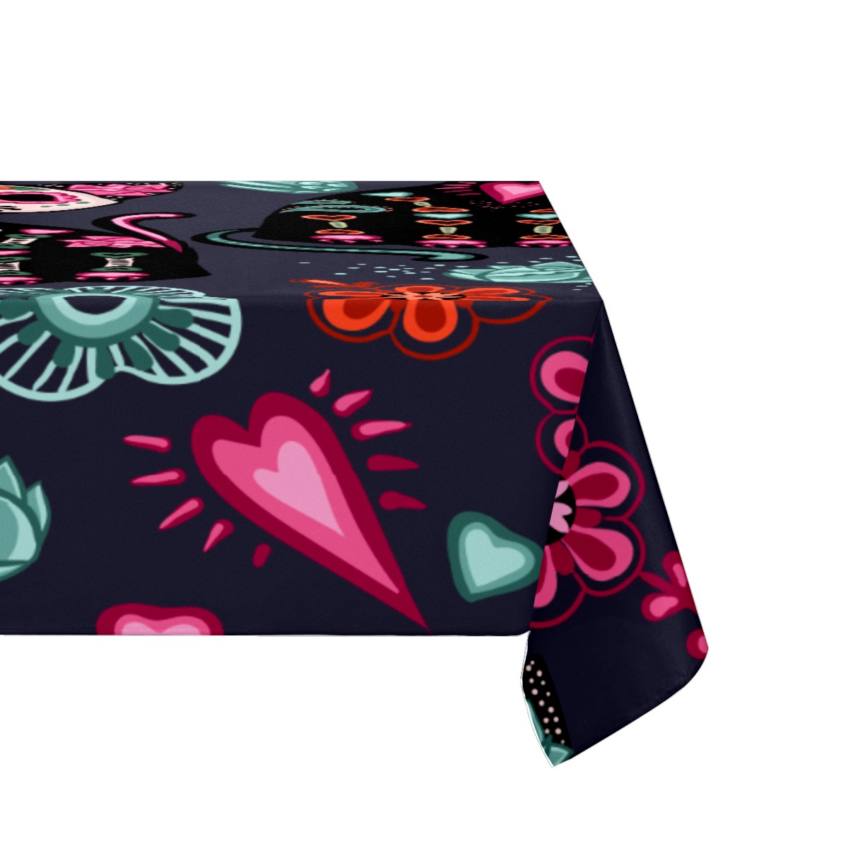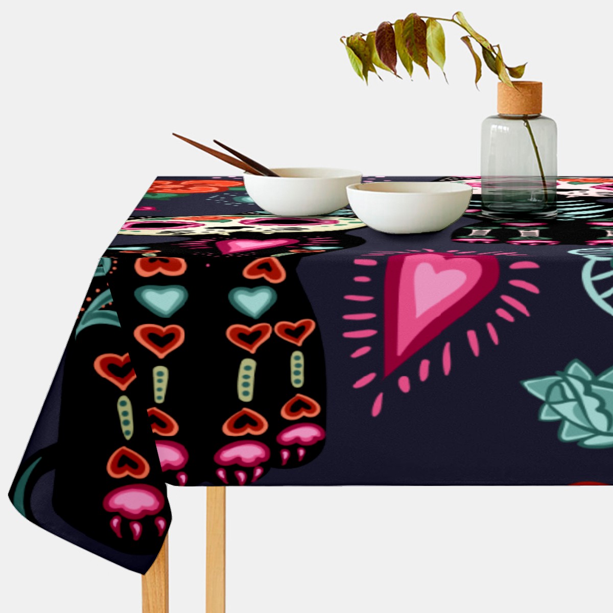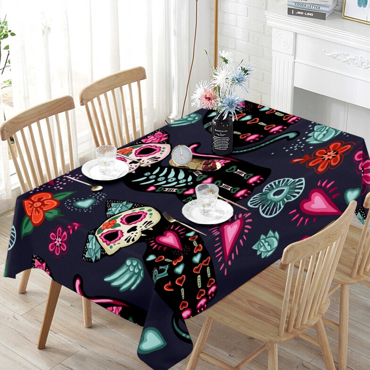 Rectangle Tablecloth Mexico Sugar Skull Cat Day Of Dead Table Cloth 54x54in Table Cover for Kitchen Dining Table Party Home Decoration Washable Table Runner