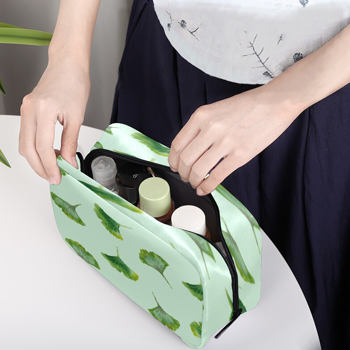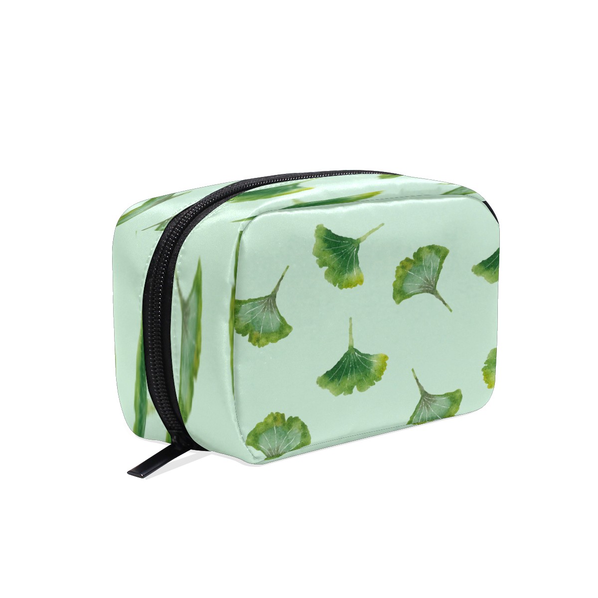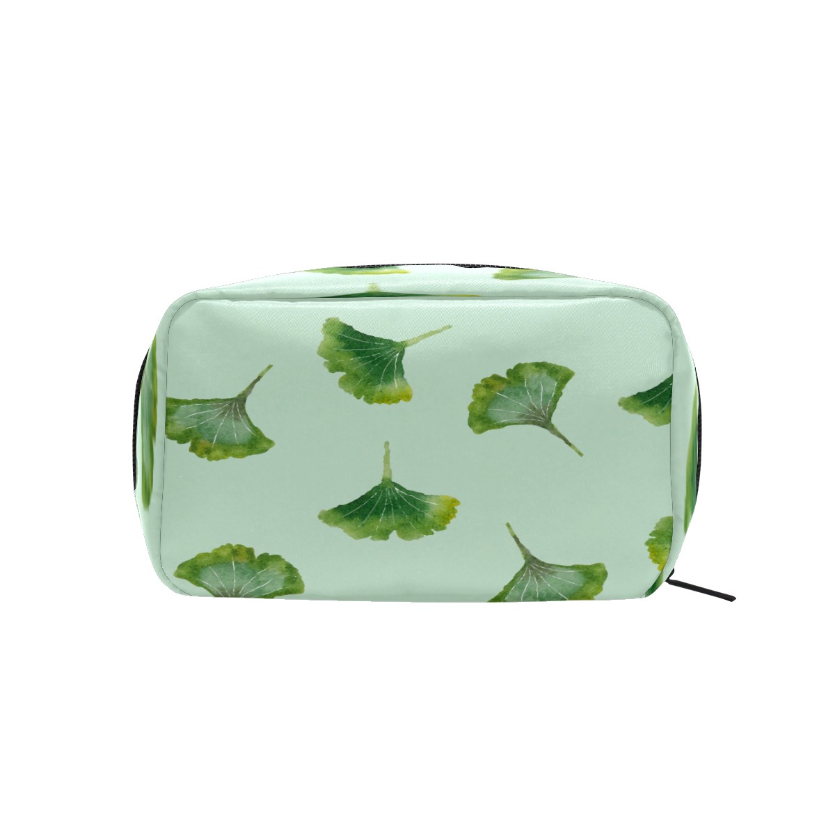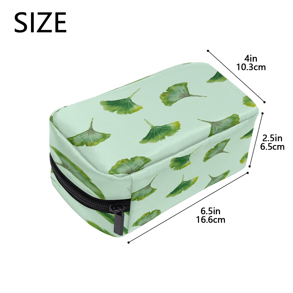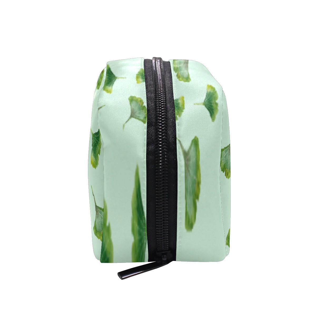 Cosmetic Bag for Women Girls Trave Makeup Bag Toiletry Case Pouch Accessories Organizer Green Ginkgo Biloba Leaves Pattern