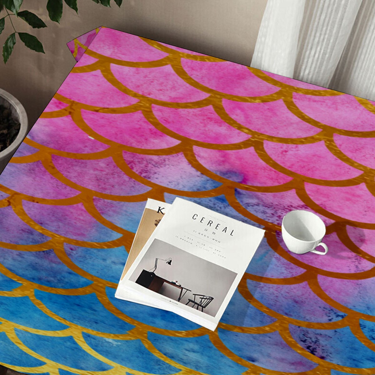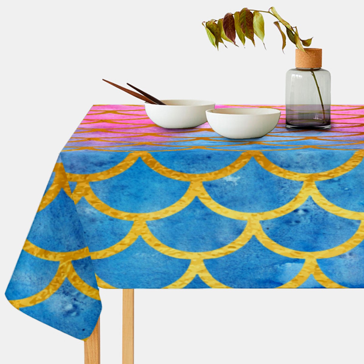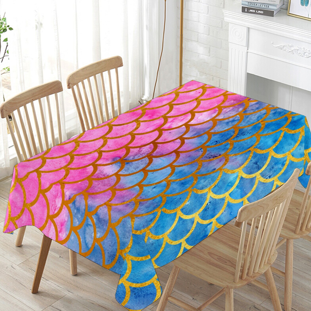 Rectangle Tablecloth Mermaid Scale Watercolor Rainbow Table Cloth 54x54in Table Cover for Kitchen Dining Table Party Home Decoration Washable Table Runner