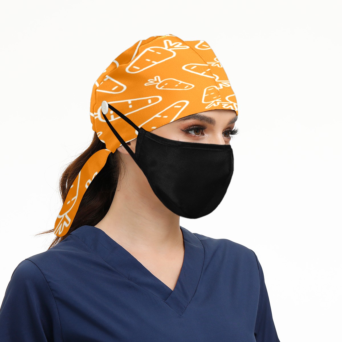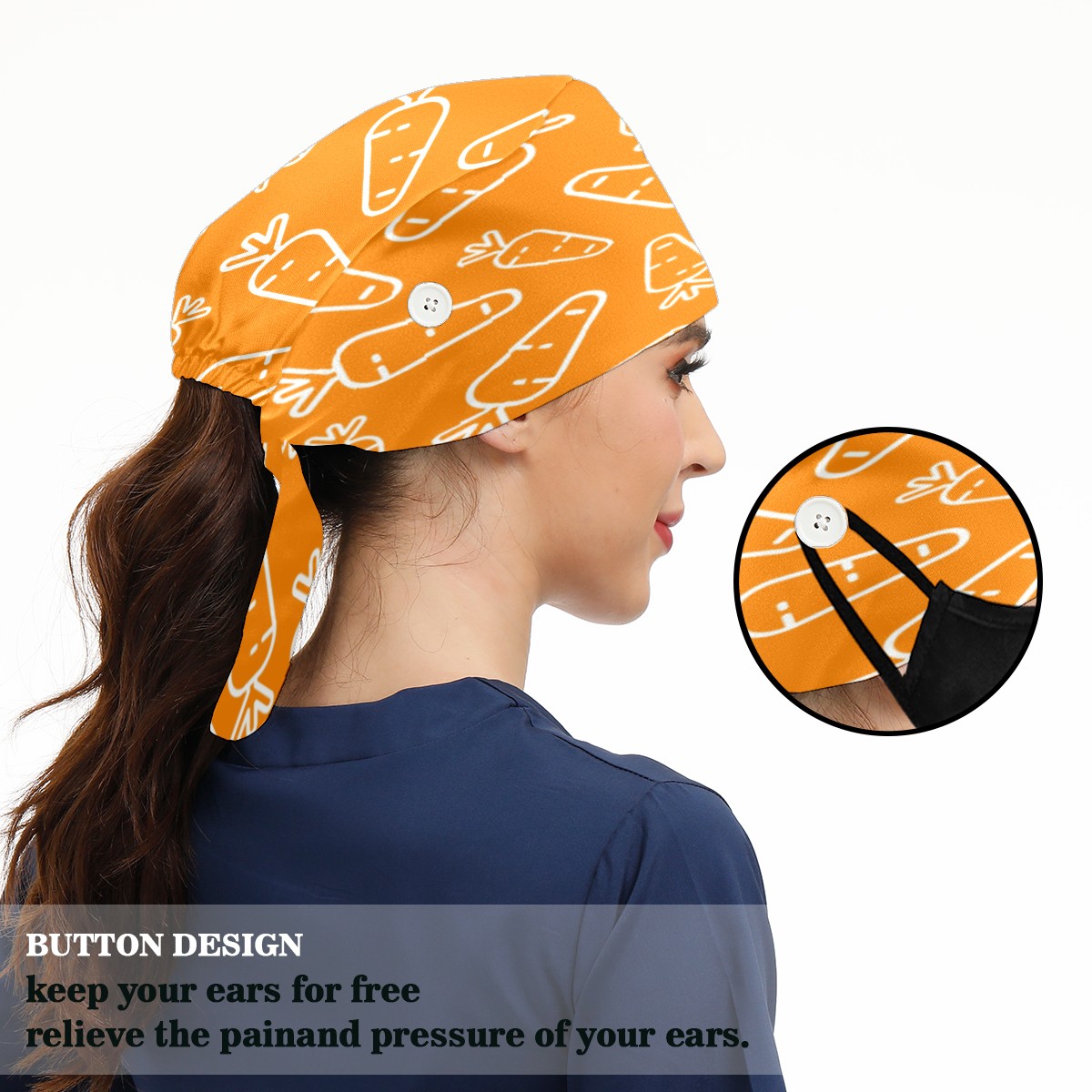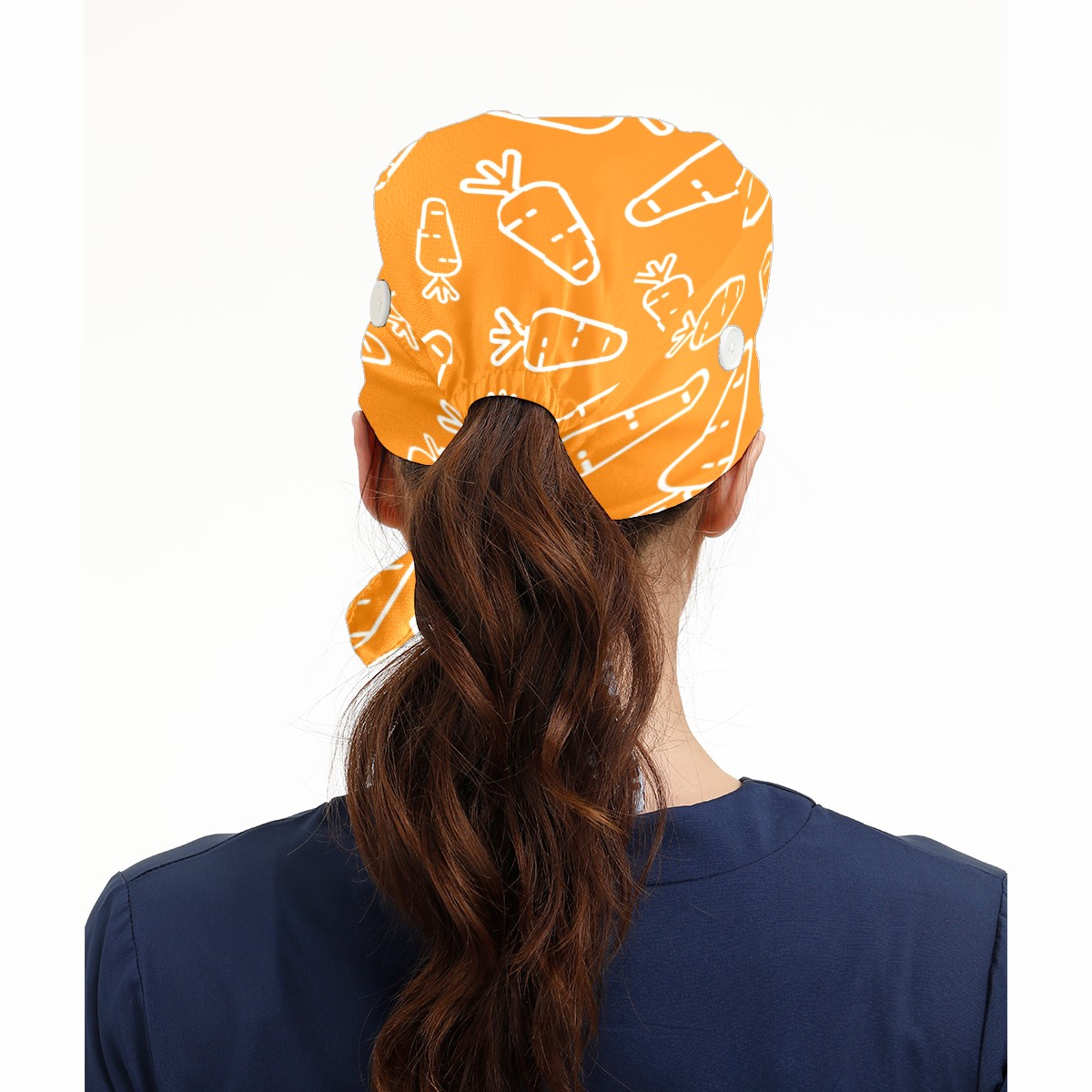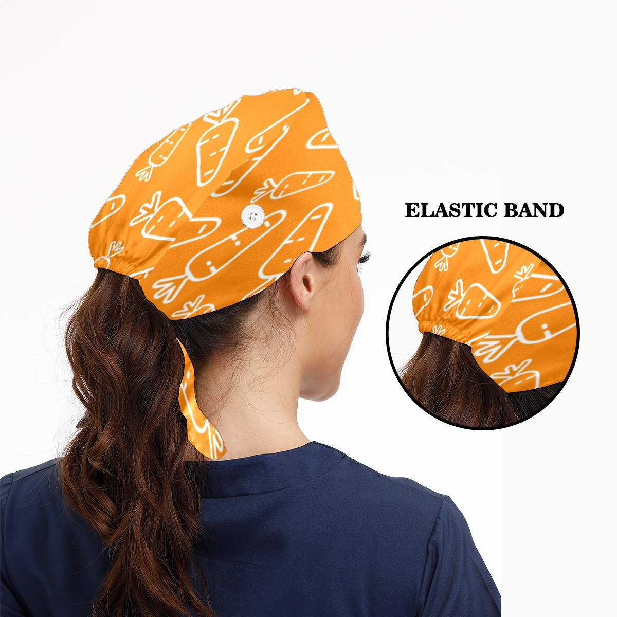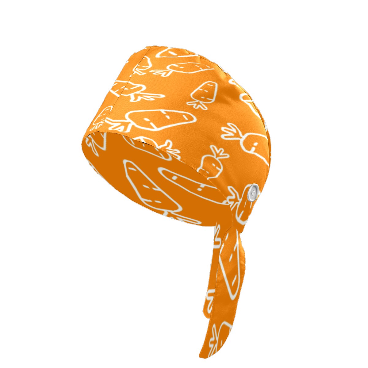 Carrot Vegetable Pattern Working Cap Button and Sweatband Adjustable Elastic Head Cover Hair Tie Back Work Hats for Women Men