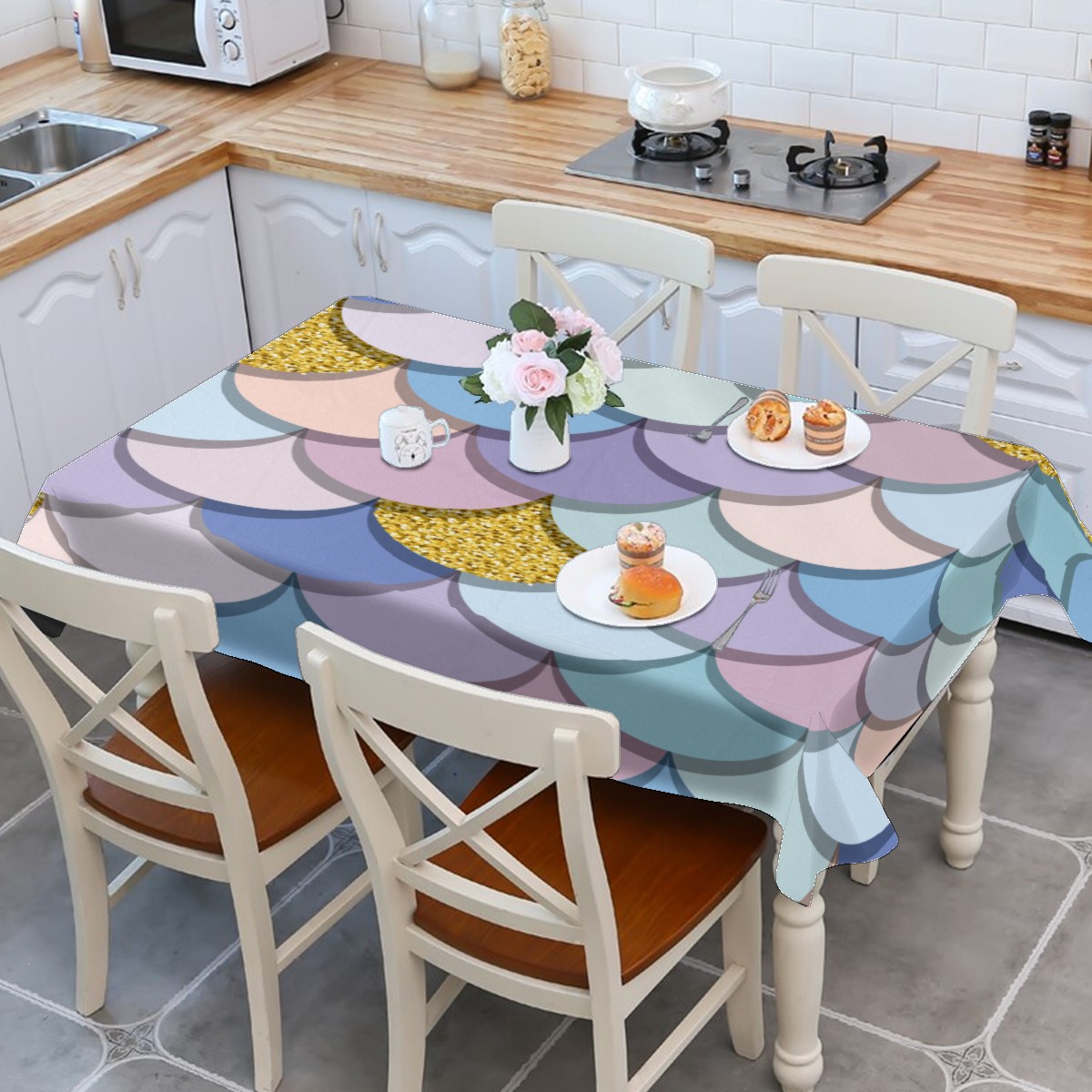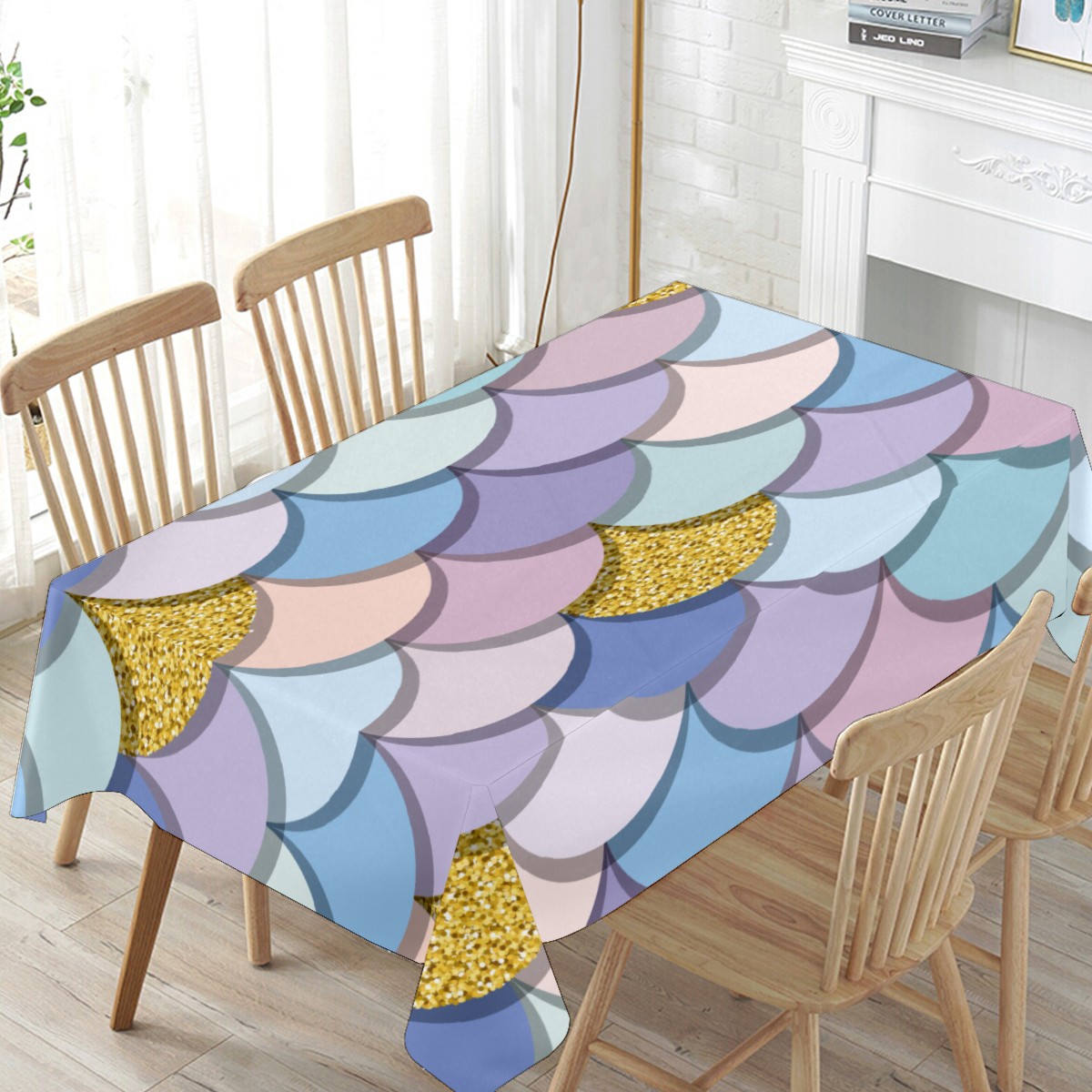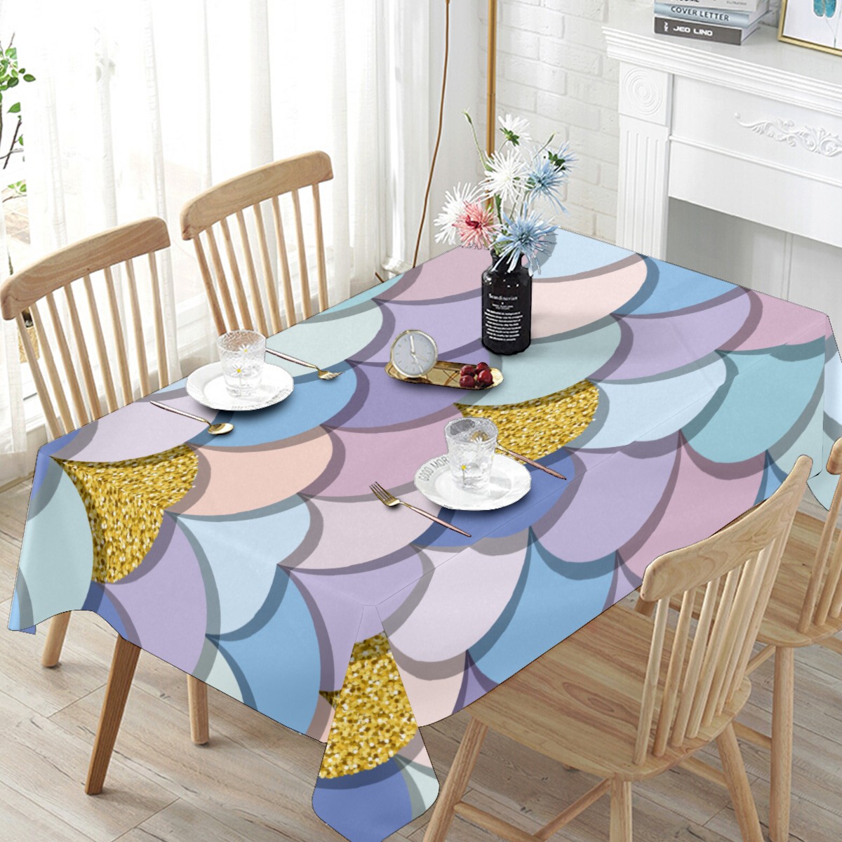 Rectangle Tablecloth Mermaid Scale Golden Colorful Table Cloth 54x54in Table Cover for Kitchen Dining Table Party Home Decoration Washable Table Runner