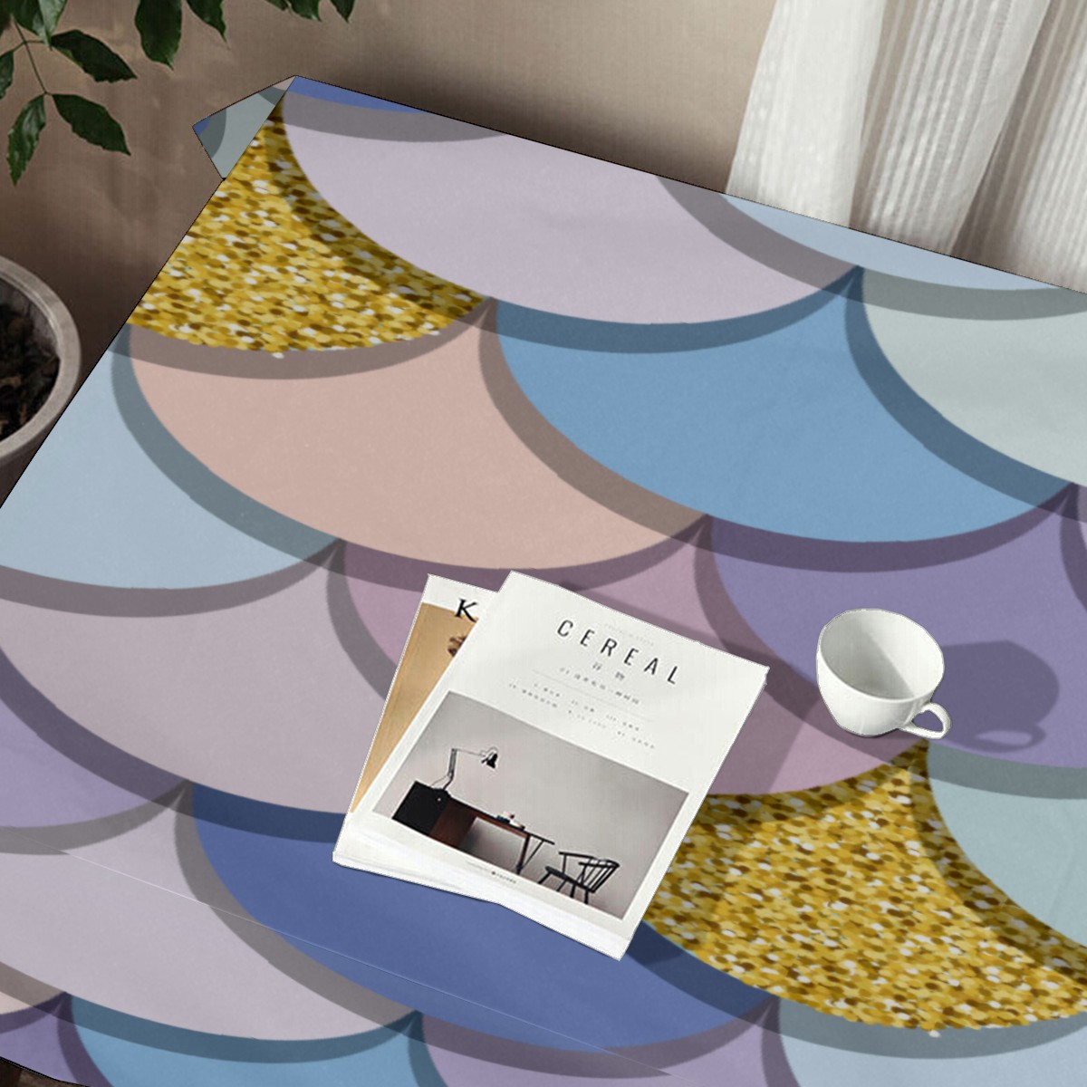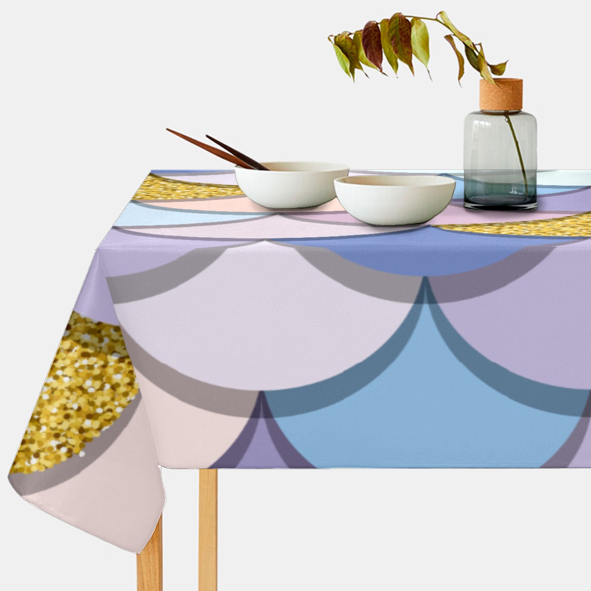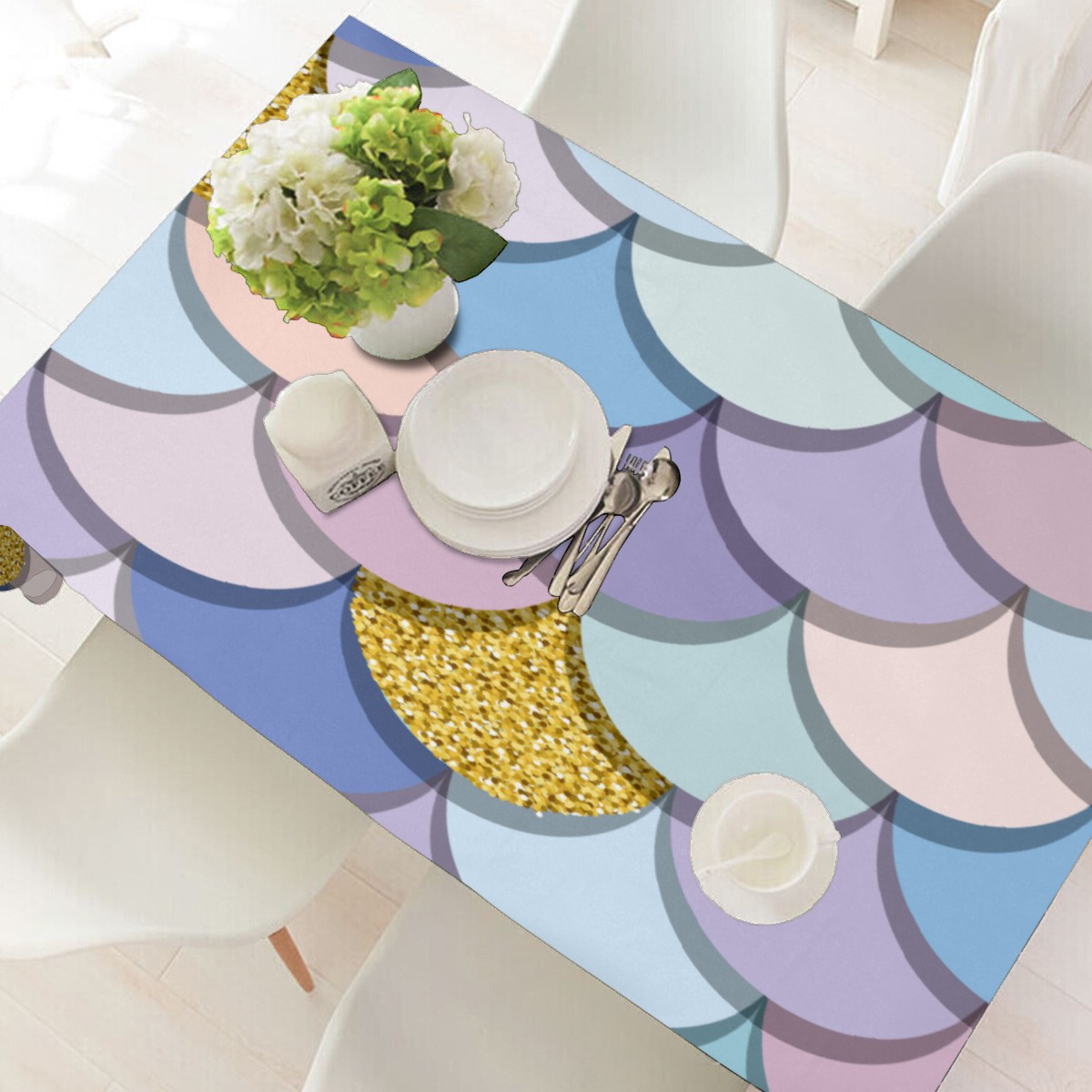 Rectangle Tablecloth Mermaid Scale Golden Colorful Table Cloth 54x54in Table Cover for Kitchen Dining Table Party Home Decoration Washable Table Runner