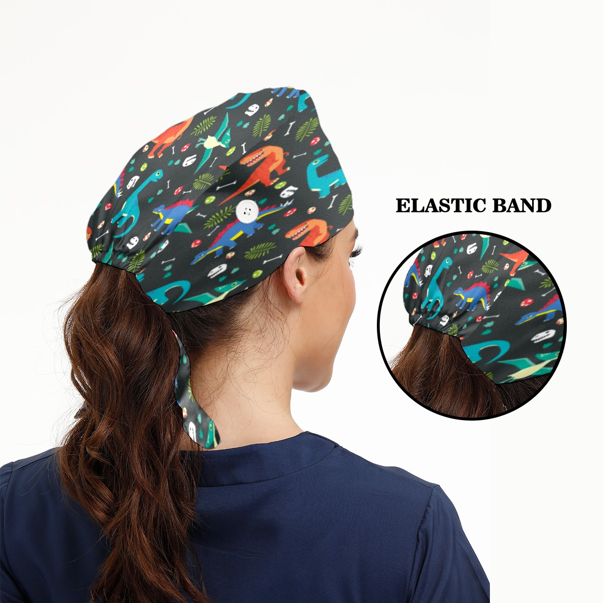 Dinosaur Bone Working Cap Button and Sweatband Adjustable Elastic Head Cover Hair Tie Back Work Hats for Women Men