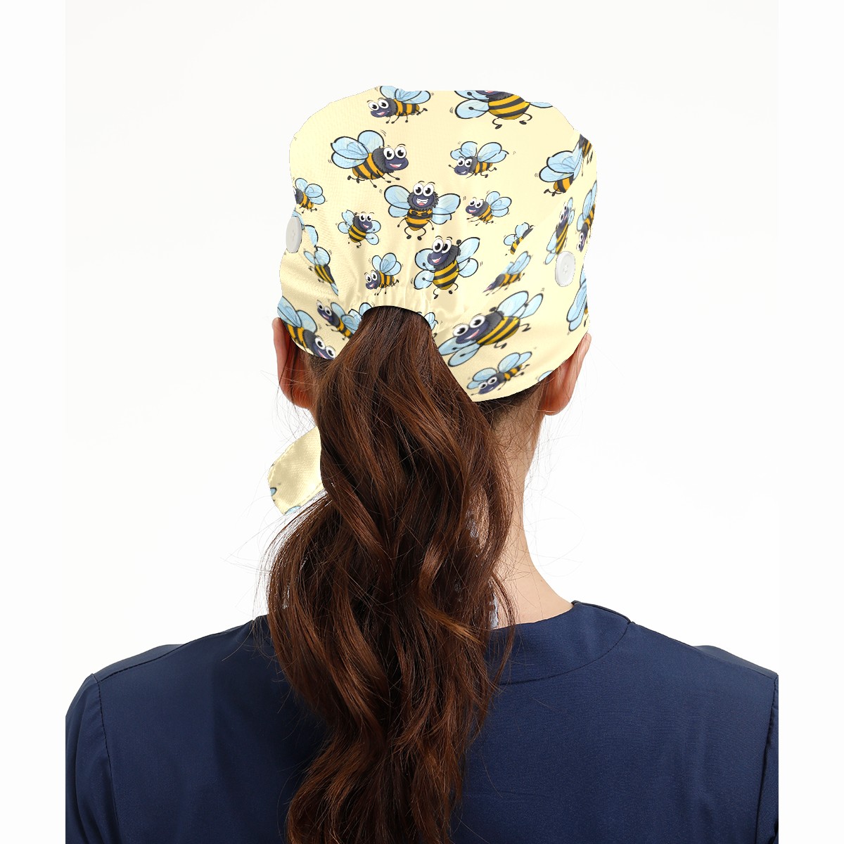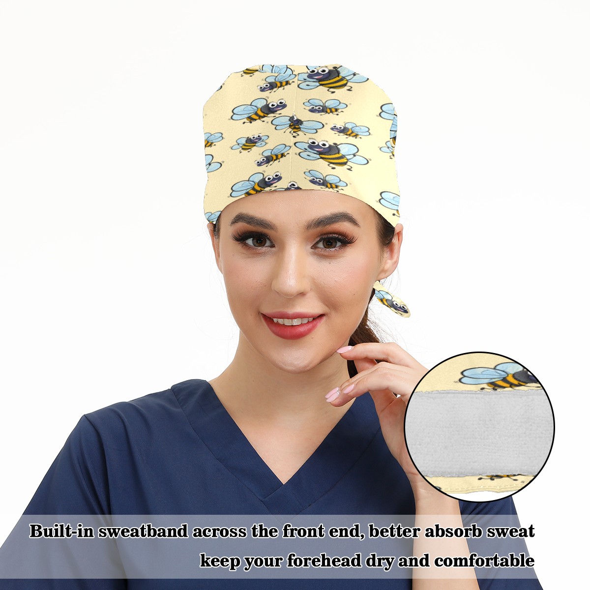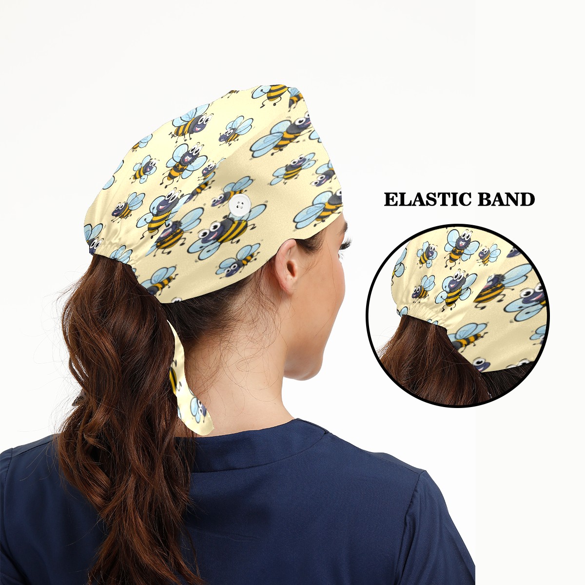 Cartoon Cute Yellow Insects Bees Pattern Working Cap Button and Sweatband Adjustable Elastic Head Cover Hair Tie Back Work Hats for Women Men