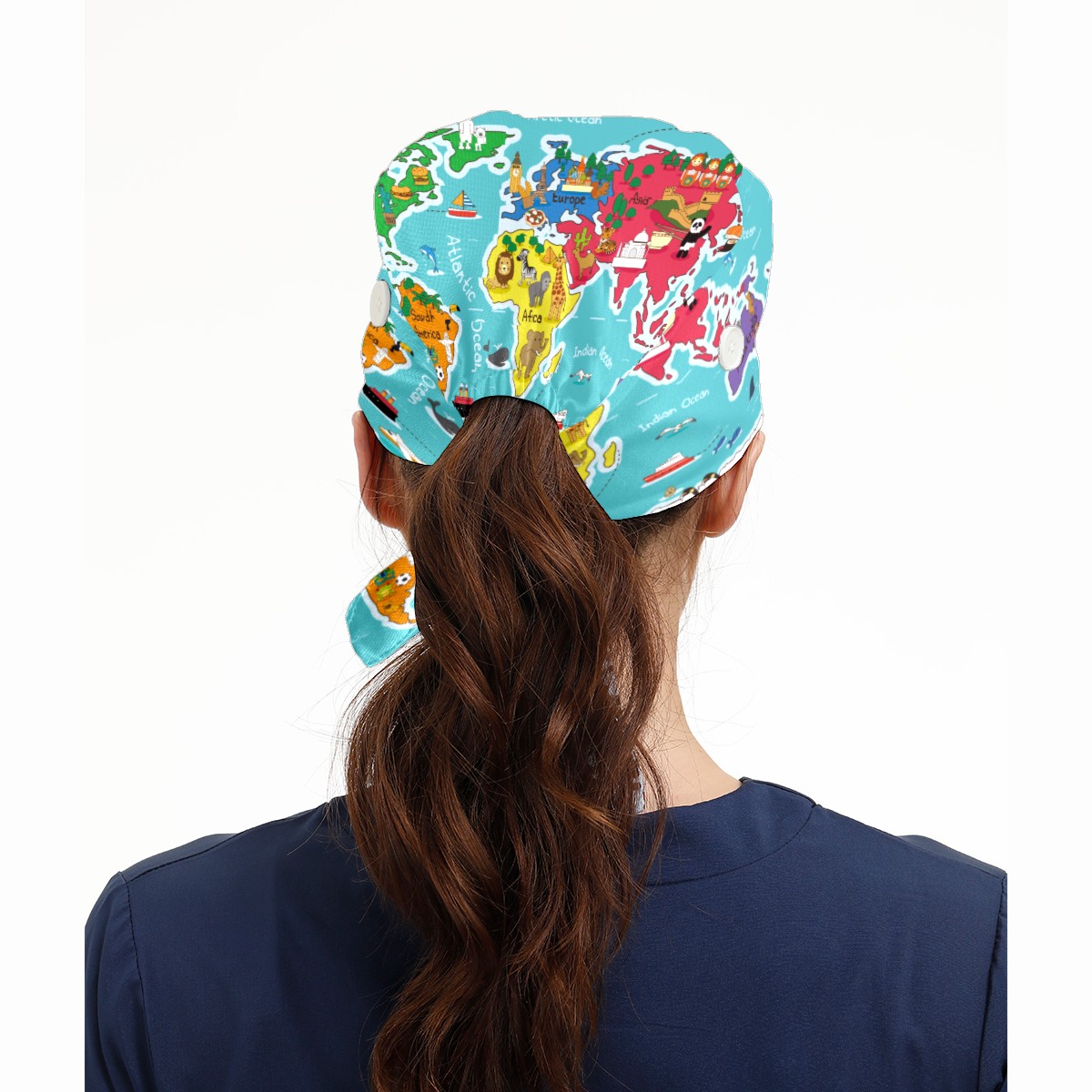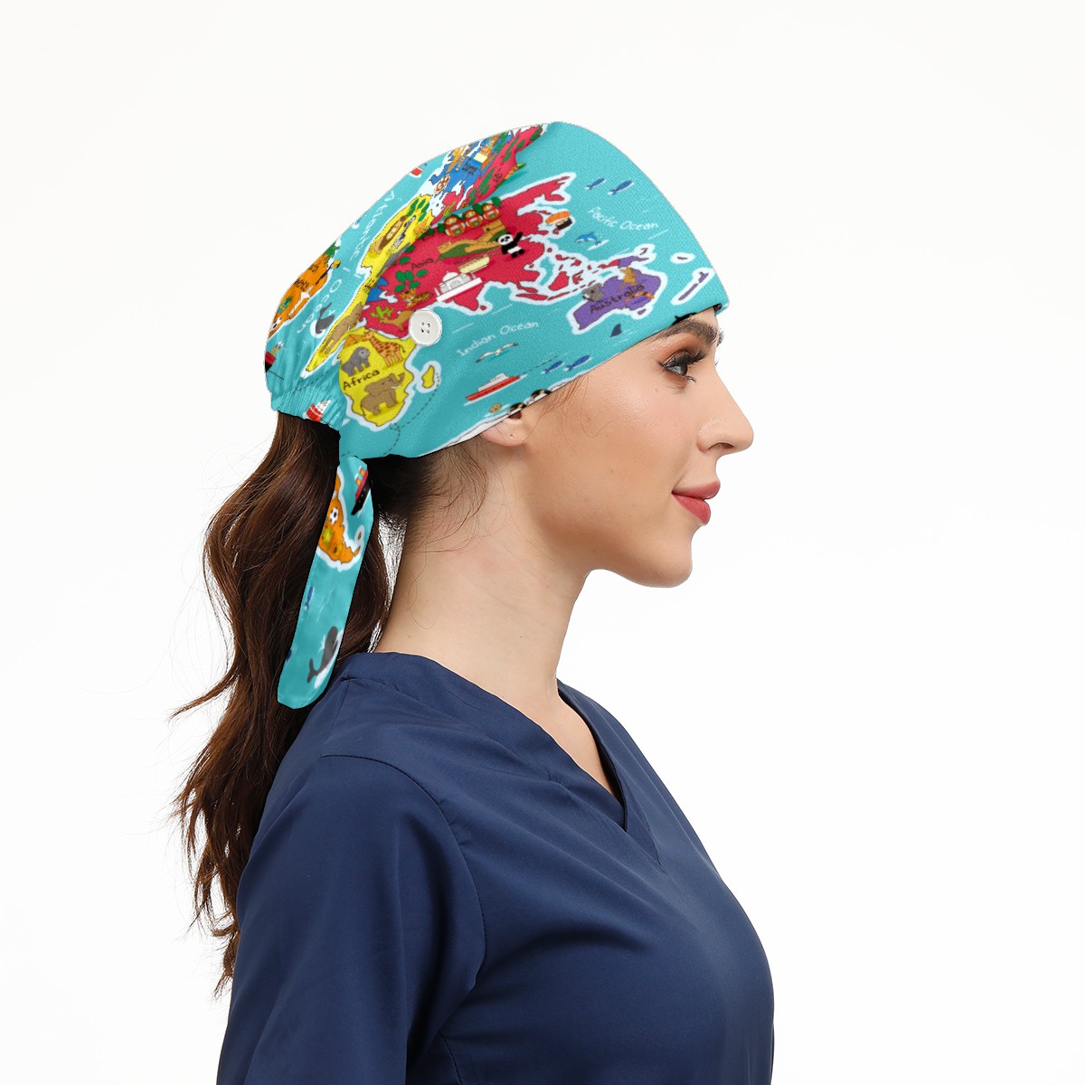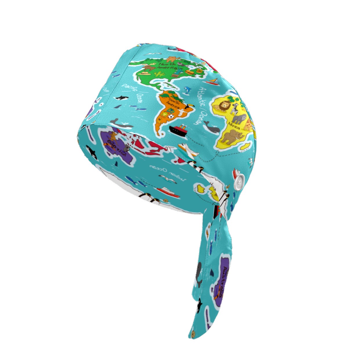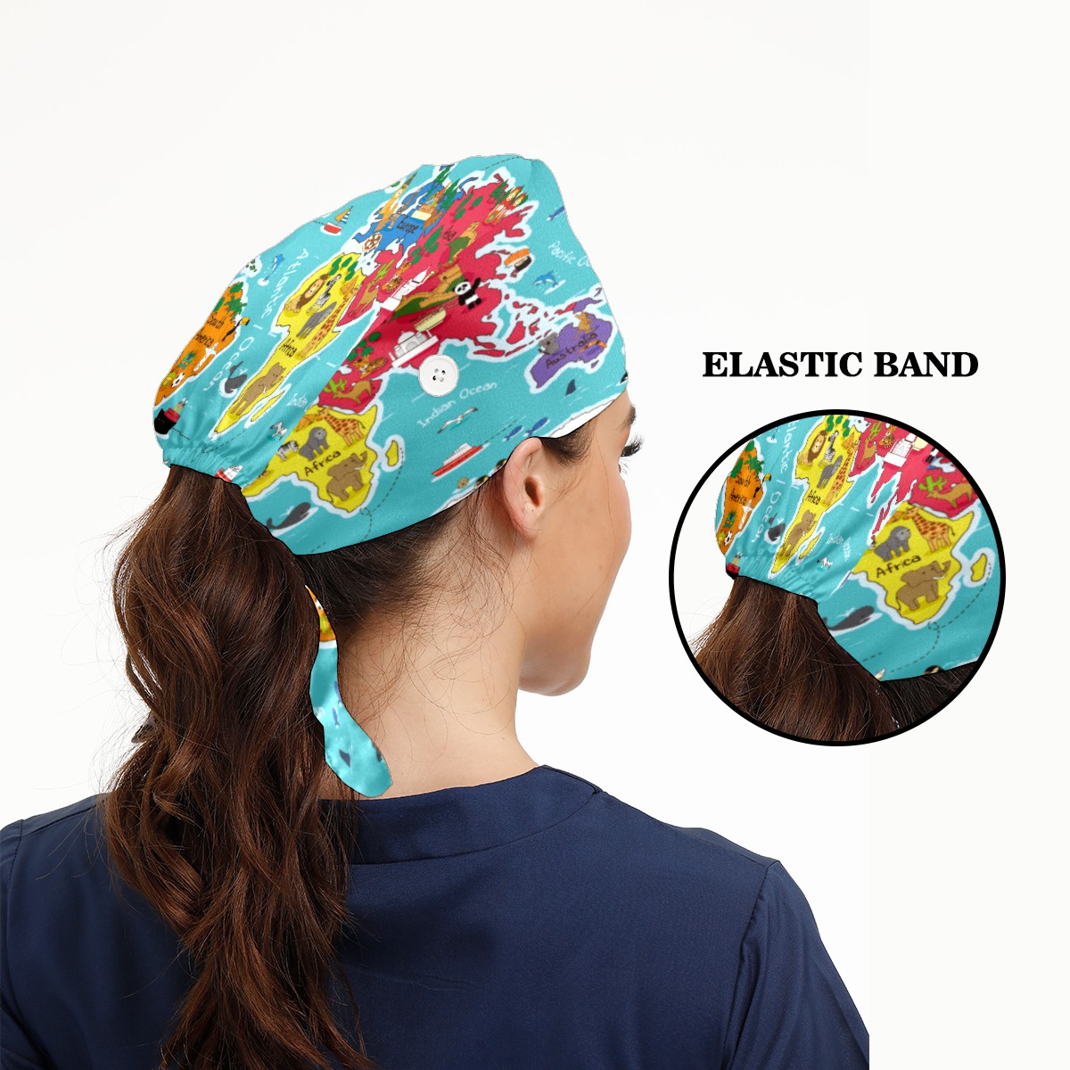 Animals Mape Of The World Working Cap Button and Sweatband Adjustable Elastic Head Cover Hair Tie Back Work Hats for Women Men