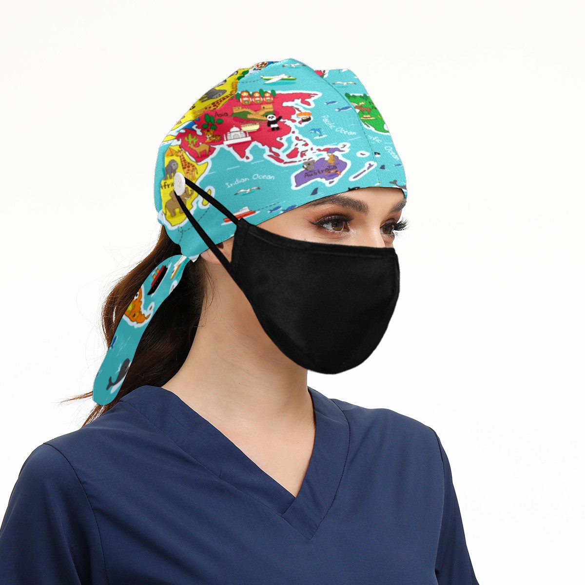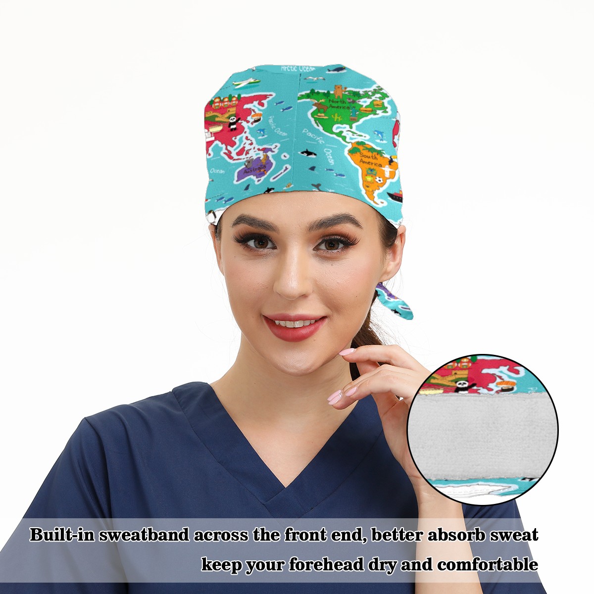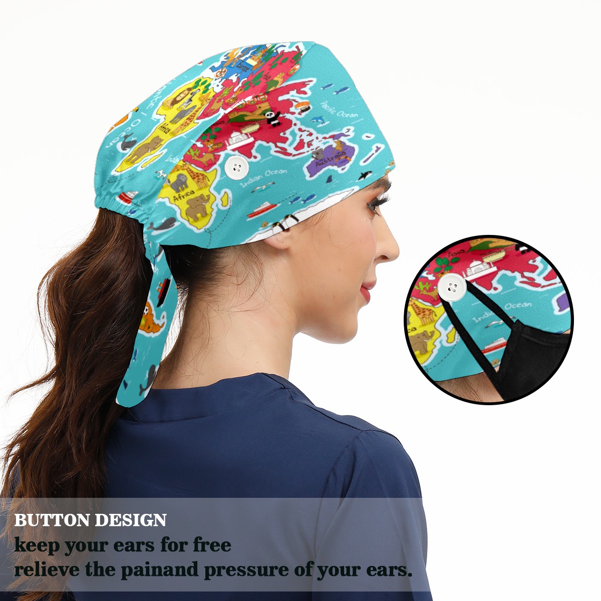 <p>Working cap with Sweatband and Button for Women Men</p><p>Material&nbsp;: 50% cotton+50% polyester</p><p>Size:&nbsp;One size fits most,&nbsp;suitable for both men and women.</p><p>Working Cap with Buttons Design:special&nbsp;design with buttons to protect ears for those who are wearing ma-sk. These new styles hats will allow you to put the straps around the buttons instead of your ears, make you feel more comfortable.</p><p>Sweat-absorbent towel cloth inside: Built-in&nbsp;100% cotton sweatband, keep the forehead clean after long time working.</p><p>Widely occasion: Widely used in beauty spa, house cleaning, cooking, sleeping, or for cos-play&nbsp;party.</p><p>Lovely pattern: lovely&nbsp;3D printed&nbsp;pattern,&nbsp;it's perfect for gift to you family&nbsp;and friends.</p>