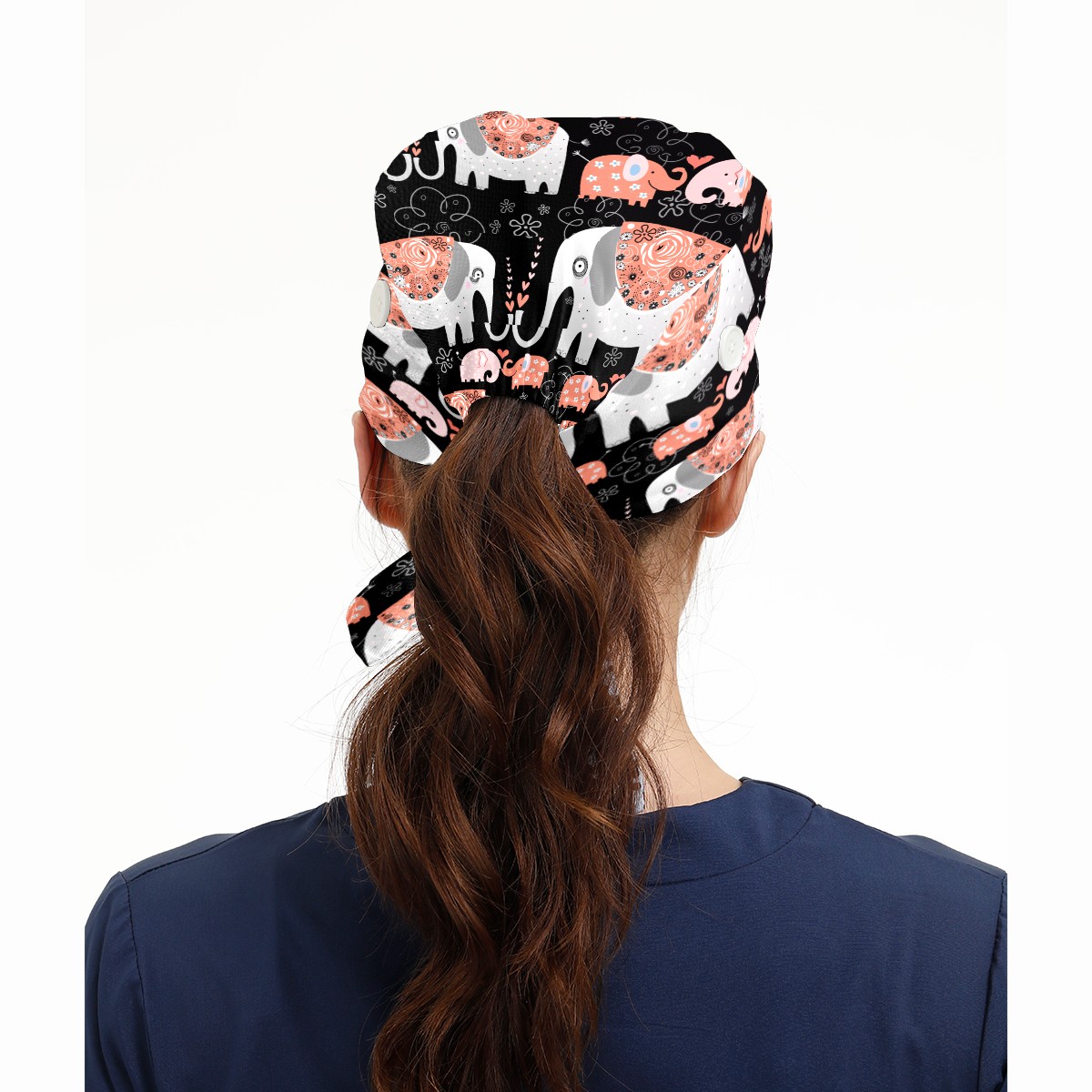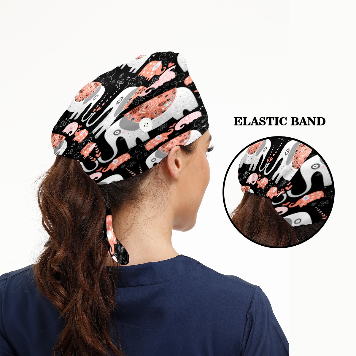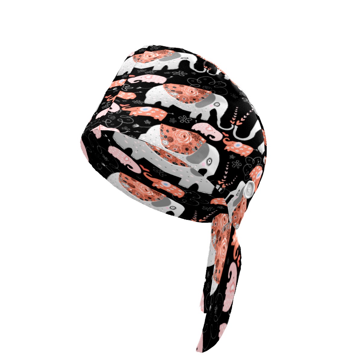 Boho Elephant Floral Print Working Cap Button and Sweatband Adjustable Elastic Head Cover Hair Tie Back Work Hats for Women Men