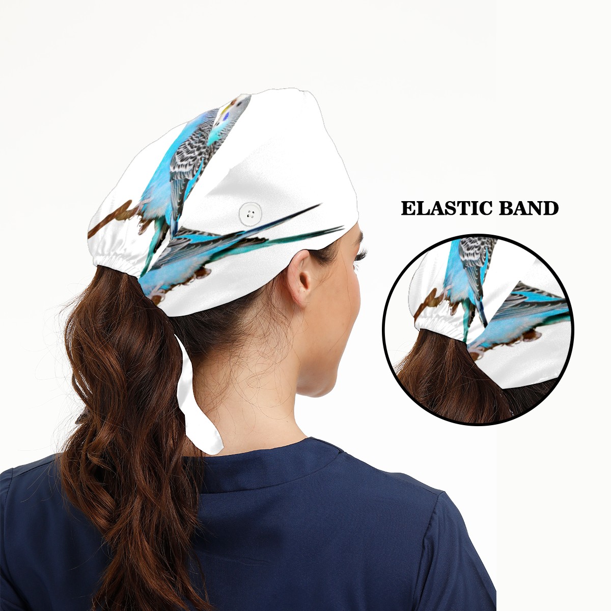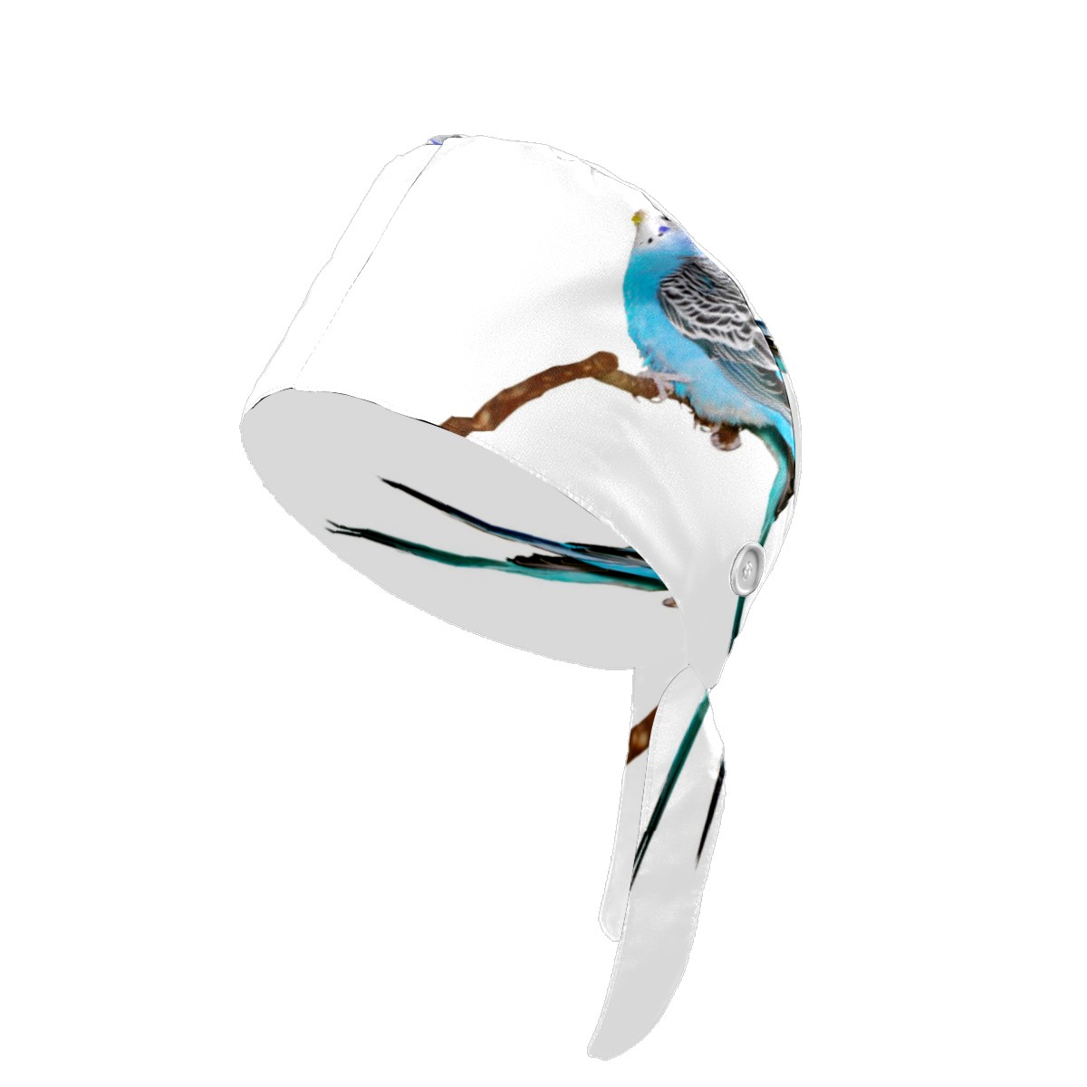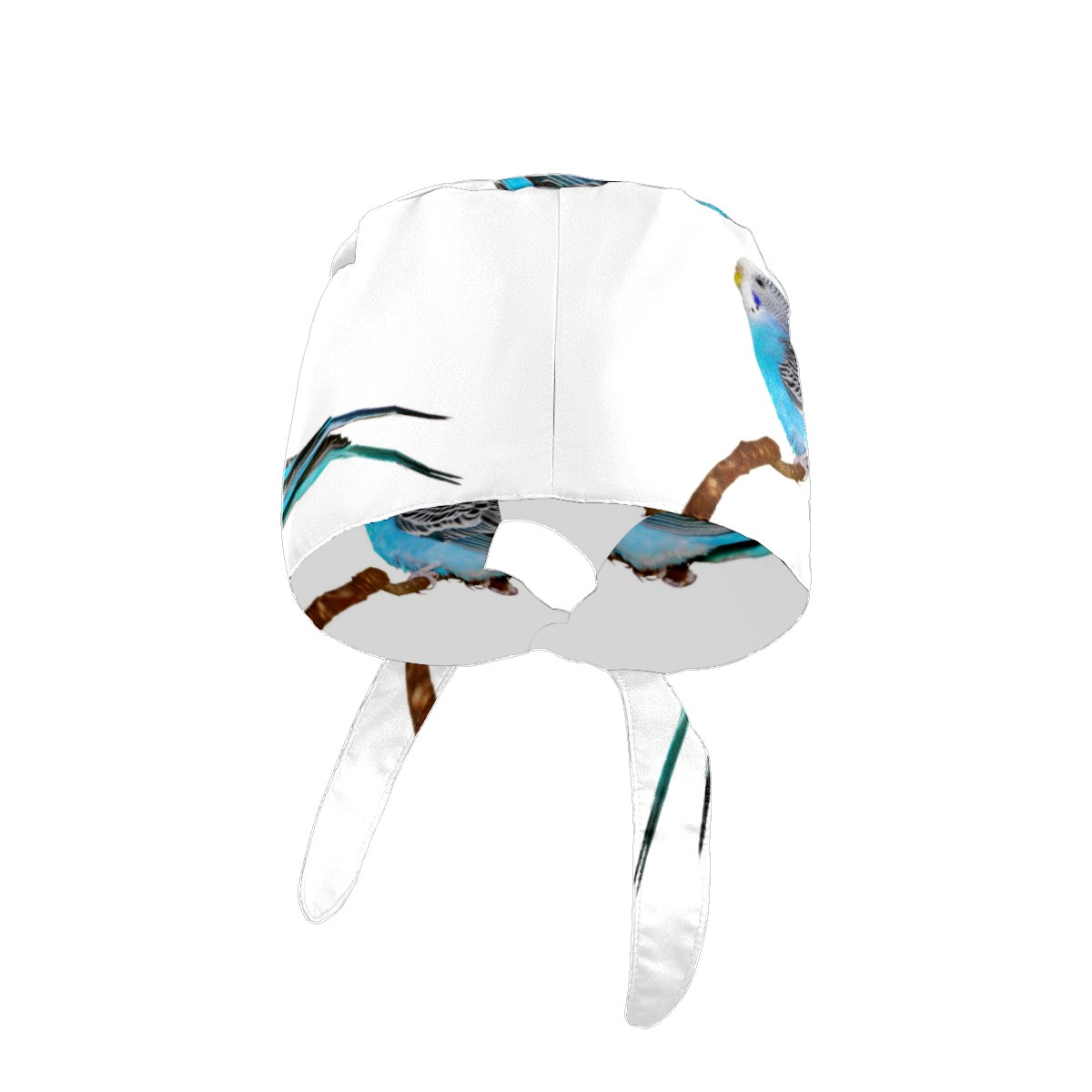 Blue Budgie Parrot Working Cap Button and Sweatband Adjustable Elastic Head Cover Hair Tie Back Work Hats for Women Men
