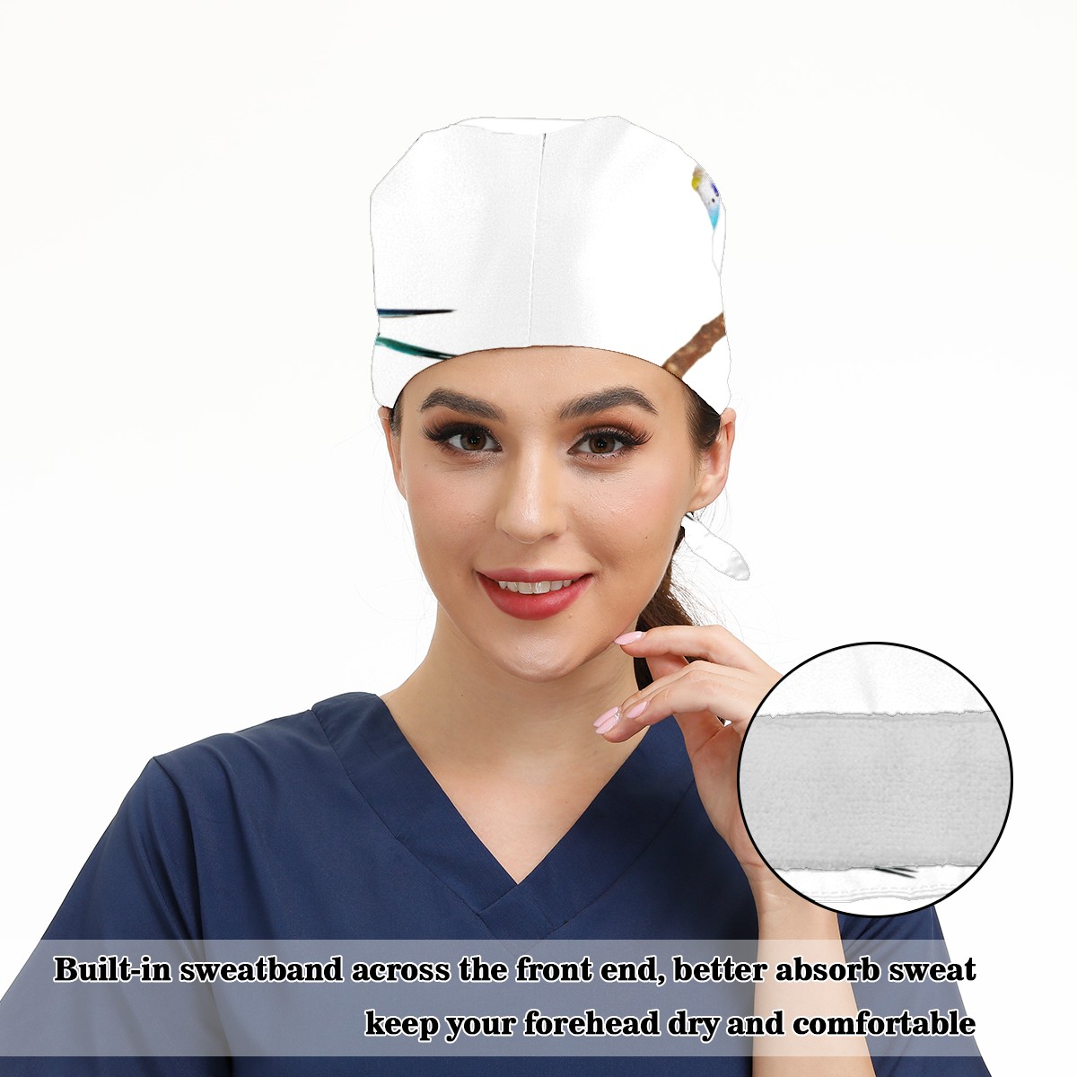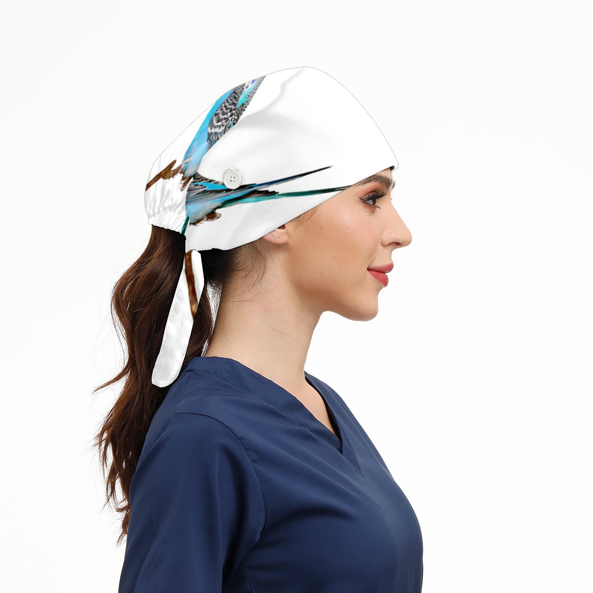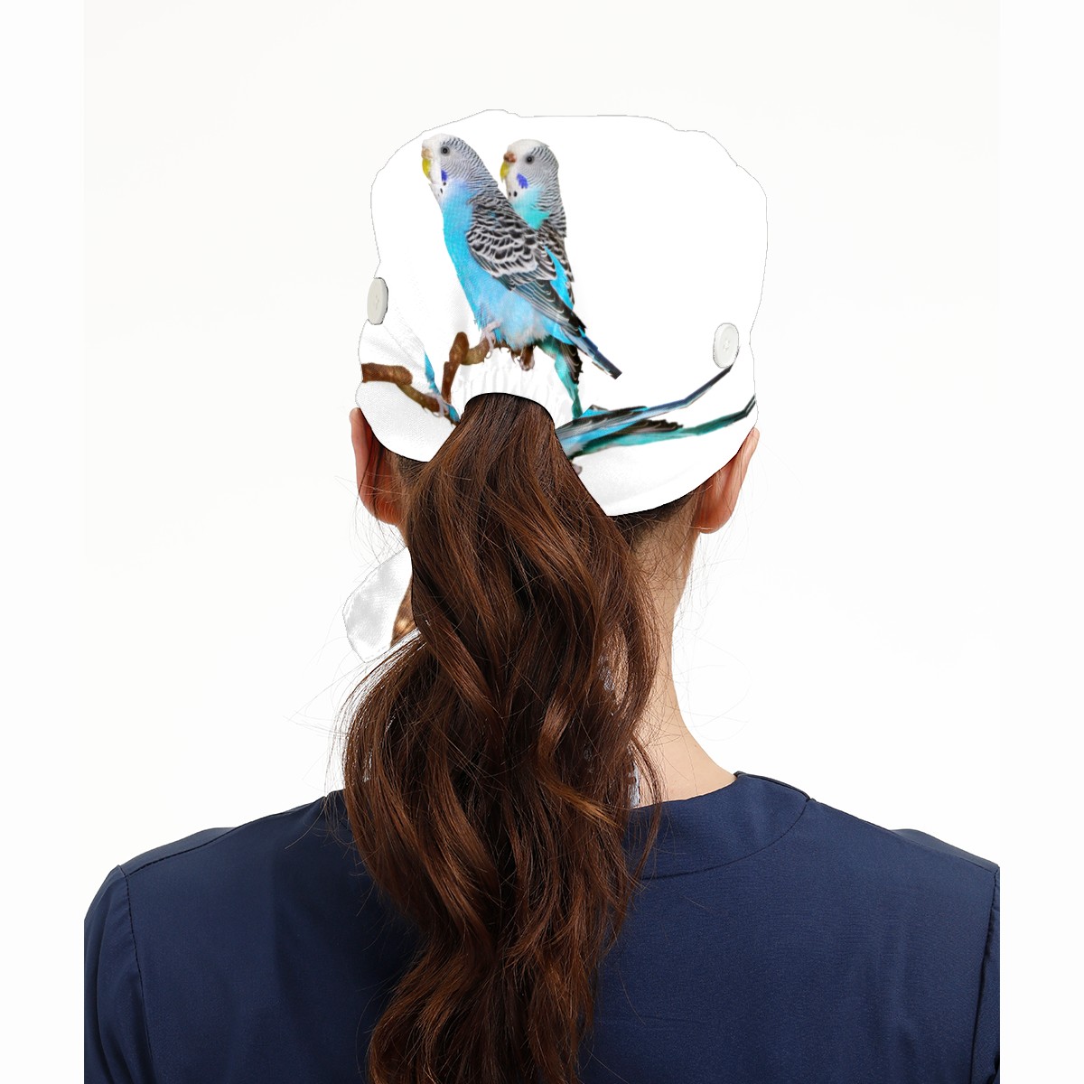 Blue Budgie Parrot Working Cap Button and Sweatband Adjustable Elastic Head Cover Hair Tie Back Work Hats for Women Men