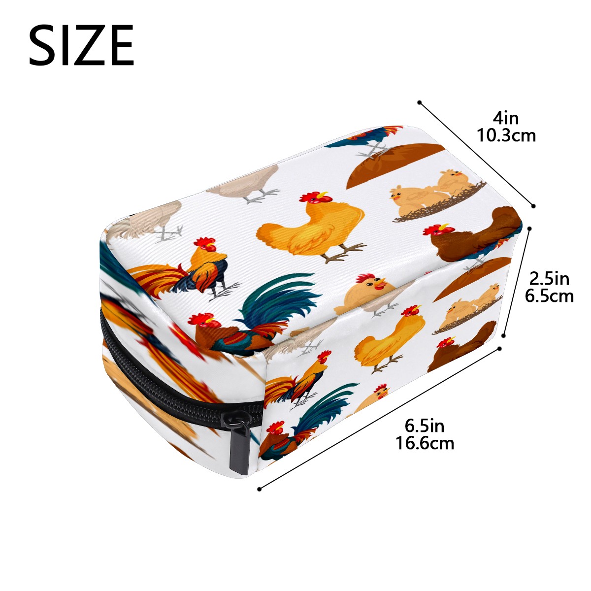 Cosmetic Bag for Women Girls Trave Makeup Bag Toiletry Case Pouch Accessories Organizer Funny Cartoon Farm Animal Chicken Rooster