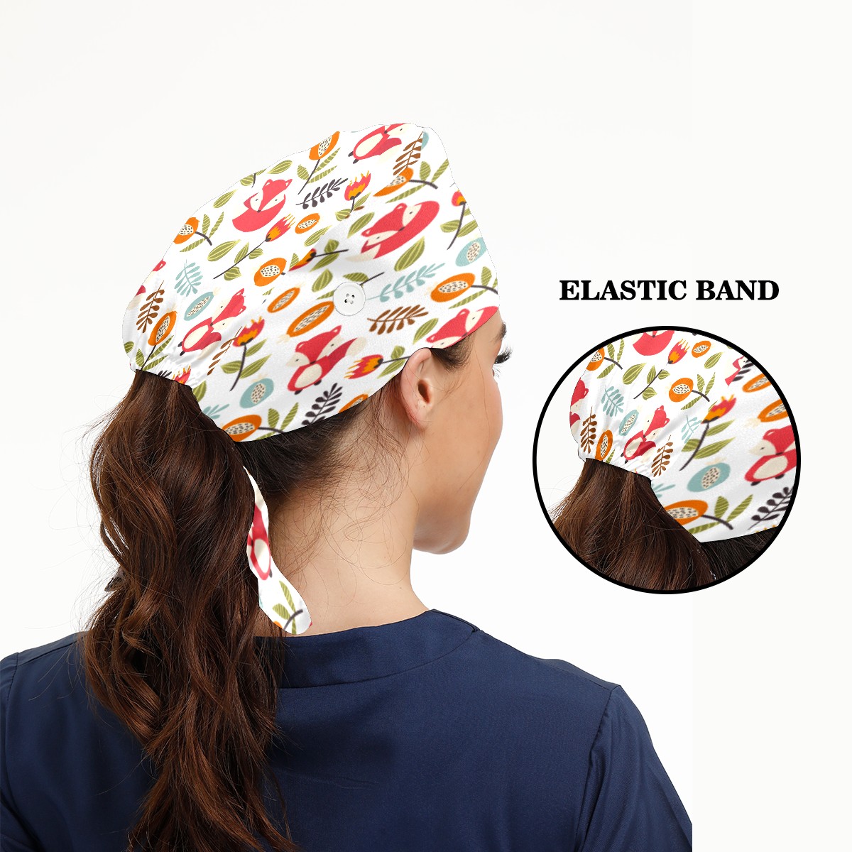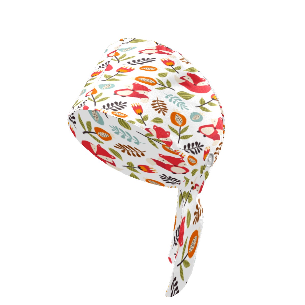 Autumn Fox Forest Floral Pattern Working Cap Button and Sweatband Adjustable Elastic Head Cover Hair Tie Back Work Hats for Women Men