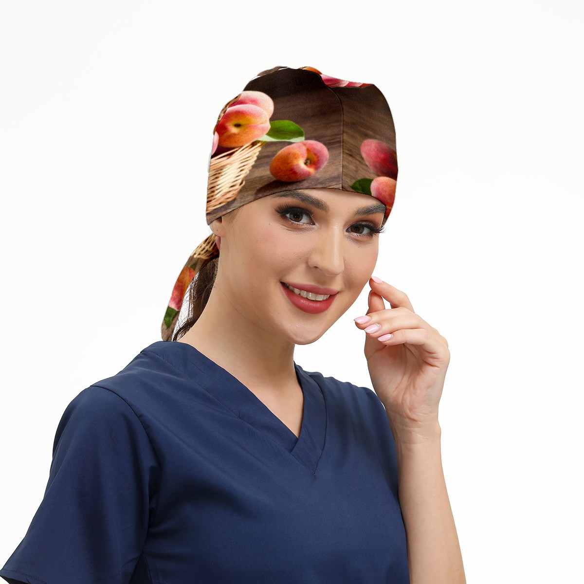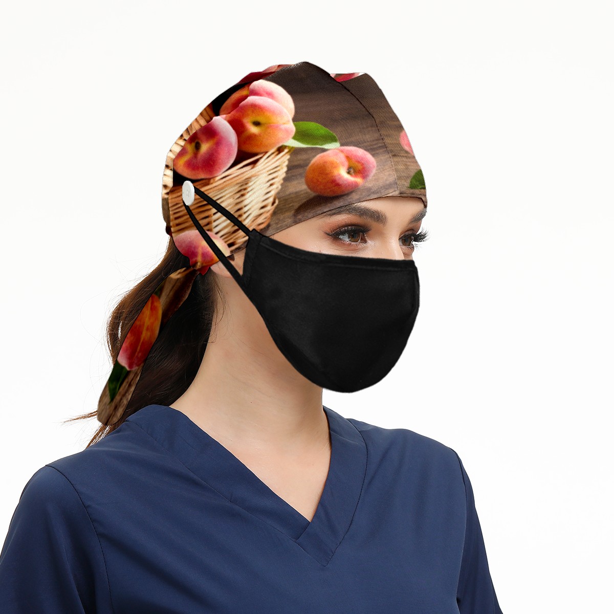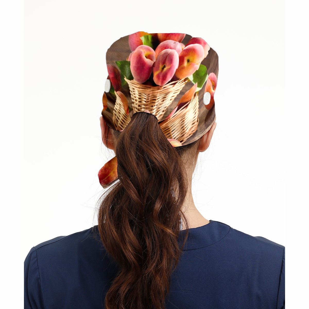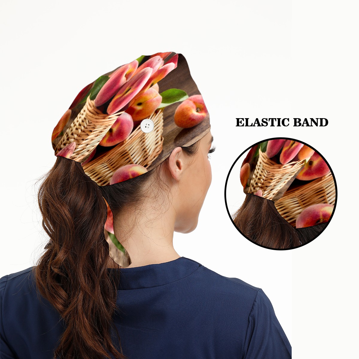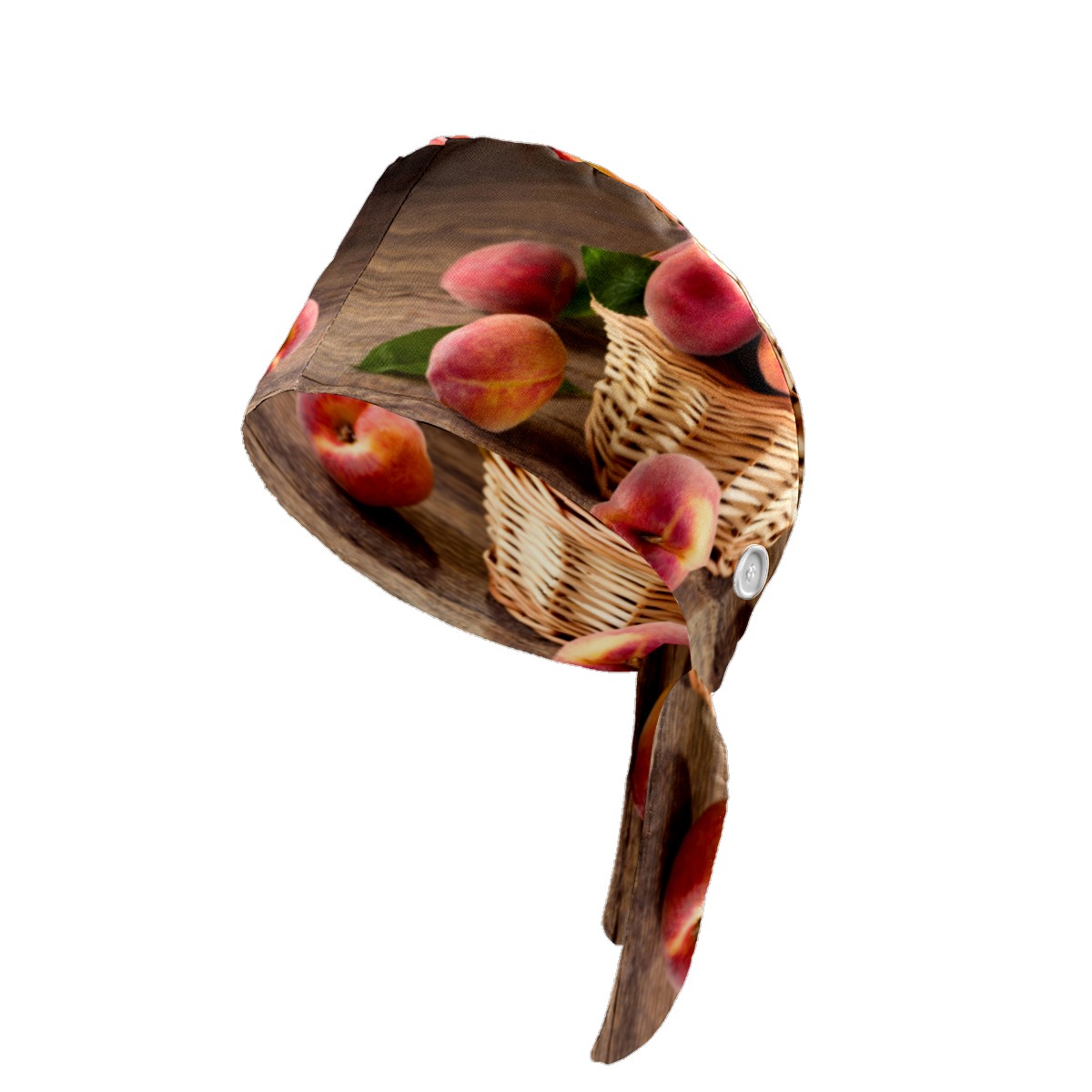 Peach Fruits Basket Working Cap Button and Sweatband Adjustable Elastic Head Cover Hair Tie Back Work Hats for Women Men