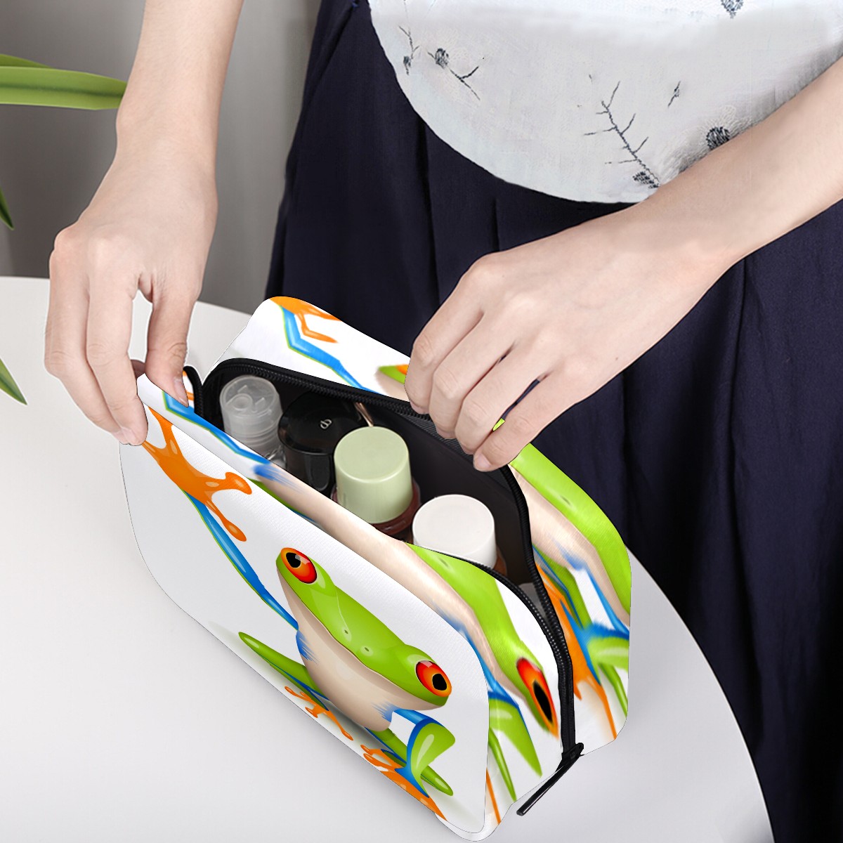 Cosmetic Bag for Women Girls Trave Makeup Bag Toiletry Case Pouch Accessories Organizer Funny Cartoon Frog