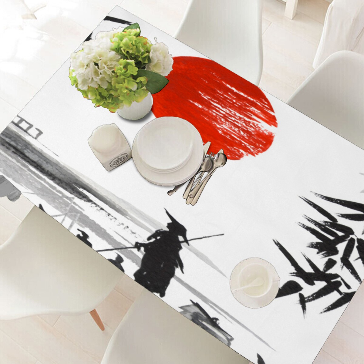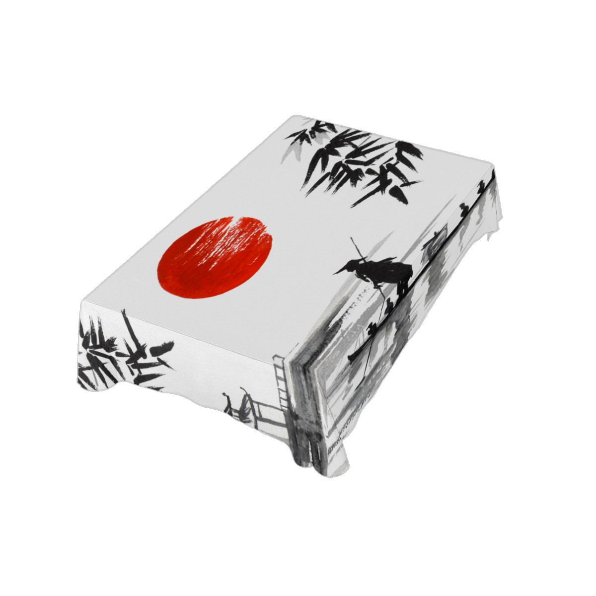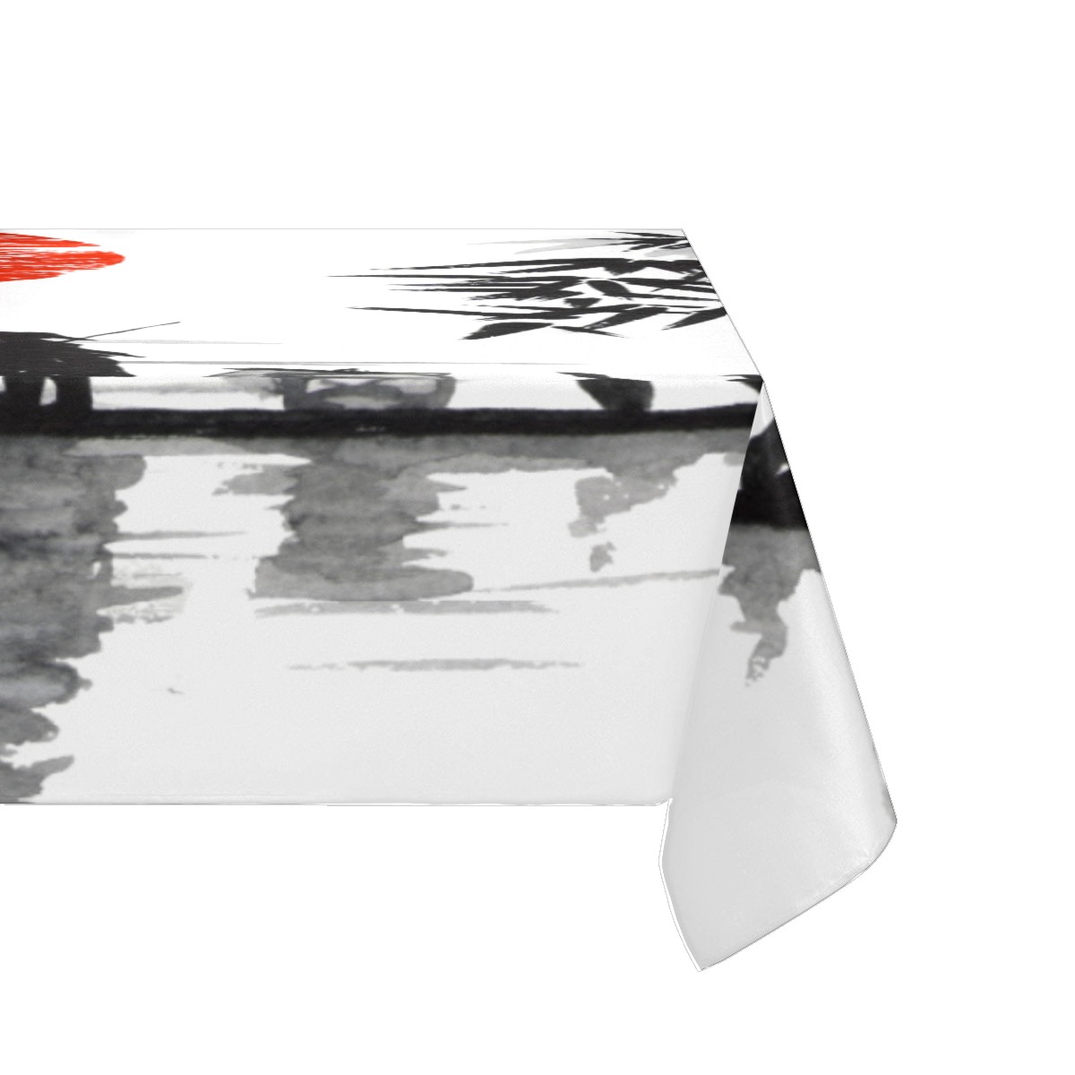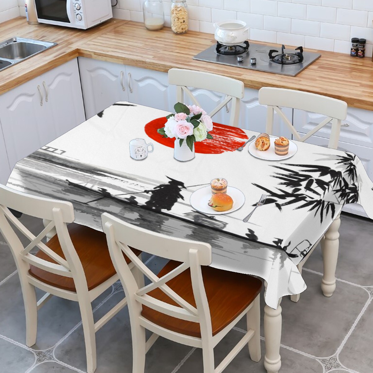 Rectangle Tablecloth Japanese Bamboo Landscape Boating Table Cloth 54x54in Table Cover for Kitchen Dining Table Party Home Decoration Washable Table Runner