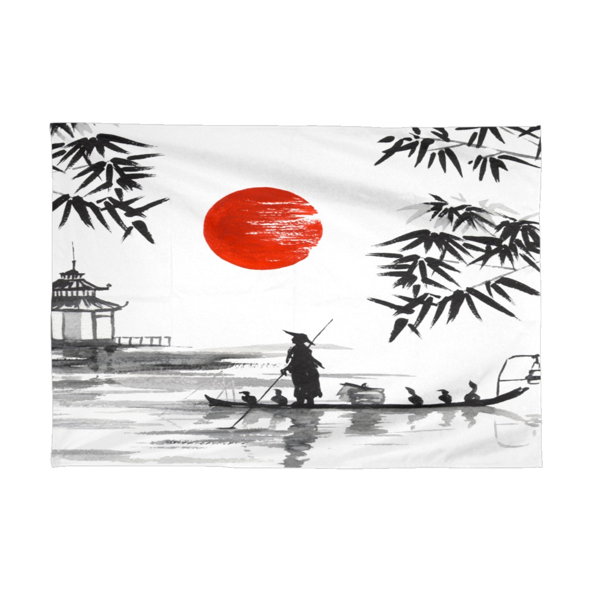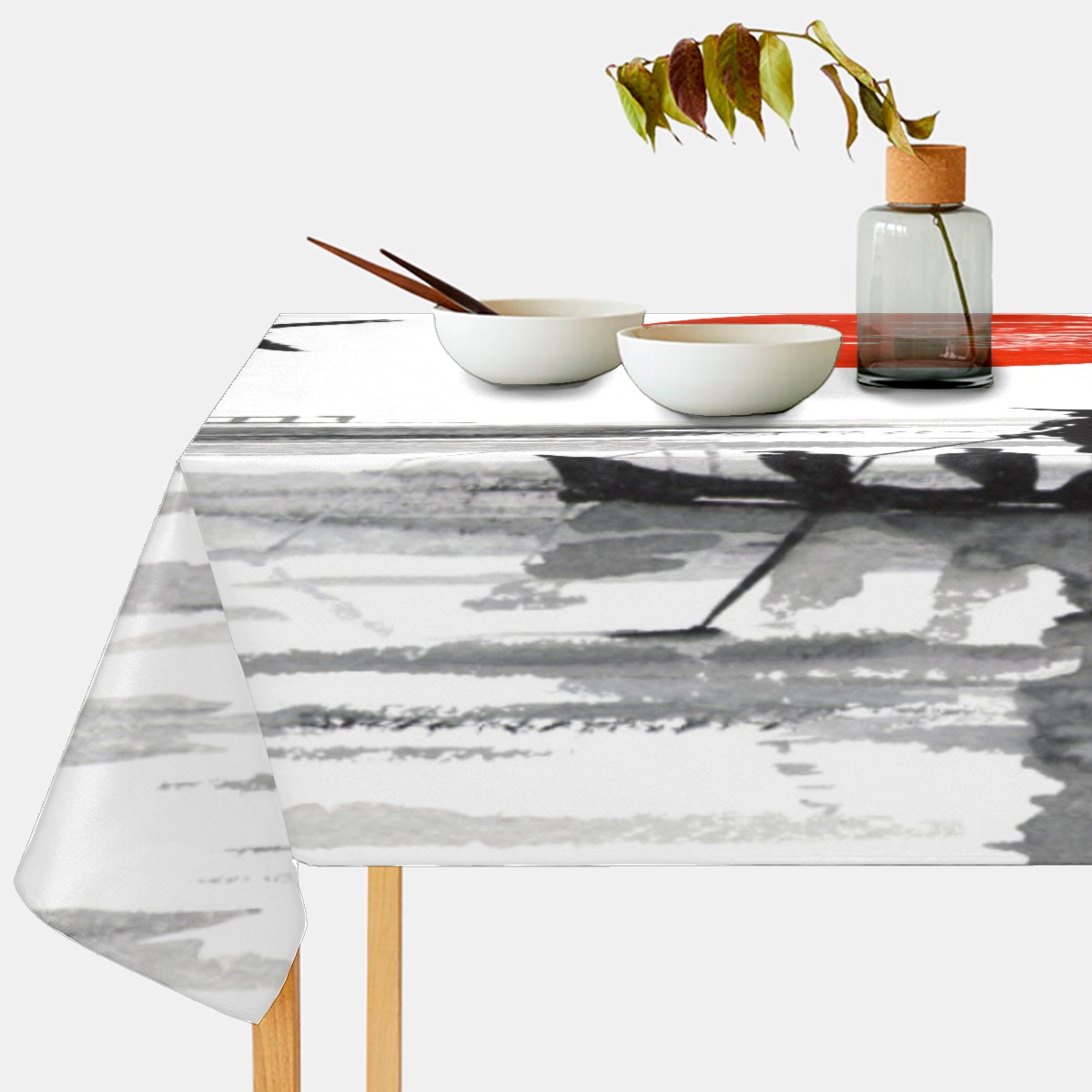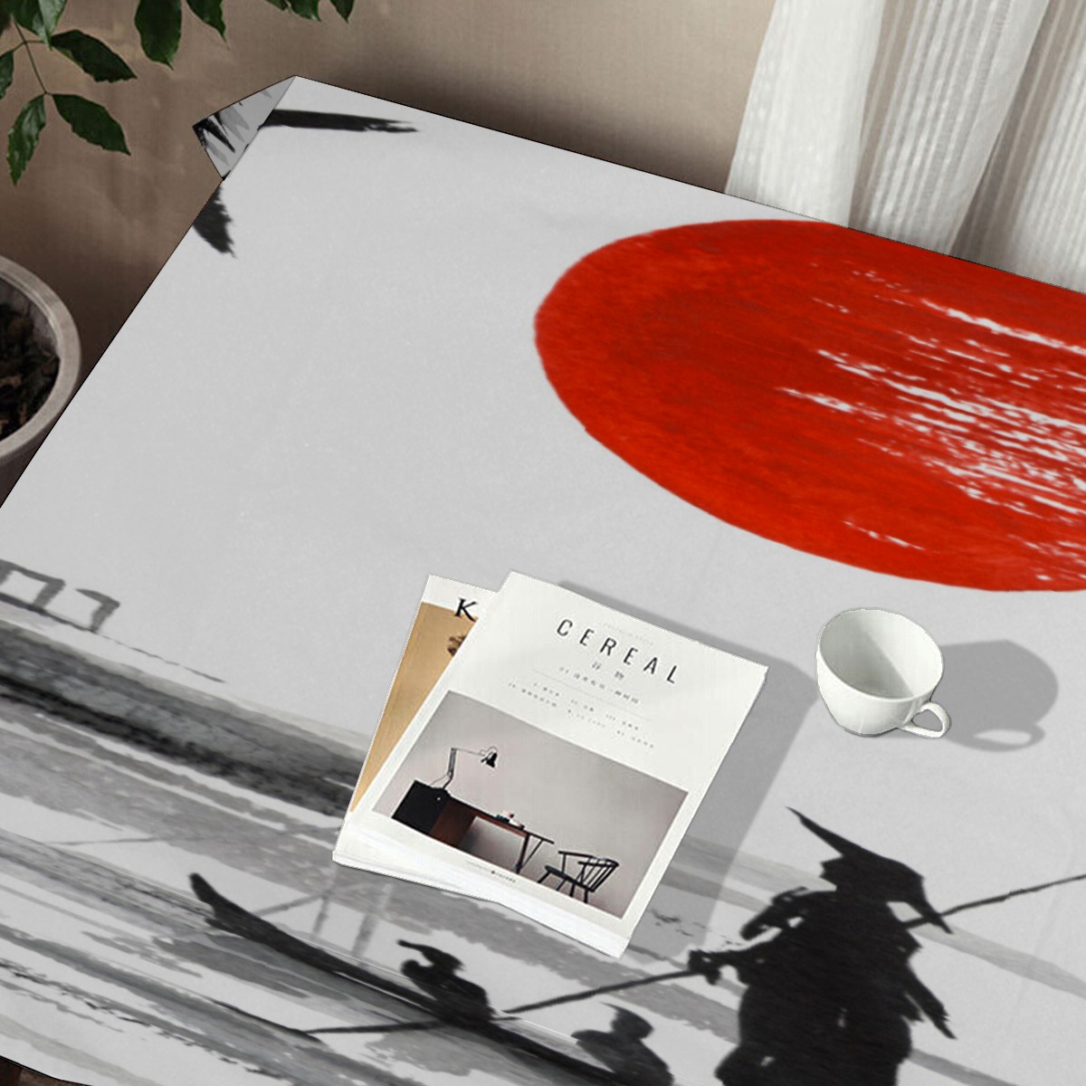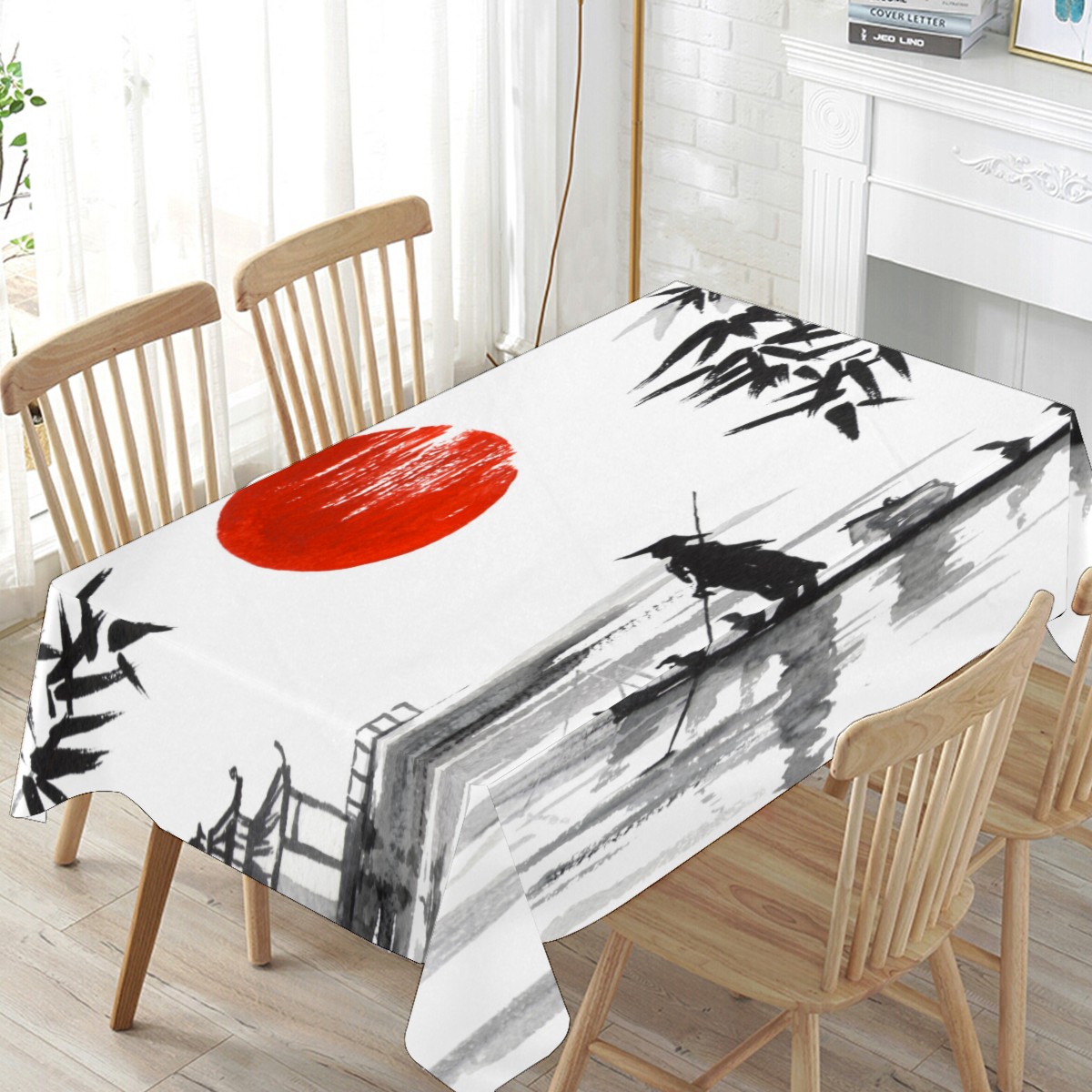 Rectangle Tablecloth Japanese Bamboo Landscape Boating Table Cloth 54x54in Table Cover for Kitchen Dining Table Party Home Decoration Washable Table Runner