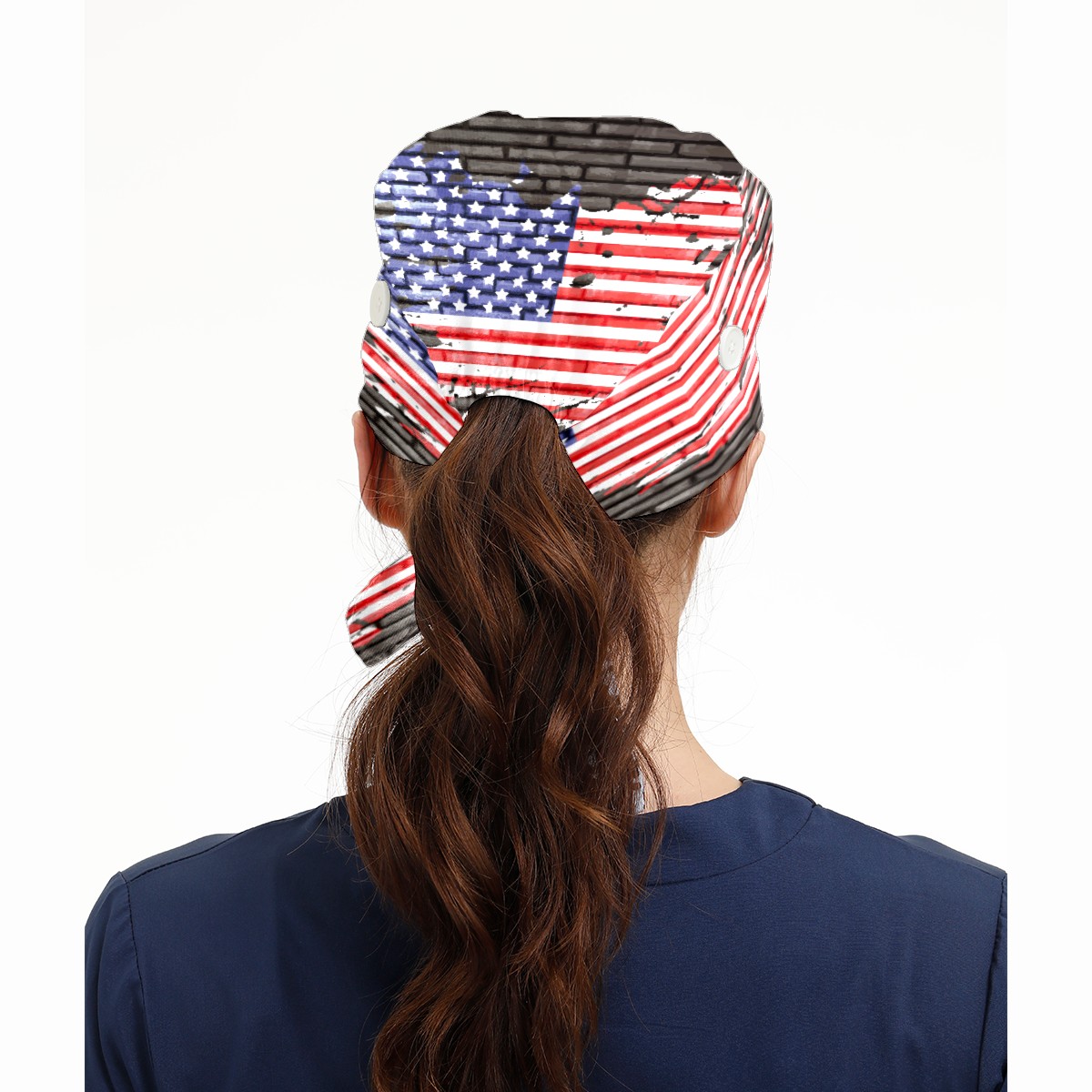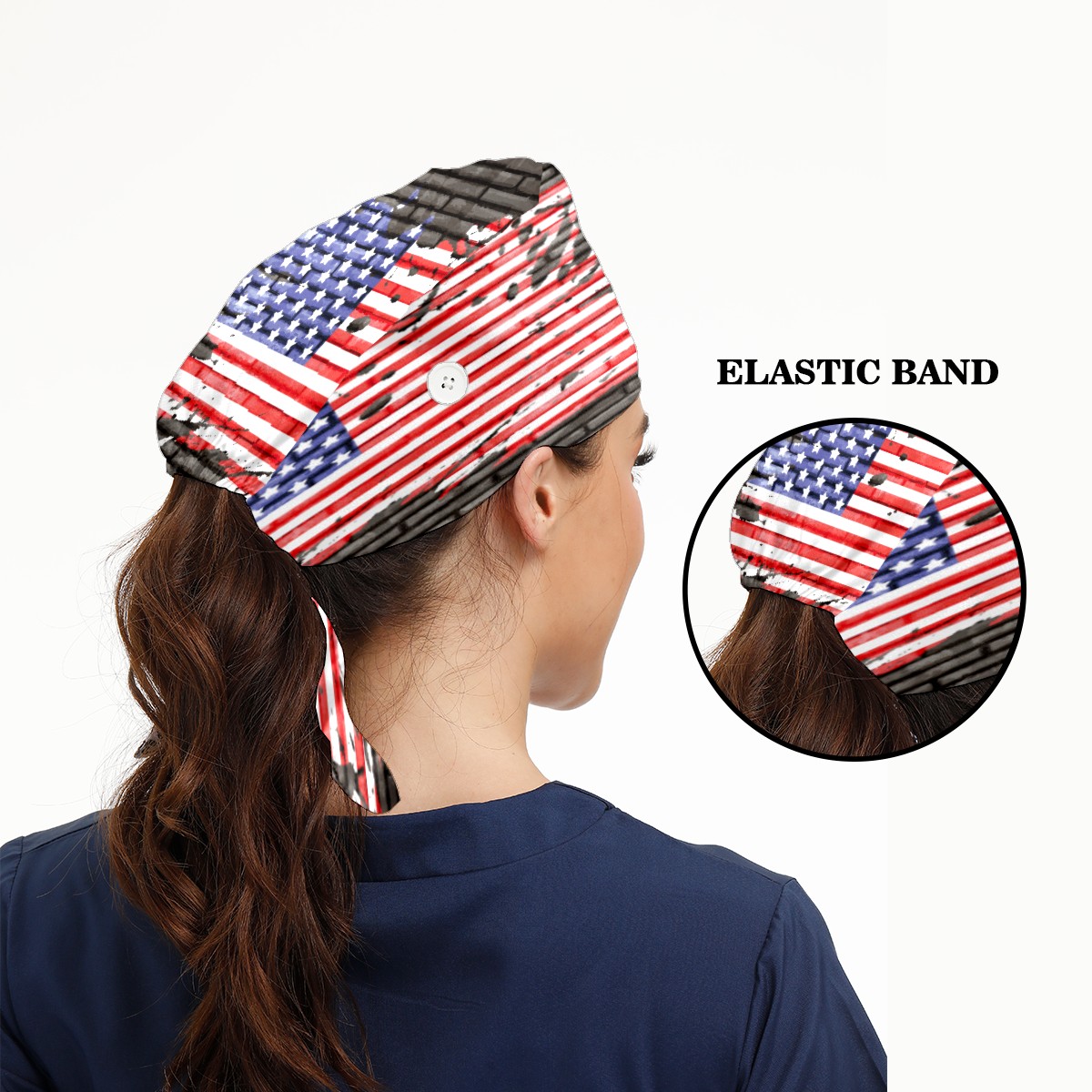 American Flag On Brick Wall Working Cap Button and Sweatband Adjustable Elastic Head Cover Hair Tie Back Work Hats for Women Men