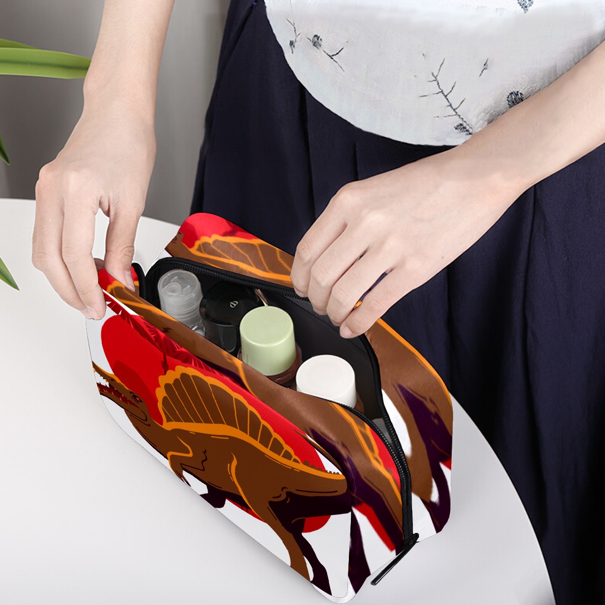 Cosmetic Bag for Women Girls Trave Makeup Bag Toiletry Case Pouch Accessories Organizer Funny Cartoon Dinosaur Palm Tree