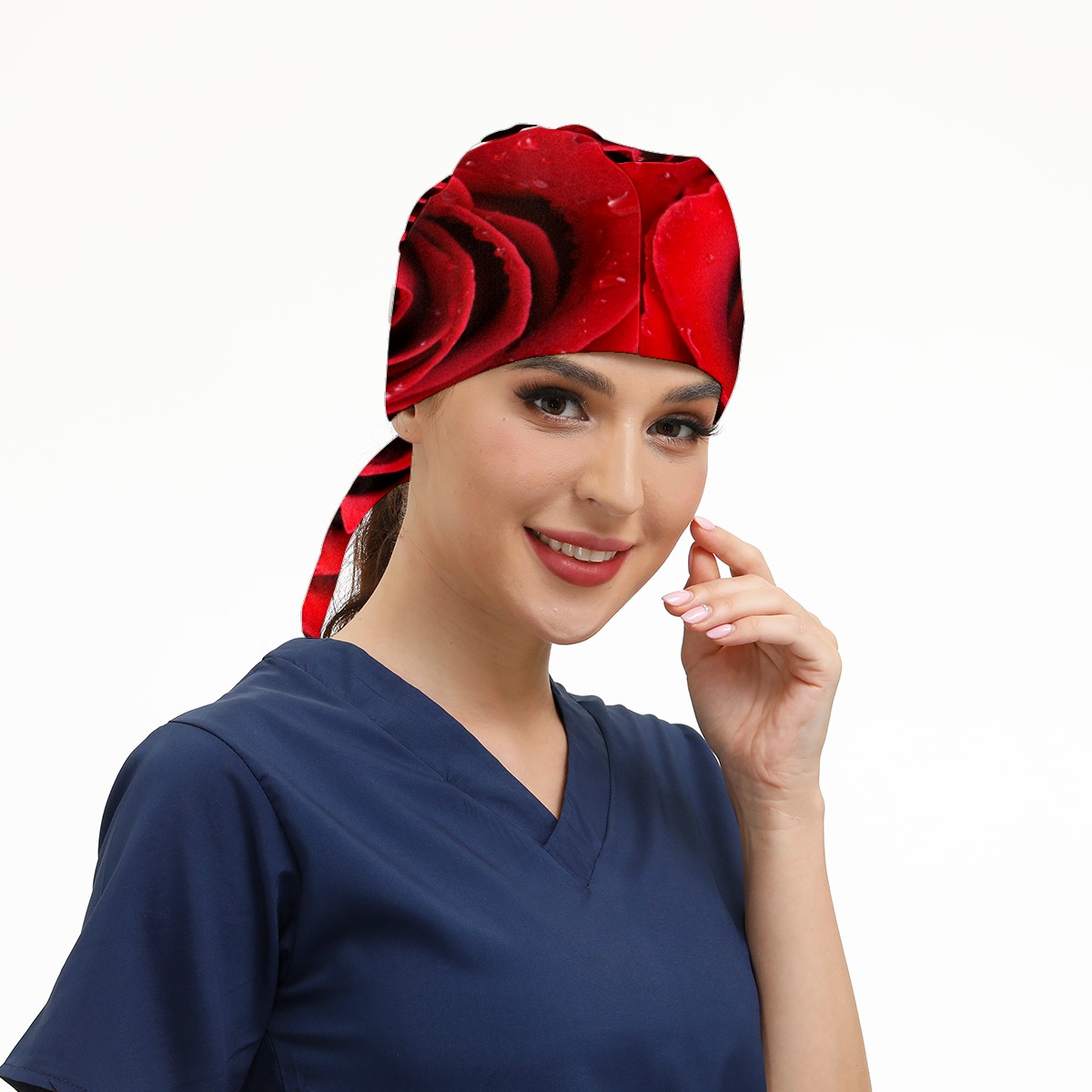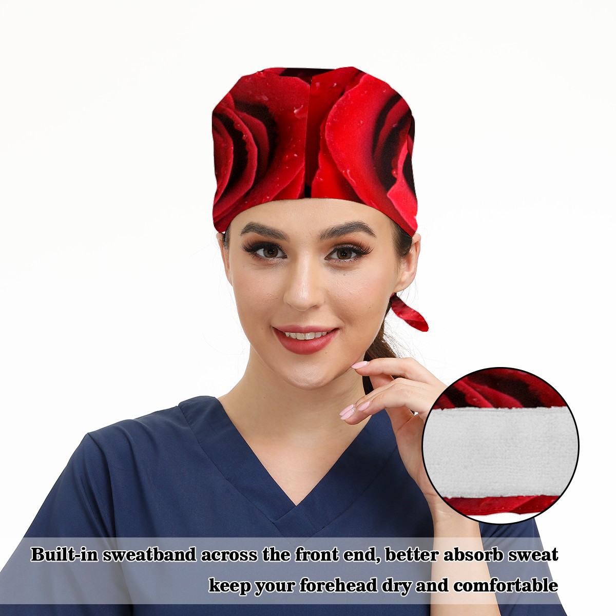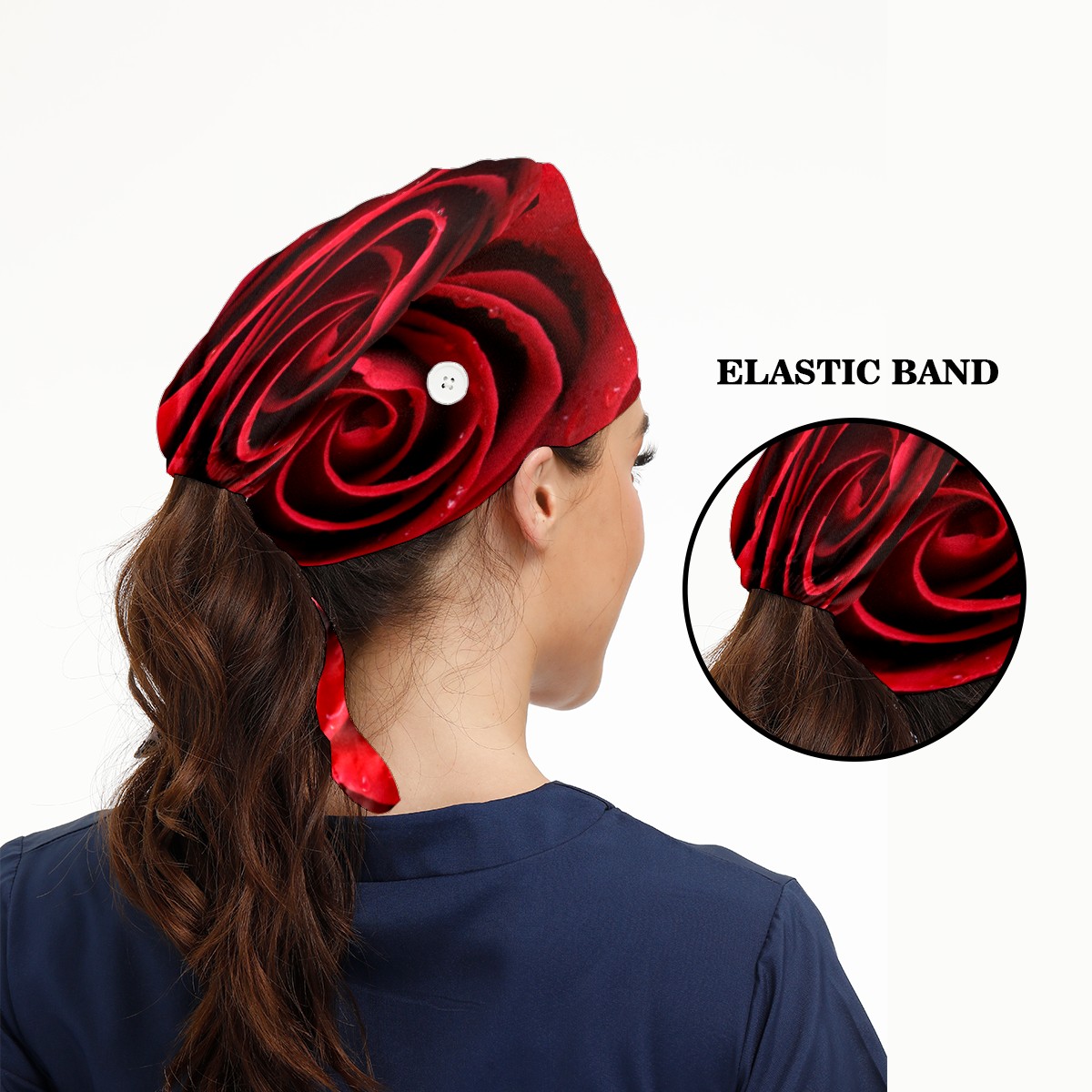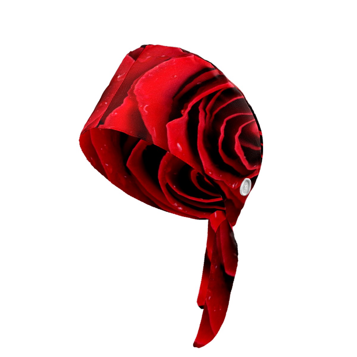Romantic Red Natural Rose Valentine's Day Working Cap Button and Sweatband Adjustable Elastic Head Cover Hair Tie Back Work Hats for Women Men