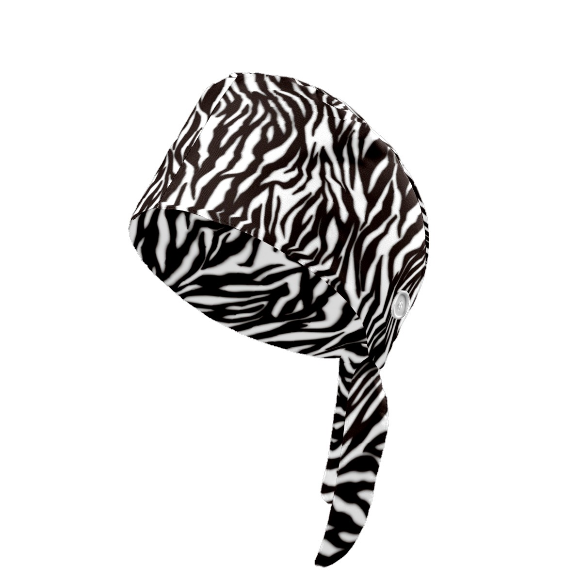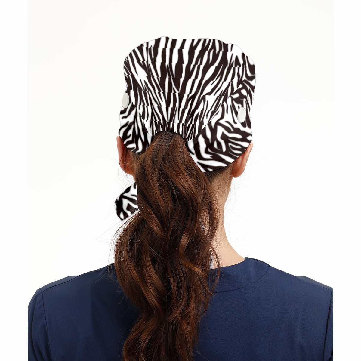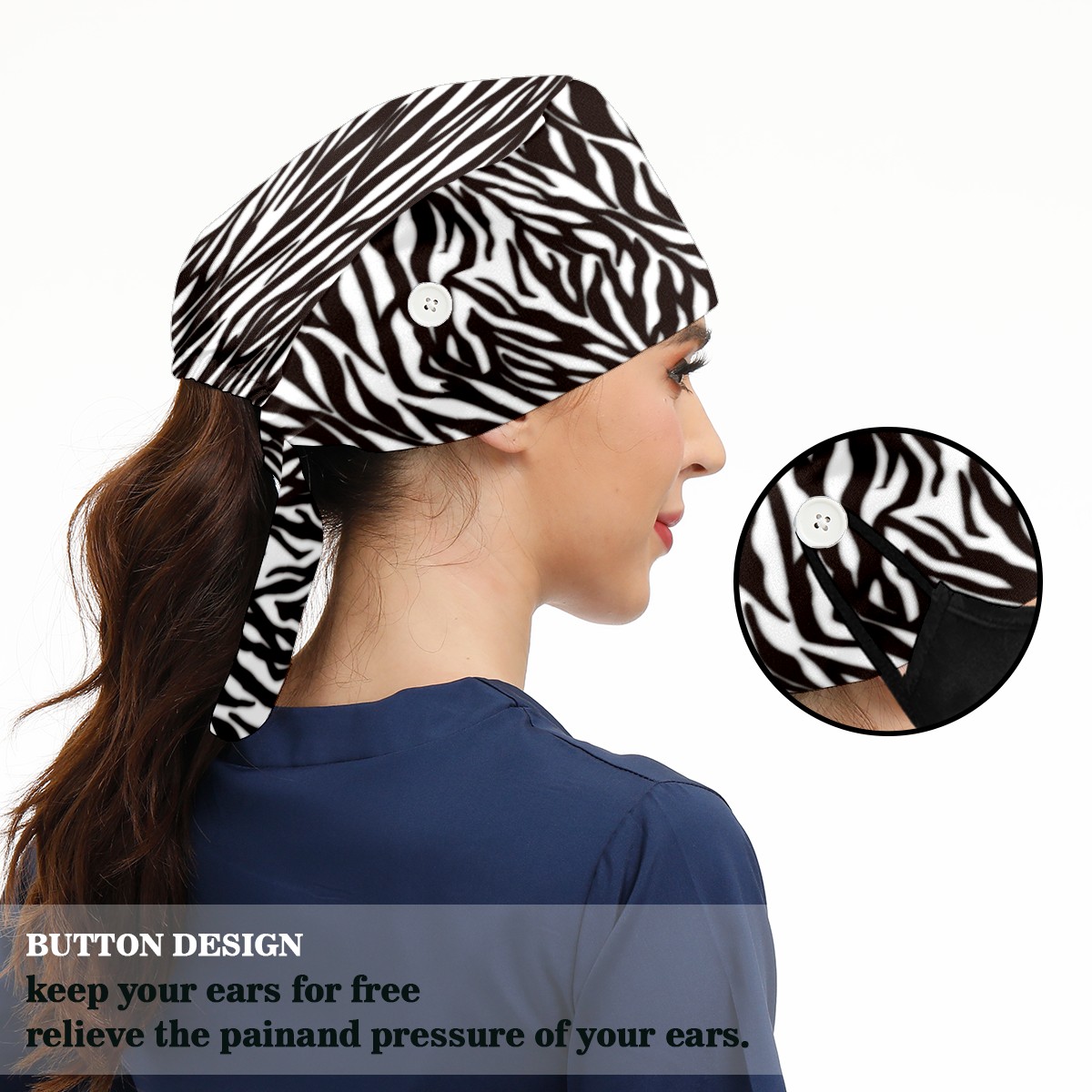 Black White Zebra Stripes Texture Working Cap Button and Sweatband Adjustable Elastic Head Cover Hair Tie Back Work Hats for Women Men