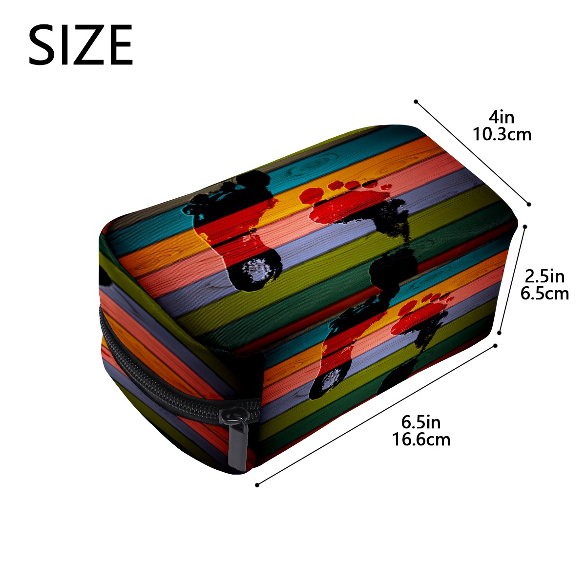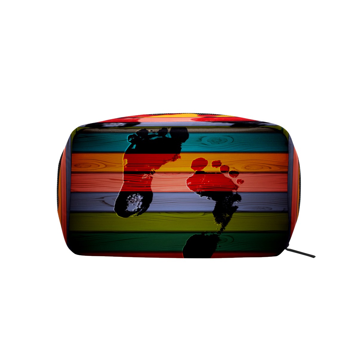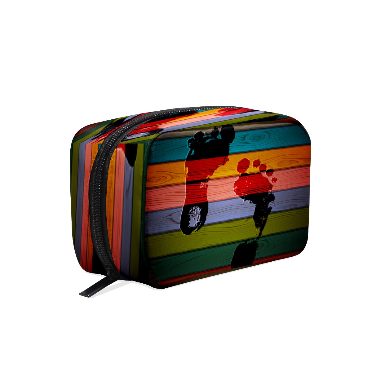 Cosmetic Bag for Women Girls Trave Makeup Bag Toiletry Case Pouch Accessories Organizer Foot Print On Colorful Wooden Retro