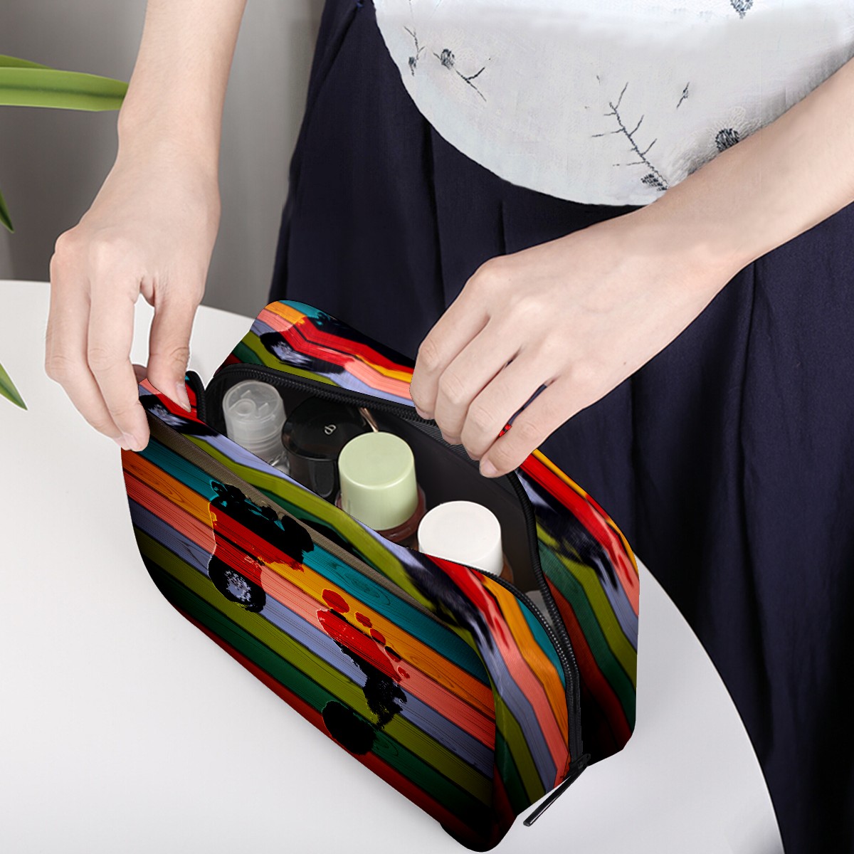 <p><br /></p><p><b>Cosmetic Bag Toiletry Travel Makeup Case Pouch Multi-function Organizer for Women</b></p><p><b>Size:</b> &nbsp;6.5 x 4 x 2.5 inches(LxWxH) / 16.6 x 10.3 x 6.5 cm</p><p><b>Material: </b>Twill Weave + Elastic Band</p><p><br /></p><p><b>Features:</b></p><p><br /></p><p>- High Quality:These makeup bags are Lightweight, Durable, Waterproof and made out of Light and Twill Weave. Size: 8" x 2.5" x 5.5" / 20.3 x 6.35 x 14cm (LxWxH)</p><p><i>- </i>Multiple compartments for different requests of storage: Have 1 main compartment and 2 lipstick pockets and 3 inner pockets, convenient to store your lipstick, brushes, eyebrow pencils, mascara, air cushion and powder</p><p><i>- </i>Multifuncation: Each makeup bag have One Main Bag and five Compartments, can hold your Lipstick, tweezers, eyebow pencils, perfume£¬brush or other grooming items in place,good for sorting cosmetics and it's easy to find the items you need.</p><p>- New Design:Simple, compact and lightweight design is easily held in handbag.With High-quality Zipper,nice stitching and sewing ensure smooth opening and closing</p><p>-The travel makeup case, also can be a travel toiletry bag, electronic accessories bag, small camera bag, suitable for taking exactly what you need, anywhere, at any time</p><p><b>If you have any question, please feel free to contact us!</b></p><p><br /></p>