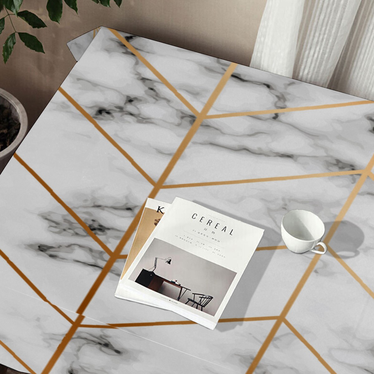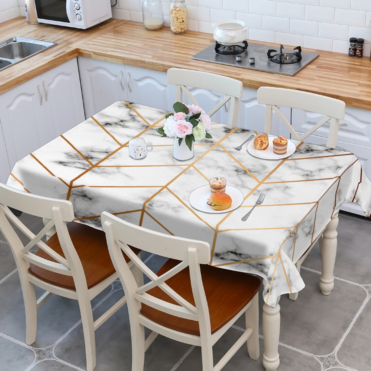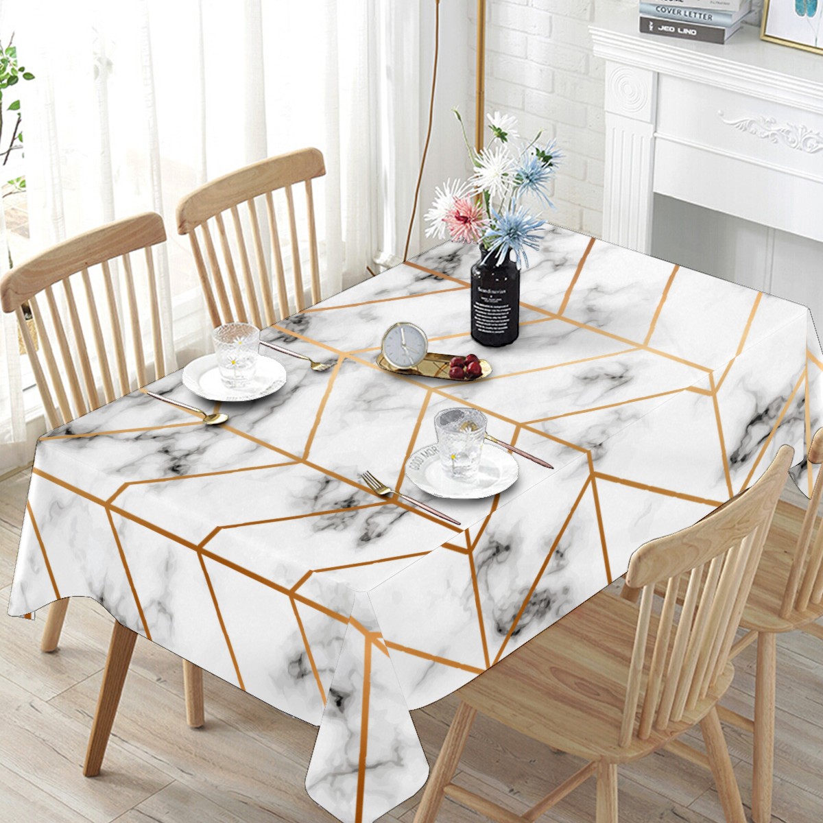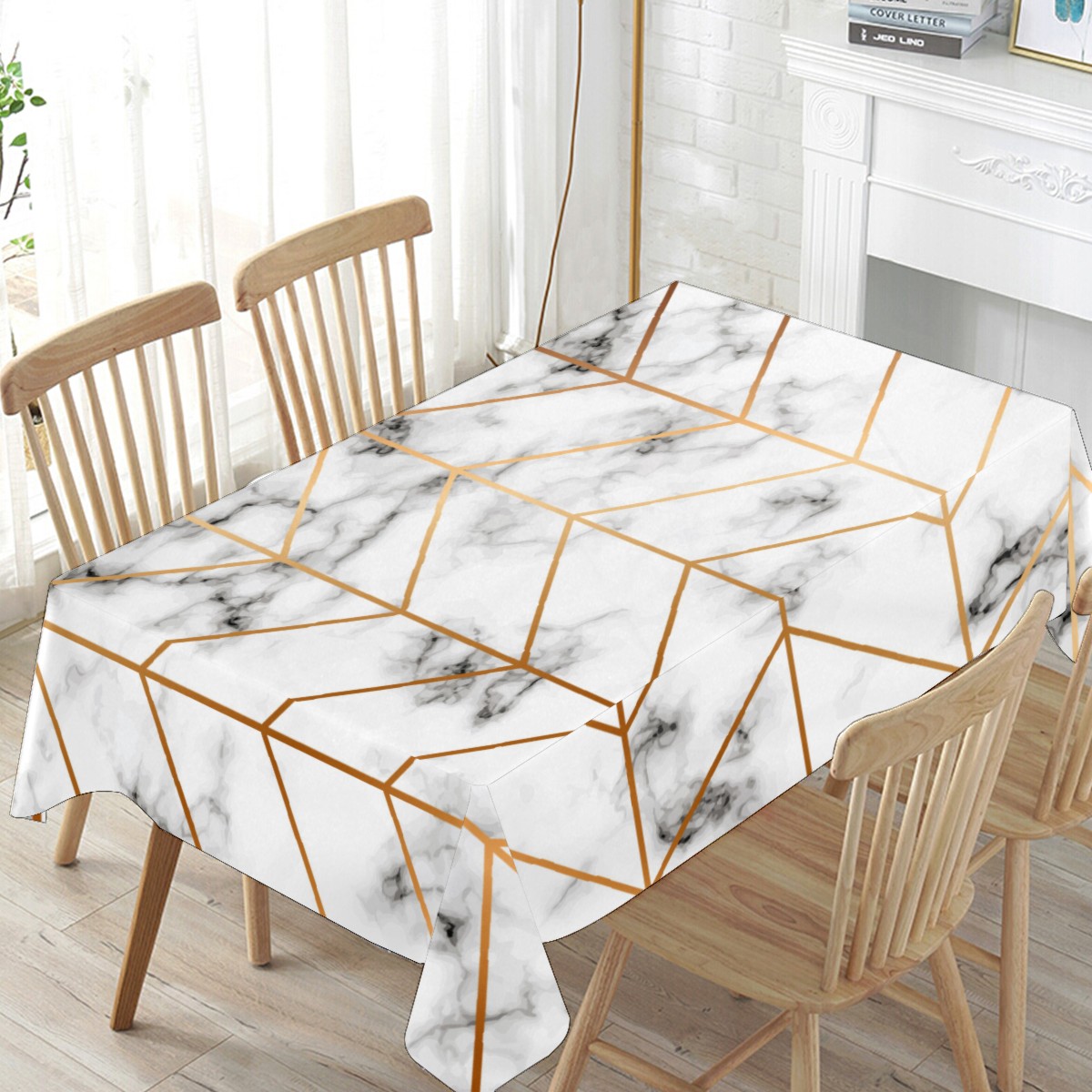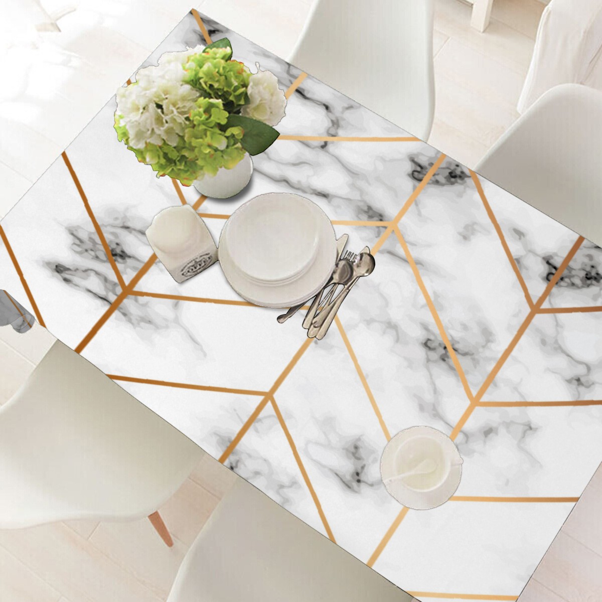 Rectangle Tablecloth Gold Marble Triangle Table Cloth 54x54in Table Cover for Kitchen Dining Table Party Home Decoration Washable Table Runner