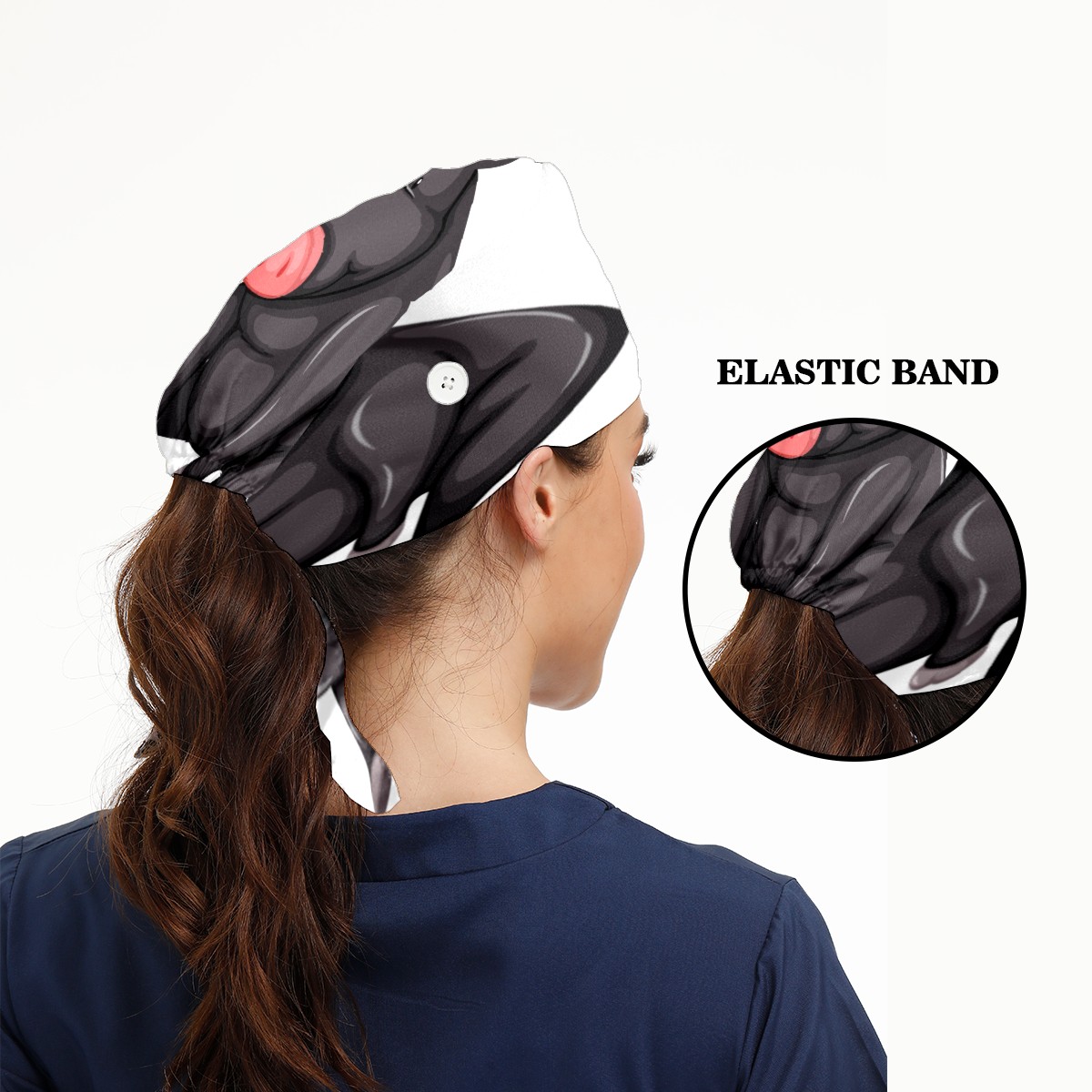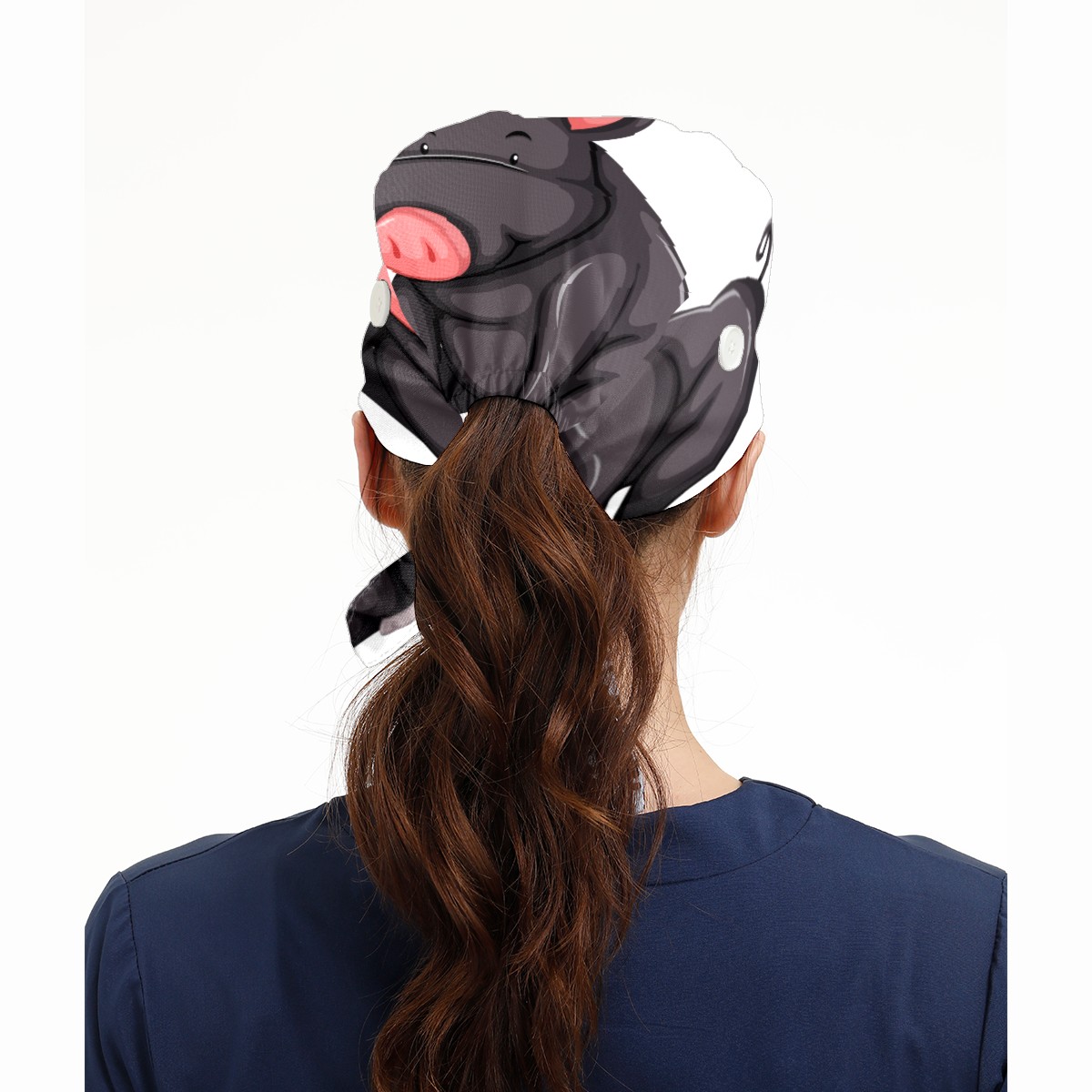 Black Pig Working Cap Button and Sweatband Adjustable Elastic Head Cover Hair Tie Back Work Hats for Women Men