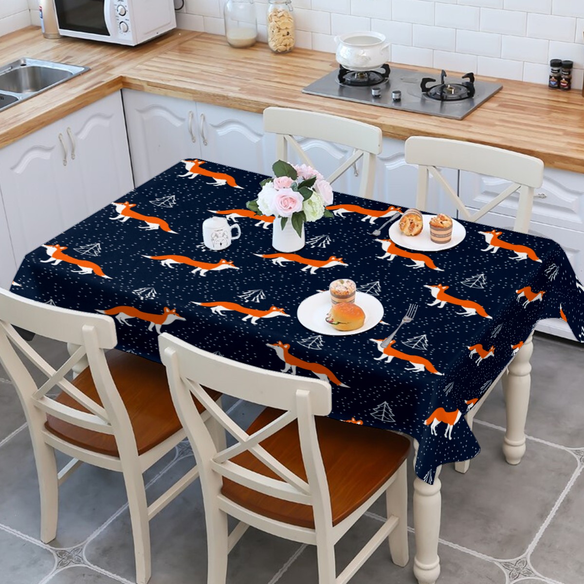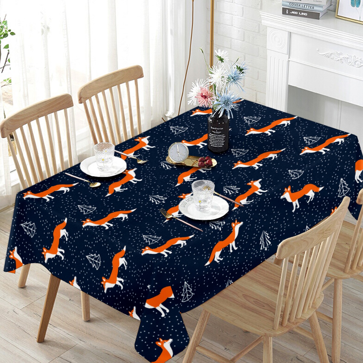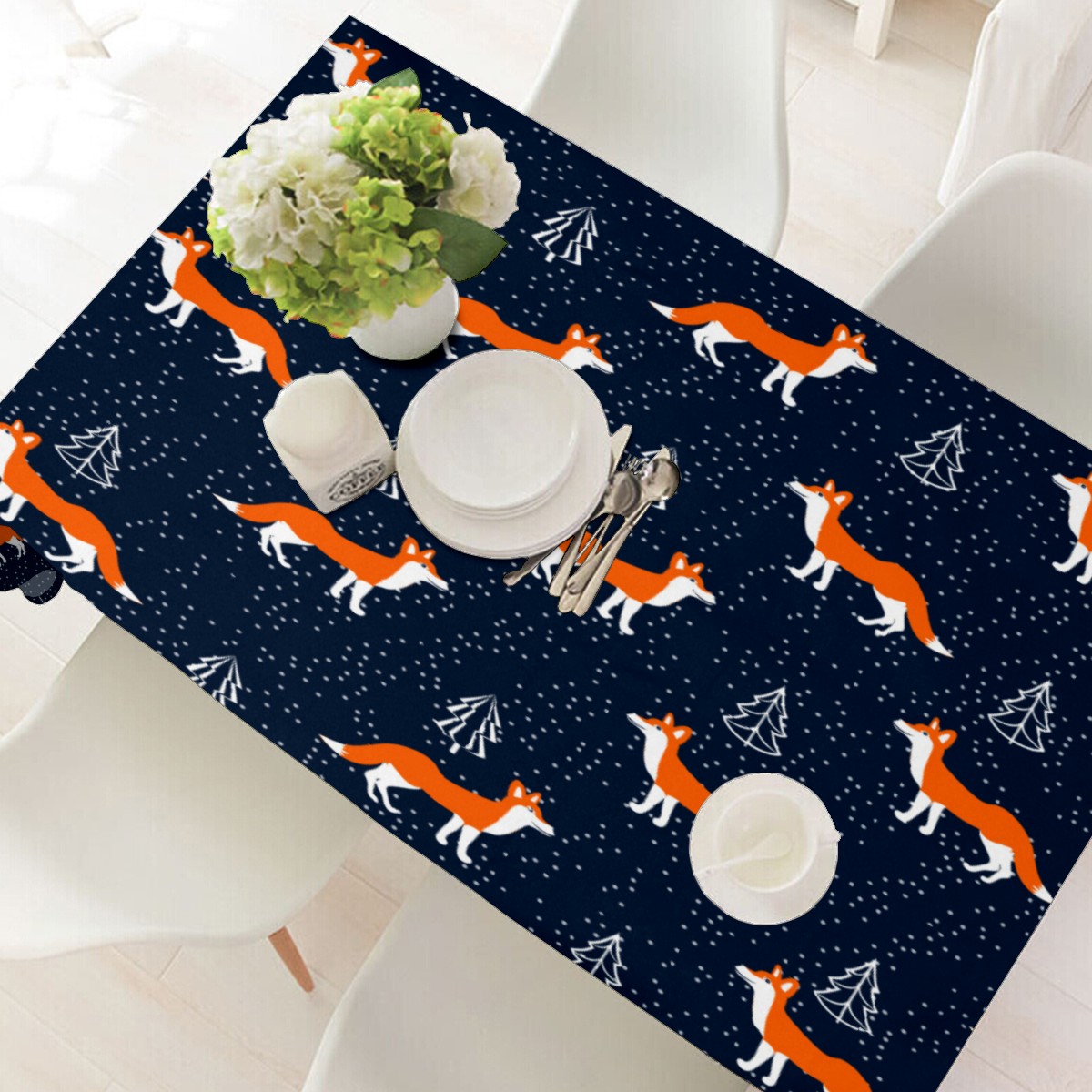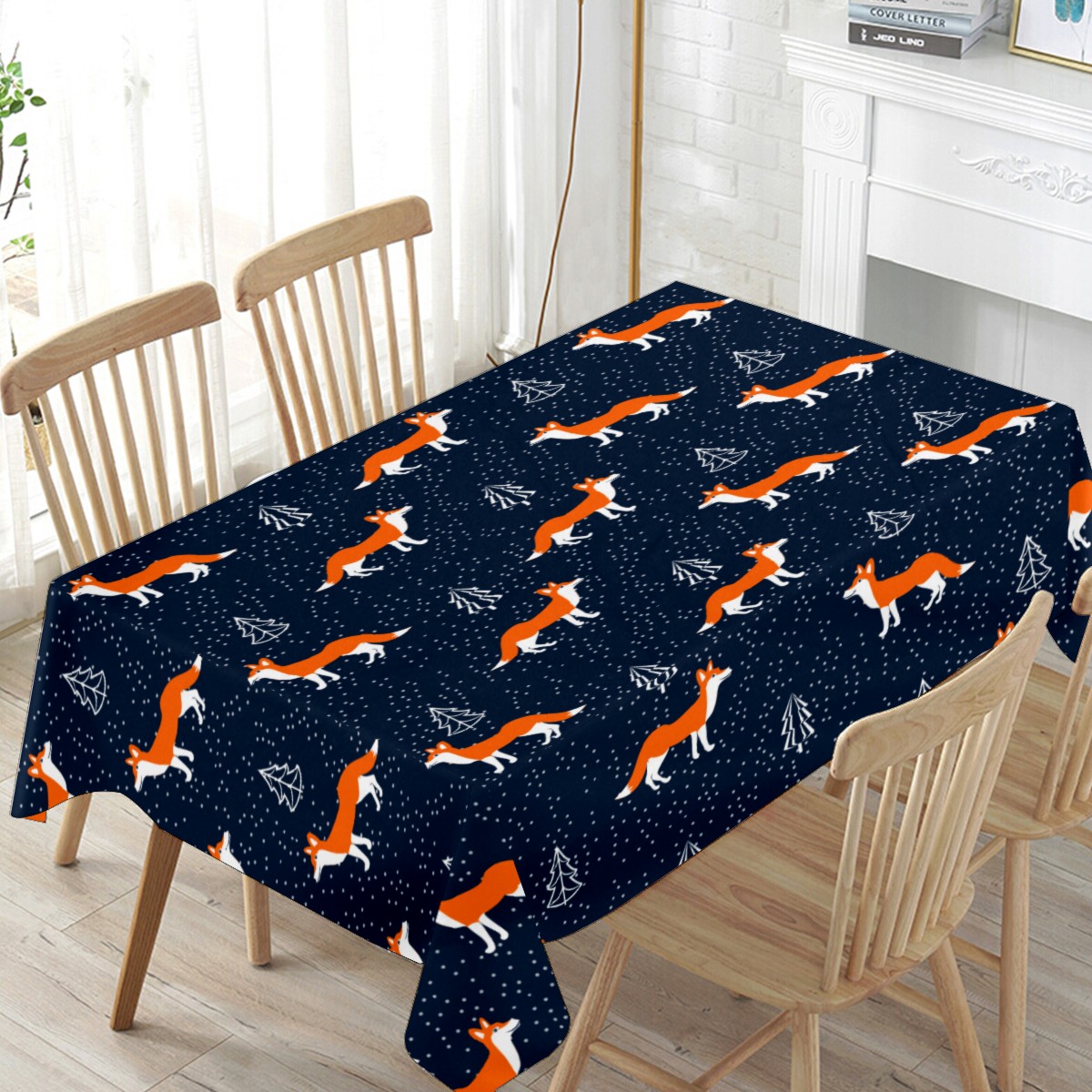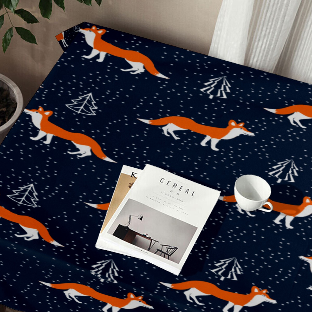 Rectangle Tablecloth Fox Animal Winter Tree Table Cloth 54x54in Table Cover for Kitchen Dining Table Party Home Decoration Washable Table Runner