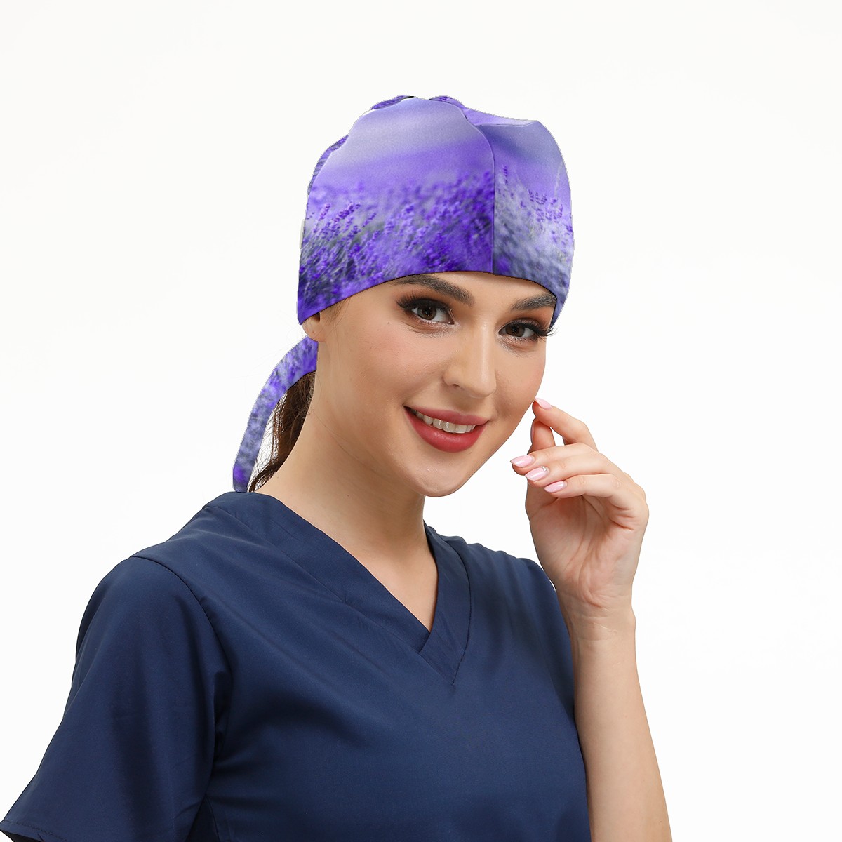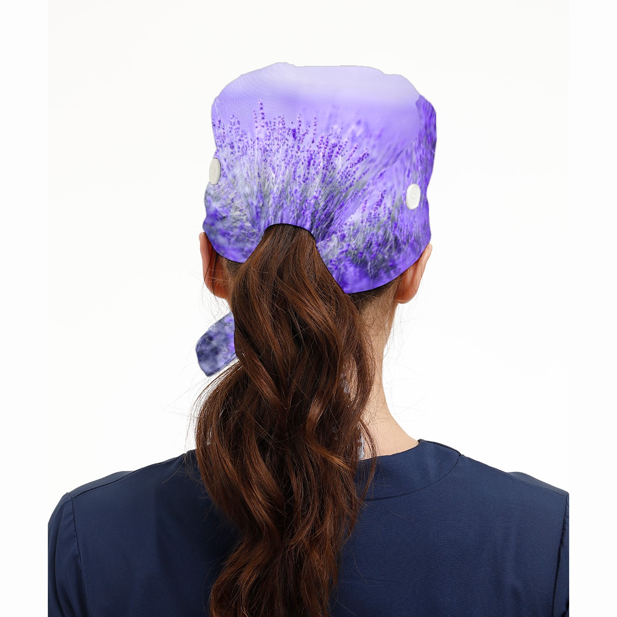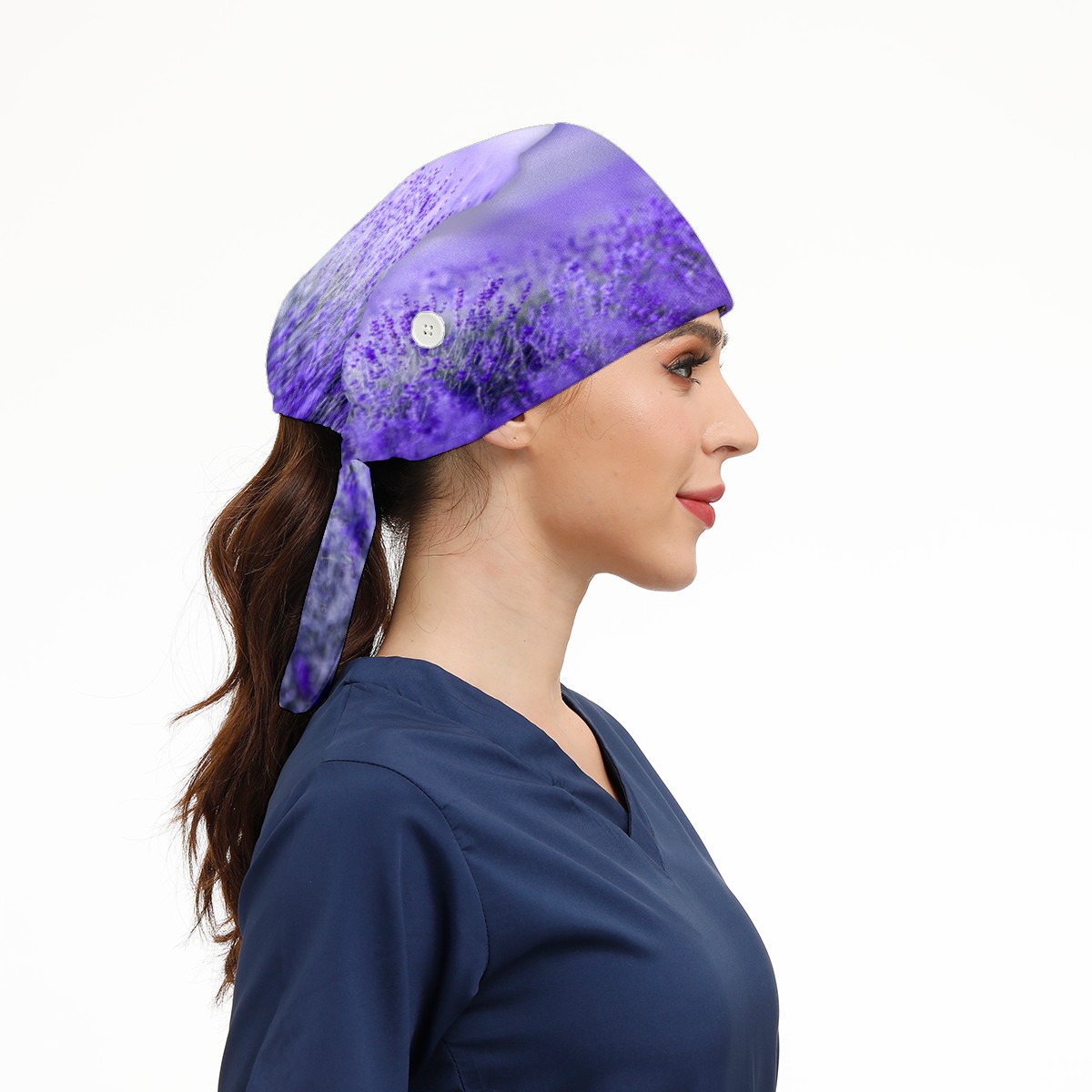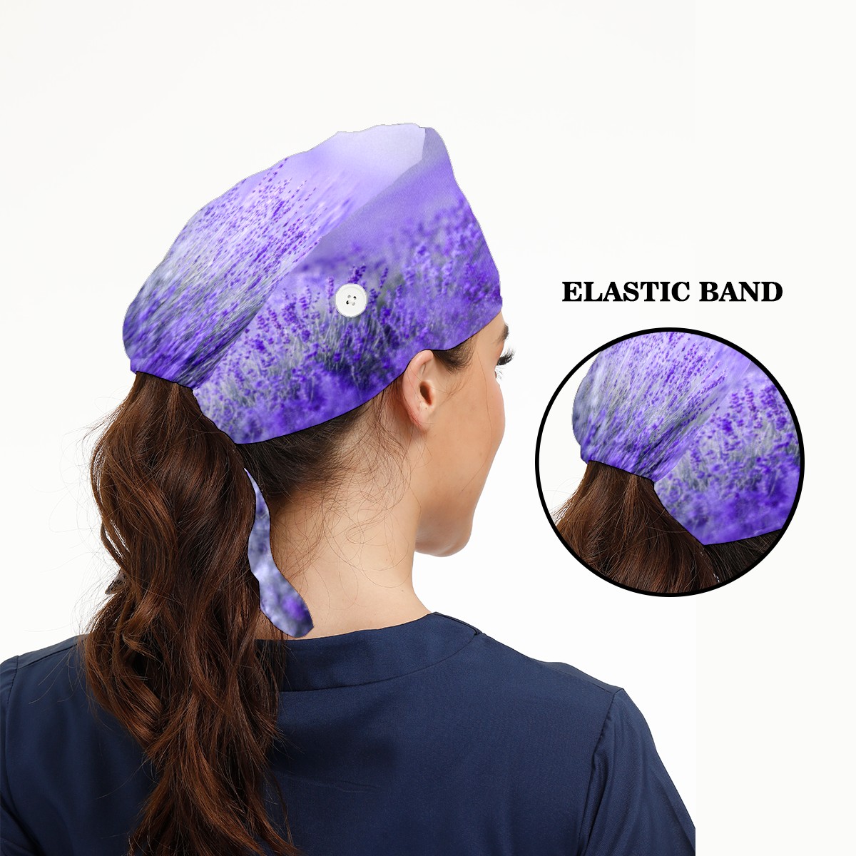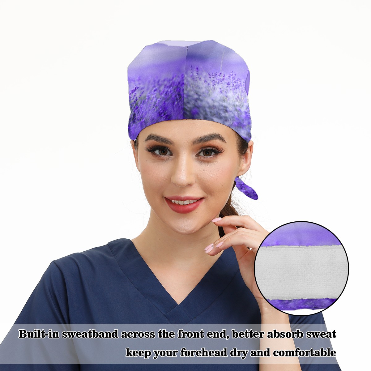 Purple Lavender Flower Floral Field Working Cap Button and Sweatband Adjustable Elastic Head Cover Hair Tie Back Work Hats for Women Men