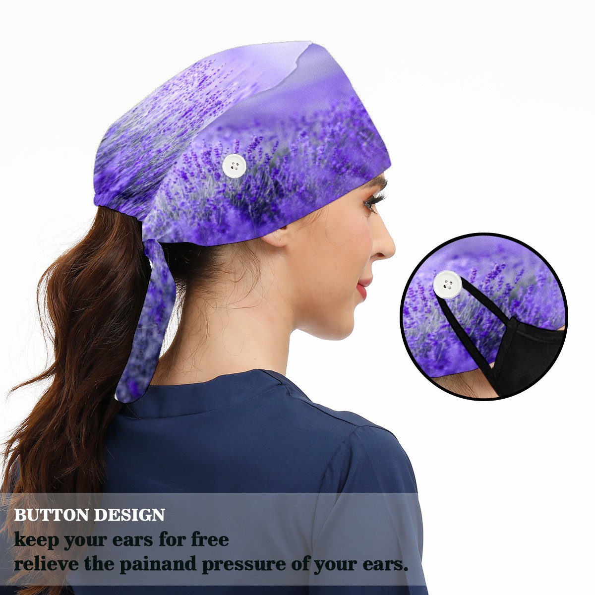 <p>Working cap with Sweatband and Button for Women Men</p><p>Material&nbsp;: 50% cotton+50% polyester</p><p>Size:&nbsp;One size fits most,&nbsp;suitable for both men and women.</p><p>Working Cap with Buttons Design:special&nbsp;design with buttons to protect ears for those who are wearing ma-sk. These new styles hats will allow you to put the straps around the buttons instead of your ears, make you feel more comfortable.</p><p>Sweat-absorbent towel cloth inside: Built-in&nbsp;100% cotton sweatband, keep the forehead clean after long time working.</p><p>Widely occasion: Widely used in beauty spa, house cleaning, cooking, sleeping, or for cos-play&nbsp;party.</p><p>Lovely pattern: lovely&nbsp;3D printed&nbsp;pattern,&nbsp;it's perfect for gift to you family&nbsp;and friends.</p>