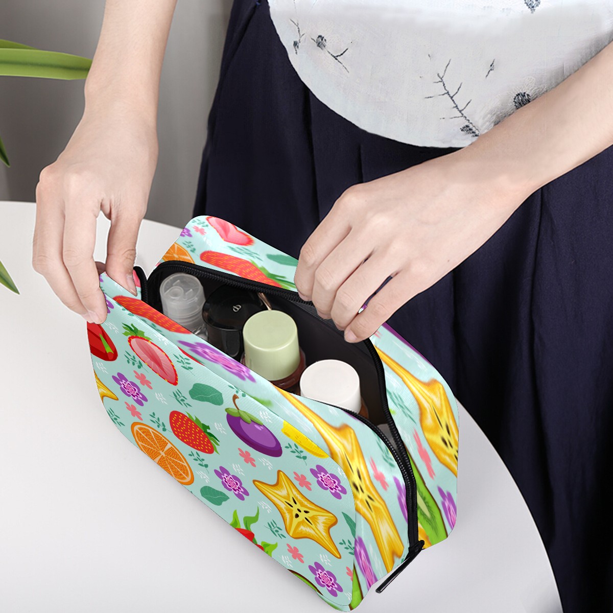 Cosmetic Bag for Women Girls Trave Makeup Bag Toiletry Case Pouch Accessories Organizer Colorful Fruit Strawberry Kivi Floral Pattern