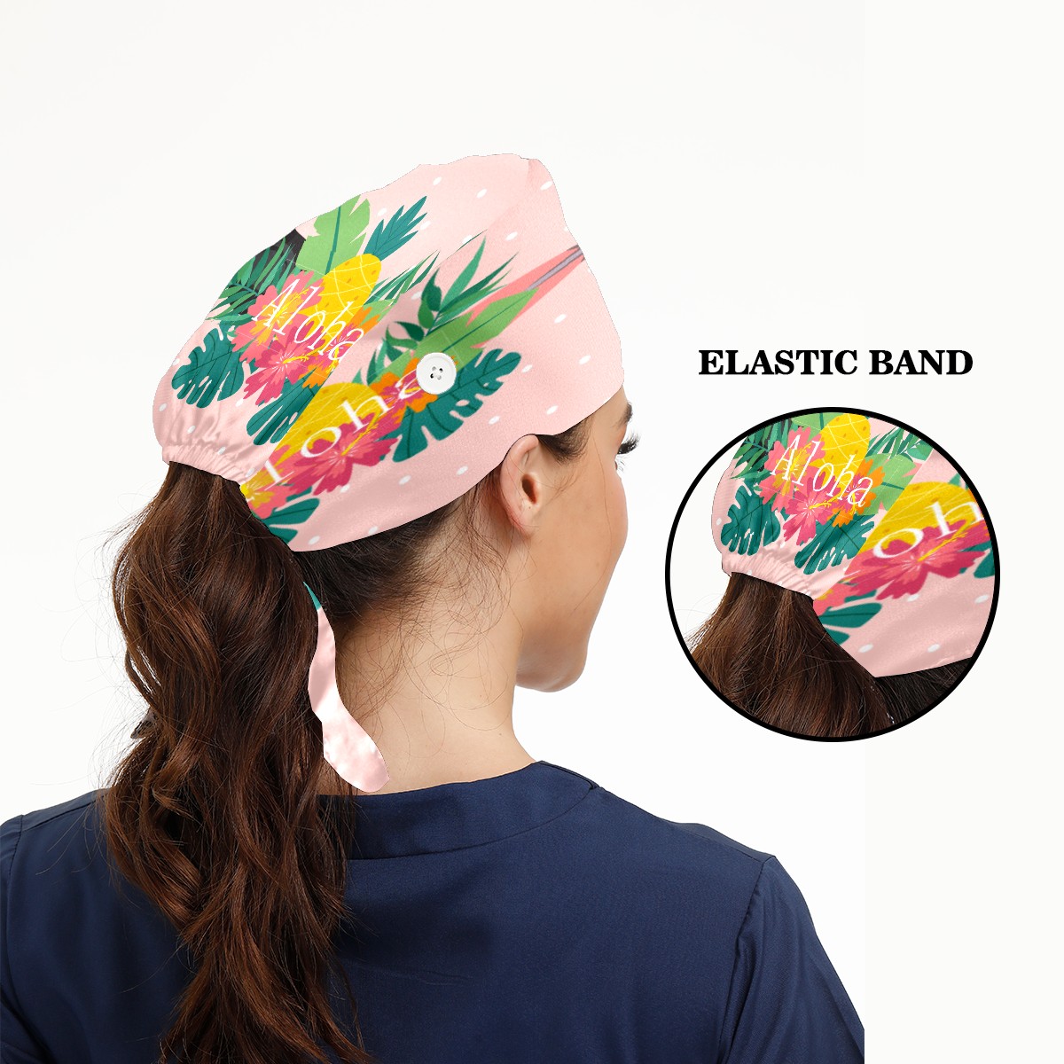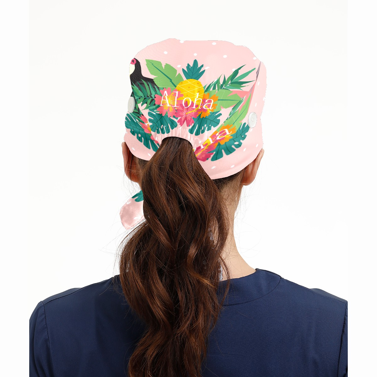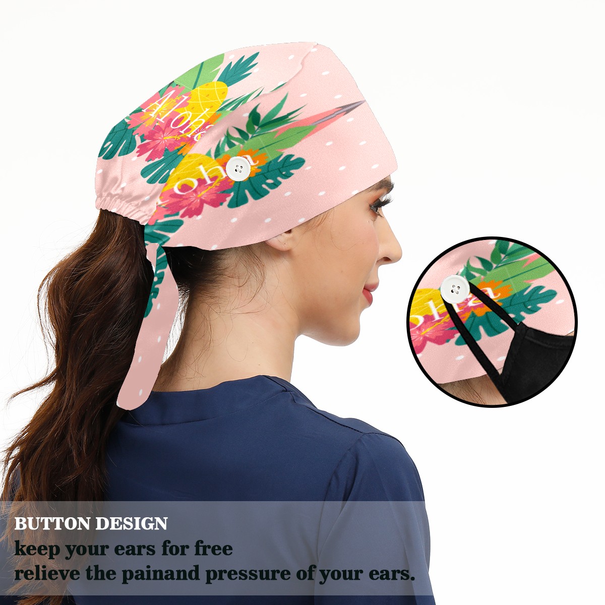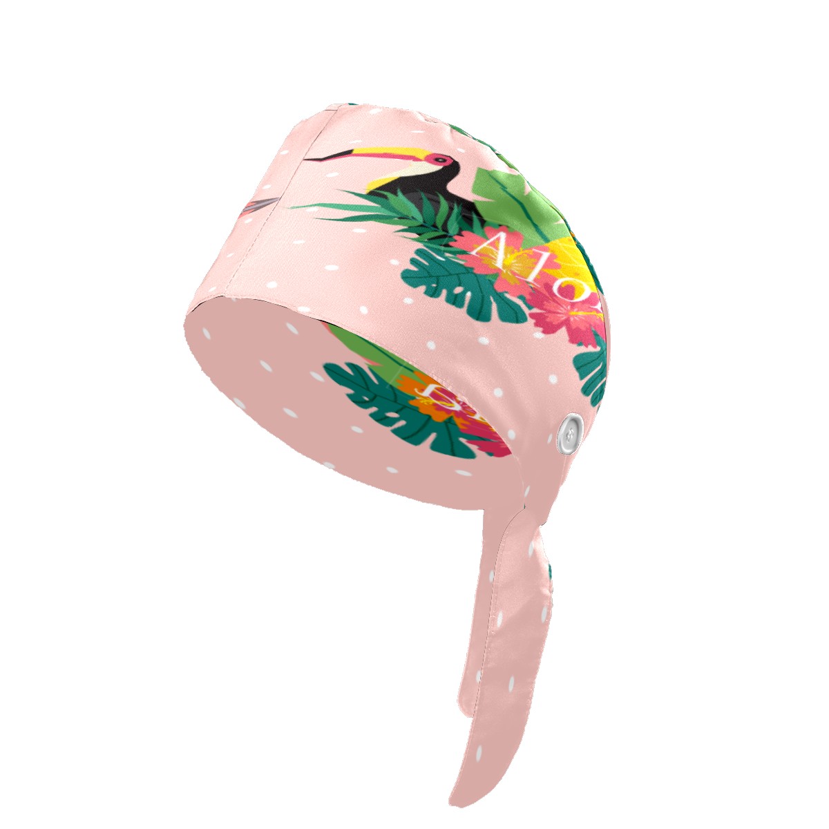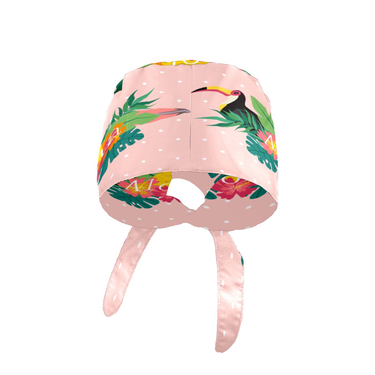Aloha Summer Toucan Pineapple Palm Working Cap Button and Sweatband Adjustable Elastic Head Cover Hair Tie Back Work Hats for Women Men