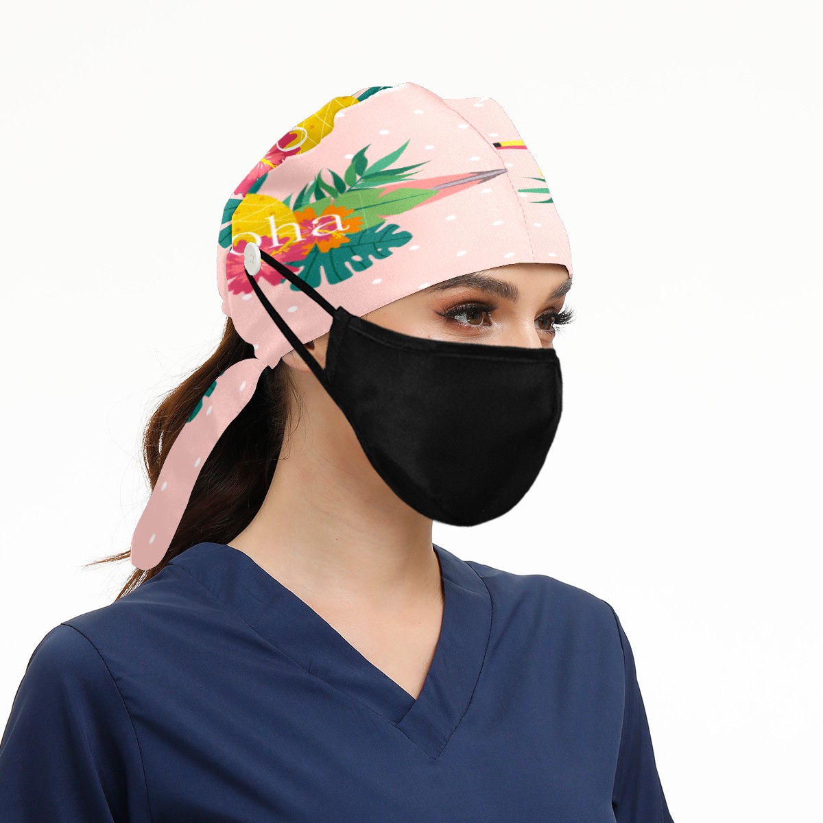 <p>Working cap with Sweatband and Button for Women Men</p><p>Material&nbsp;: 50% cotton+50% polyester</p><p>Size:&nbsp;One size fits most,&nbsp;suitable for both men and women.</p><p>Working Cap with Buttons Design:special&nbsp;design with buttons to protect ears for those who are wearing ma-sk. These new styles hats will allow you to put the straps around the buttons instead of your ears, make you feel more comfortable.</p><p>Sweat-absorbent towel cloth inside: Built-in&nbsp;100% cotton sweatband, keep the forehead clean after long time working.</p><p>Widely occasion: Widely used in beauty spa, house cleaning, cooking, sleeping, or for cos-play&nbsp;party.</p><p>Lovely pattern: lovely&nbsp;3D printed&nbsp;pattern,&nbsp;it's perfect for gift to you family&nbsp;and friends.</p>