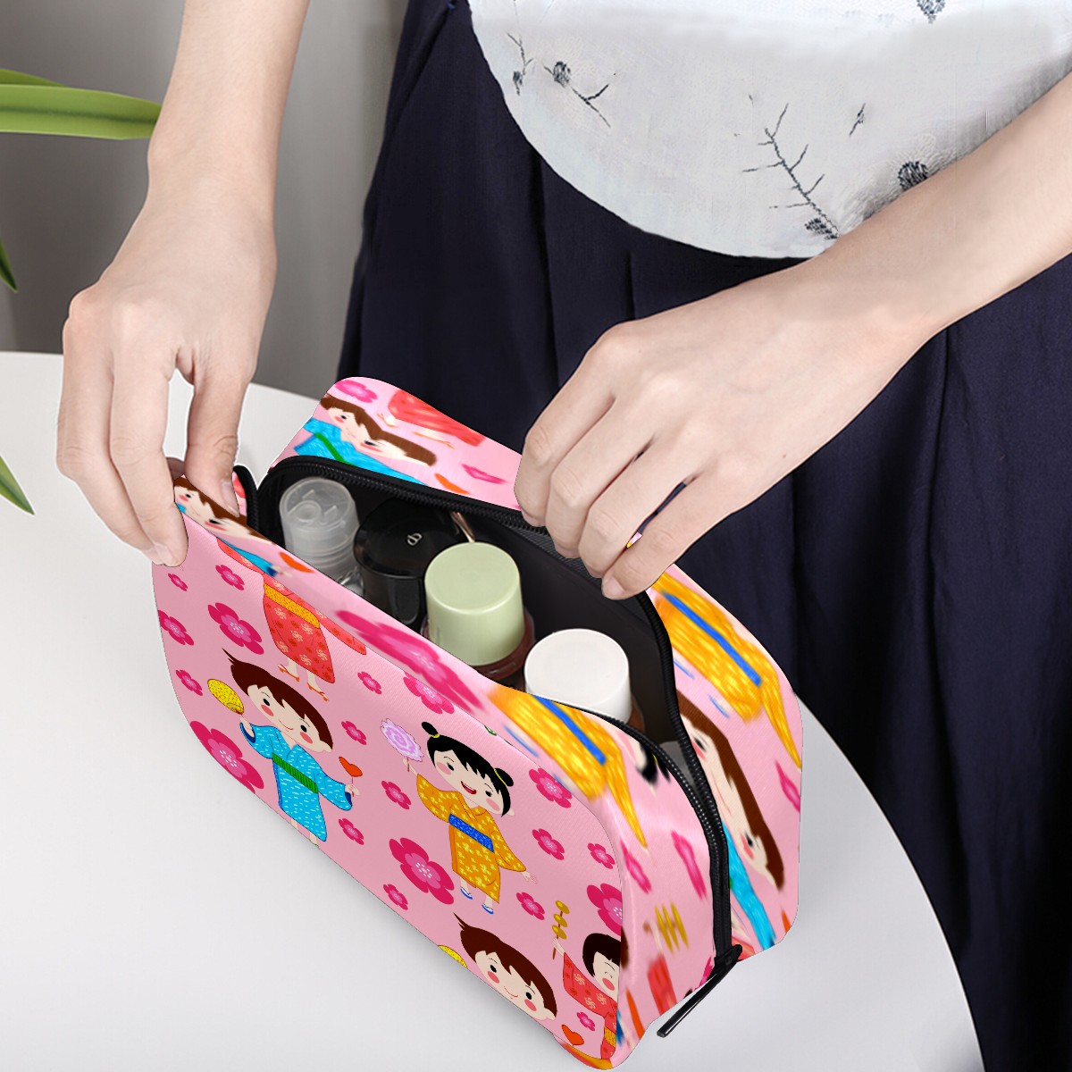 Cosmetic Bag for Women Girls Trave Makeup Bag Toiletry Case Pouch Accessories Organizer Cartoon Japanese Pink Dolls Floral Pattern