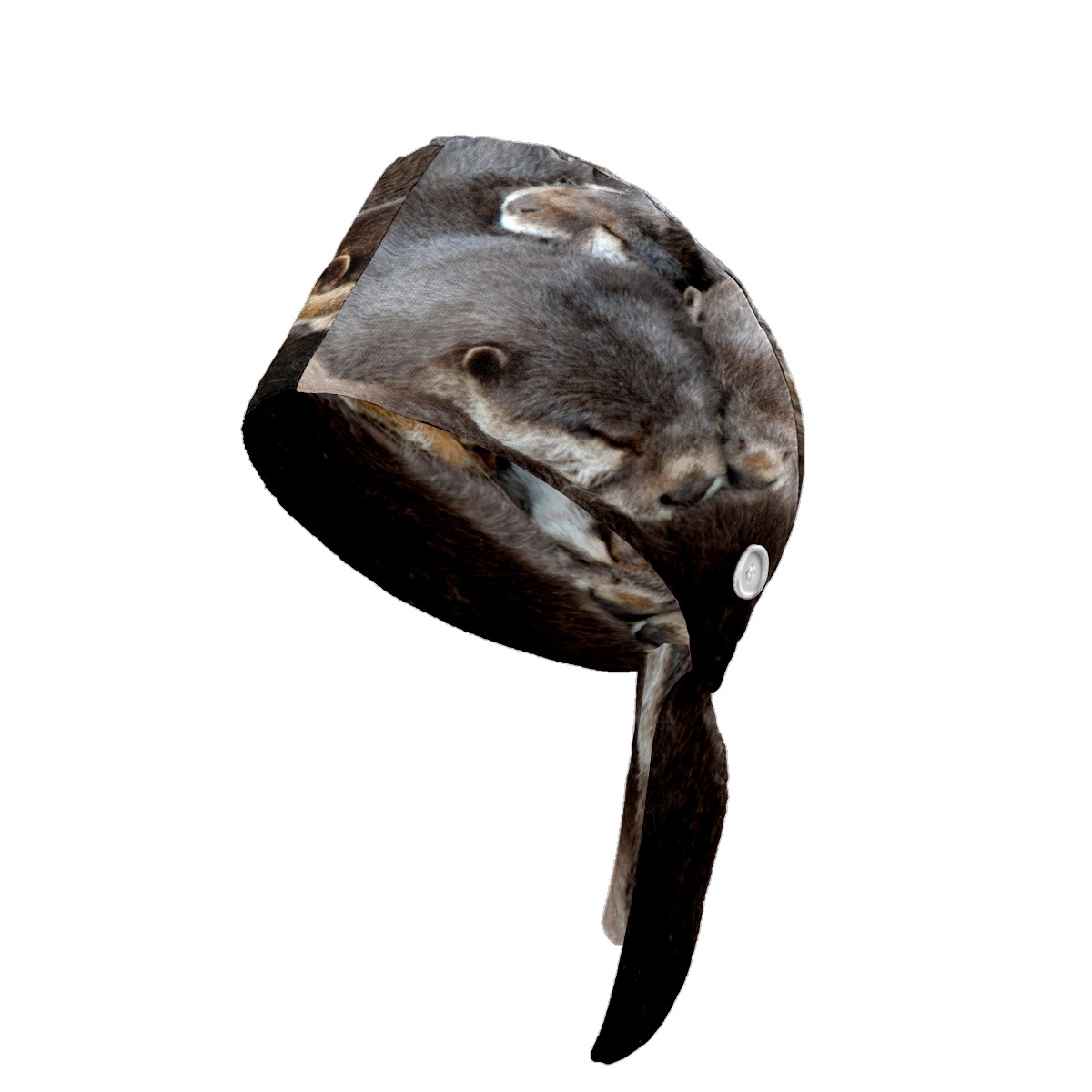 Cute Sleeping Otters Babies Working Cap Button and Sweatband Adjustable Elastic Head Cover Hair Tie Back Work Hats for Women Men